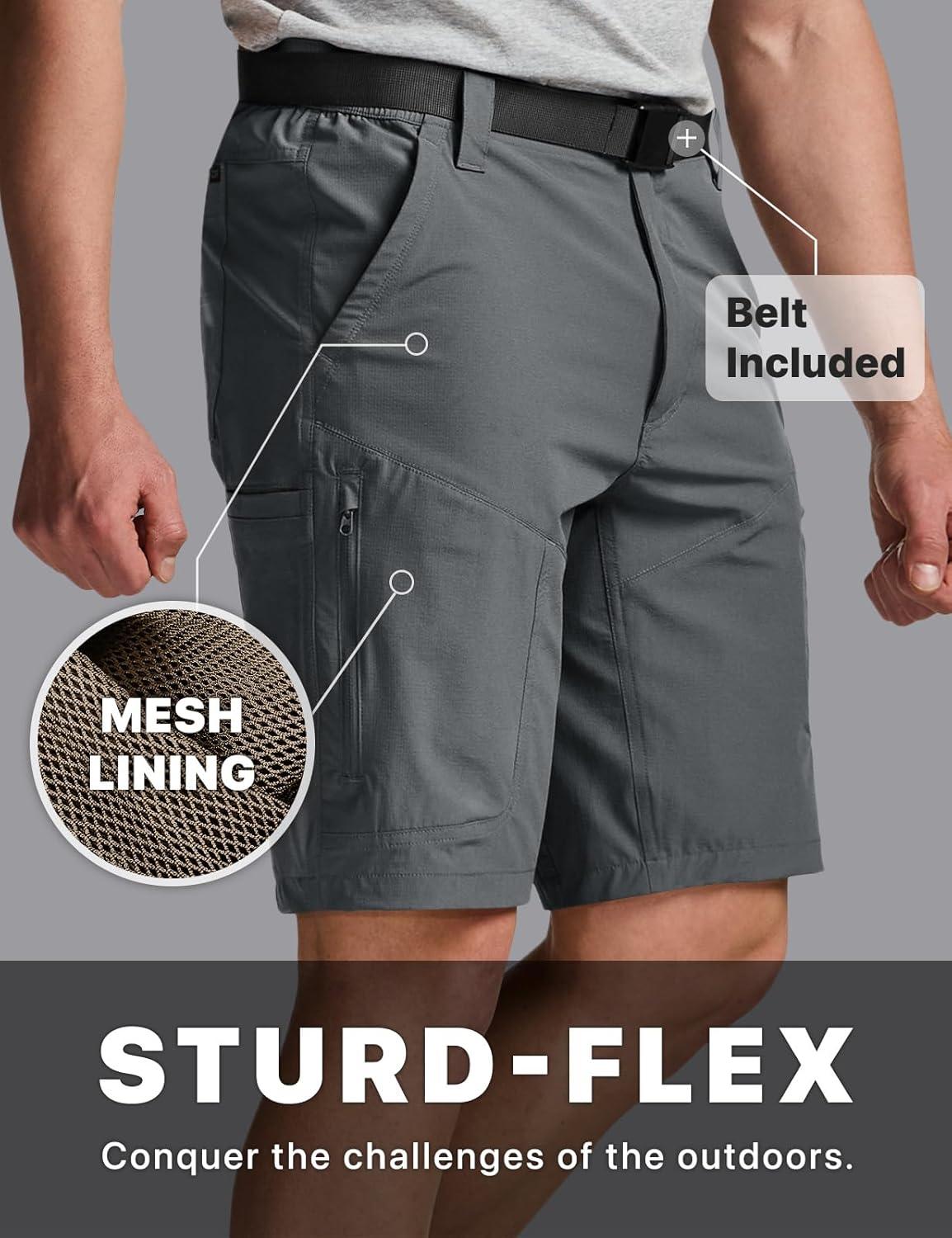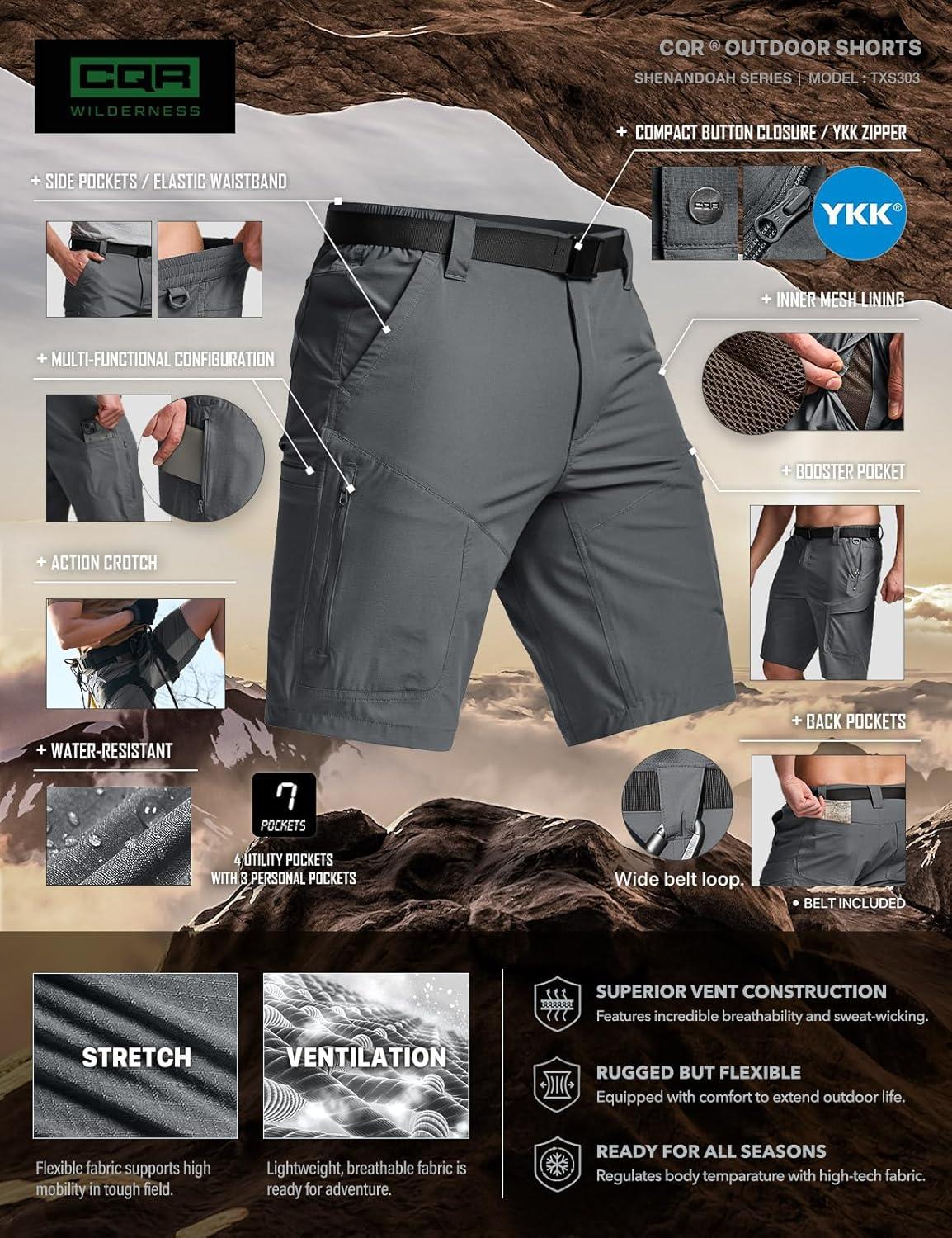 CQR Men’s Quick Dry Stretch Hiking Cargo Shorts, Lightweight Water Resistant Tactical Casual, Golf & Outdoor with Pockets(Shendo Trail W/Belt Carbon Grey)