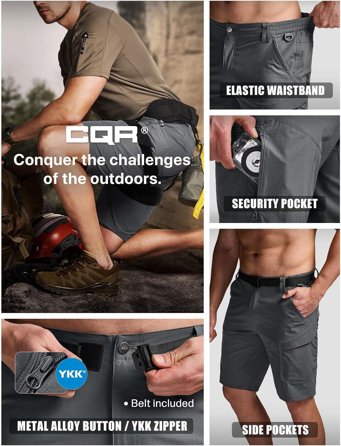 imageCQR Mens Quick Dry Stretch Hiking Cargo Shorts Lightweight Water Resistant Tactical Casual Golf amp Outdoor with PocketsShendo Trail WBelt Carbon Grey