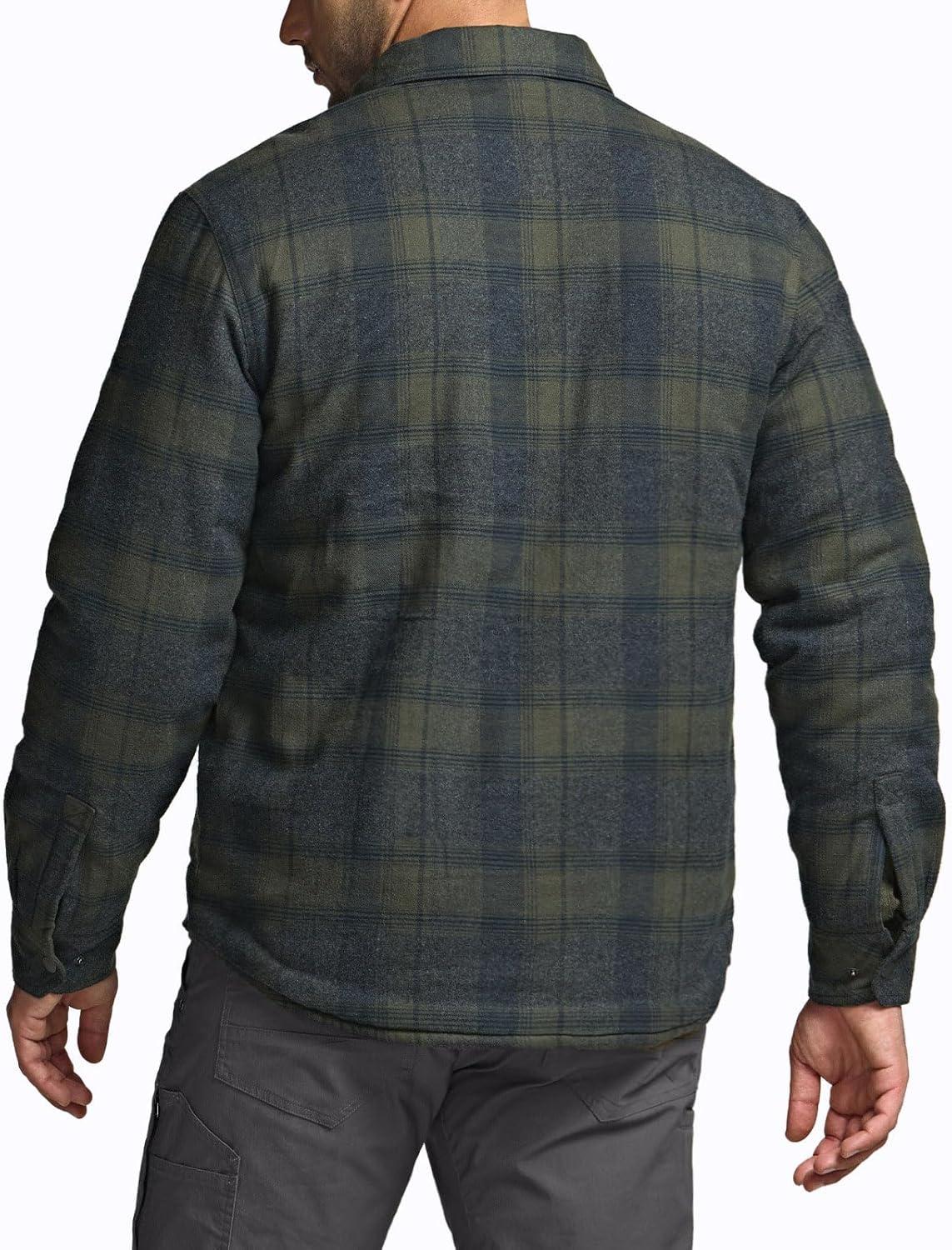 CQR Men’s Sherpa Lined Cotton Flannel Shirt Jacket, Long Sleeve Warm Winter Outdoor Plaid Button Up Jacket Coat with Pockets(Stealth Aged Barrel)