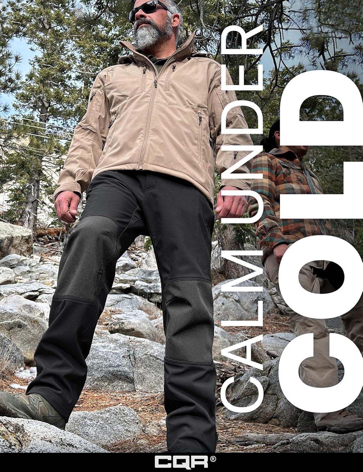 imageCQR Mens Softshell Fleece Lined Winter Hiking Pants Water Resistant Insulated Thermal Outdoor Tactical Warm Snow Ski PantsRecon Black