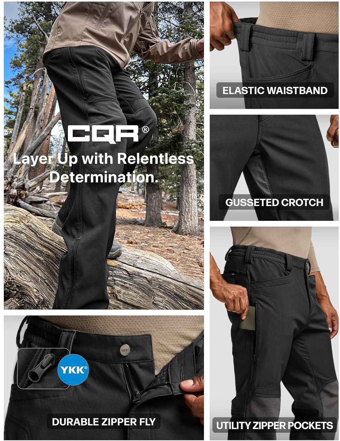 imageCQR Mens Softshell Fleece Lined Winter Hiking Pants Water Resistant Insulated Thermal Outdoor Tactical Warm Snow Ski PantsExpedition Black