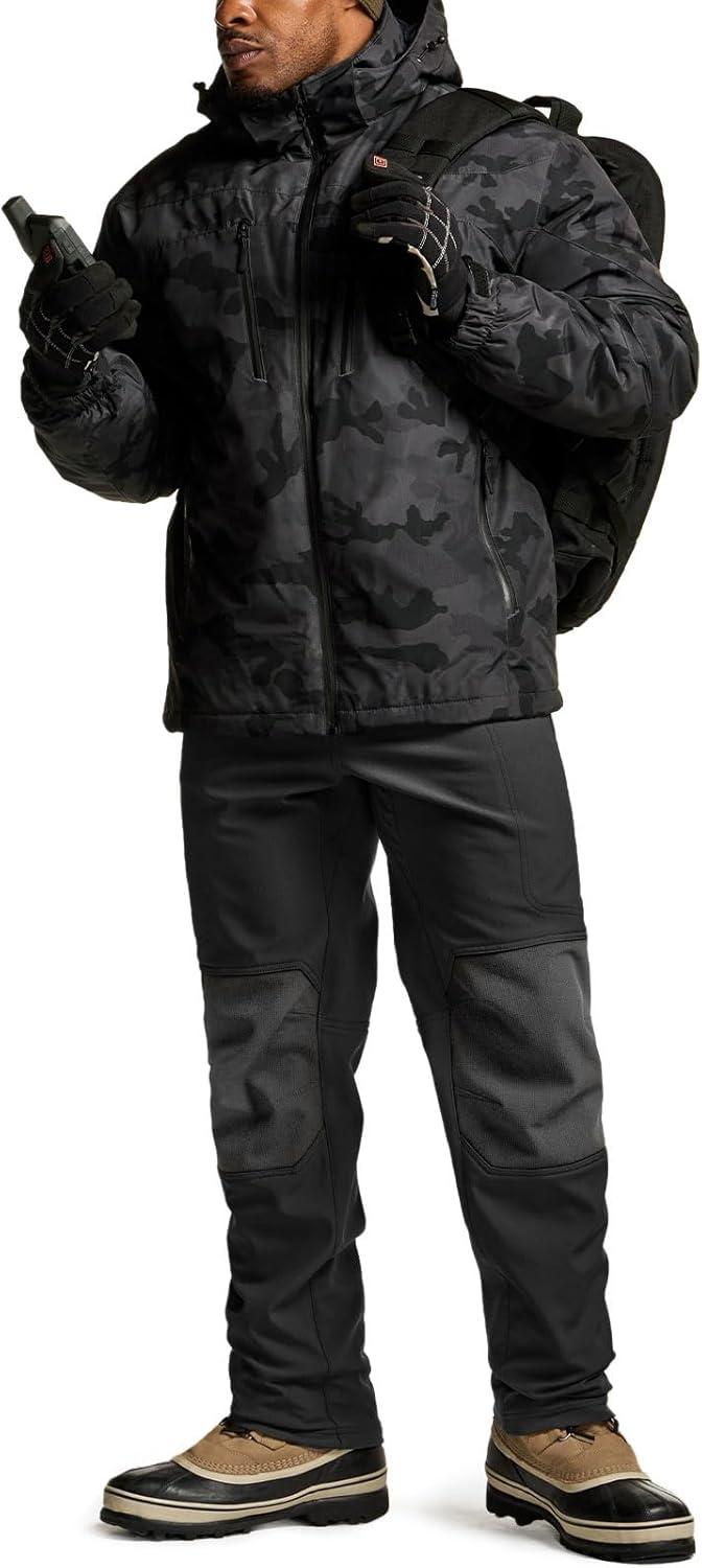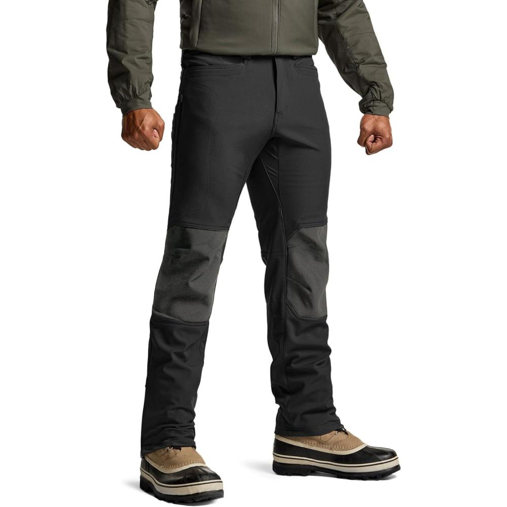 CQR Men’s Softshell Fleece Lined Winter Hiking Pants, Water Resistant Insulated Thermal, Outdoor Tactical Warm Snow Ski Pants(Recon Black)