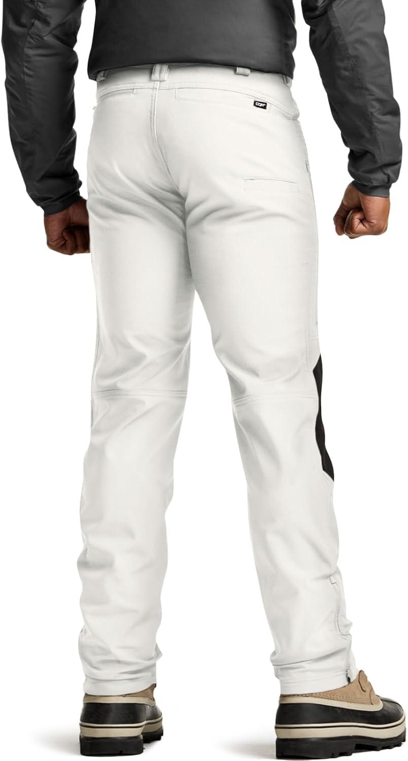 CQR Men’s Softshell Fleece Lined Winter Hiking Pants, Water Resistant Insulated Thermal, Outdoor Tactical Warm Snow Ski Pants(Expedition White)