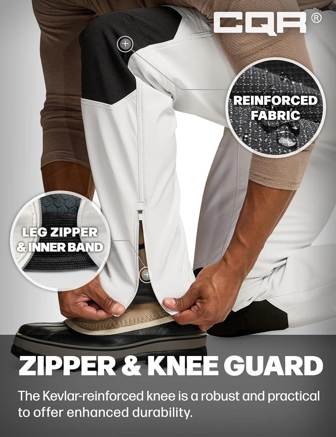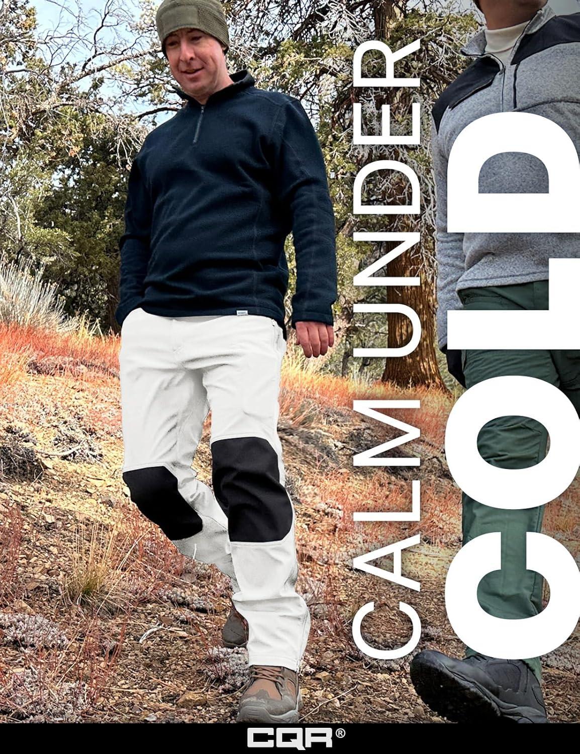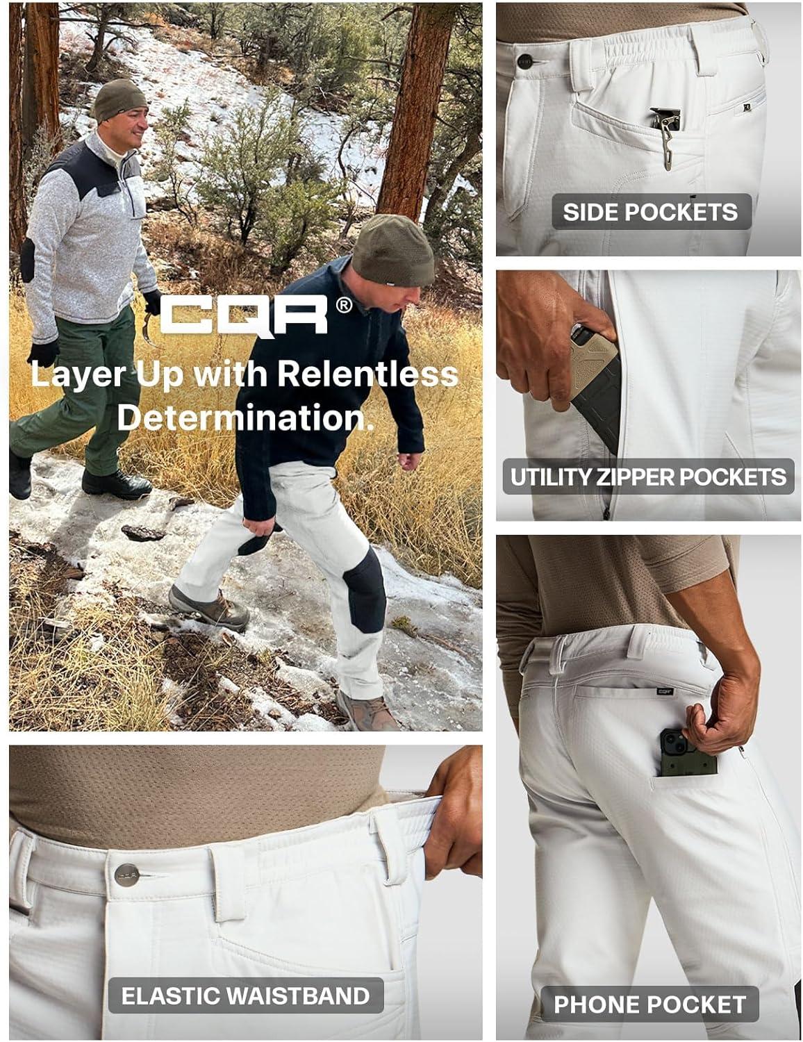 imageCQR Mens Softshell Fleece Lined Winter Hiking Pants Water Resistant Insulated Thermal Outdoor Tactical Warm Snow Ski PantsExpedition White