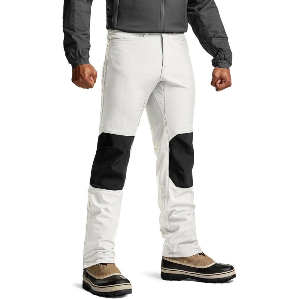imageCQR Mens Softshell Fleece Lined Winter Hiking Pants Water Resistant Insulated Thermal Outdoor Tactical Warm Snow Ski PantsTeton Alpha White