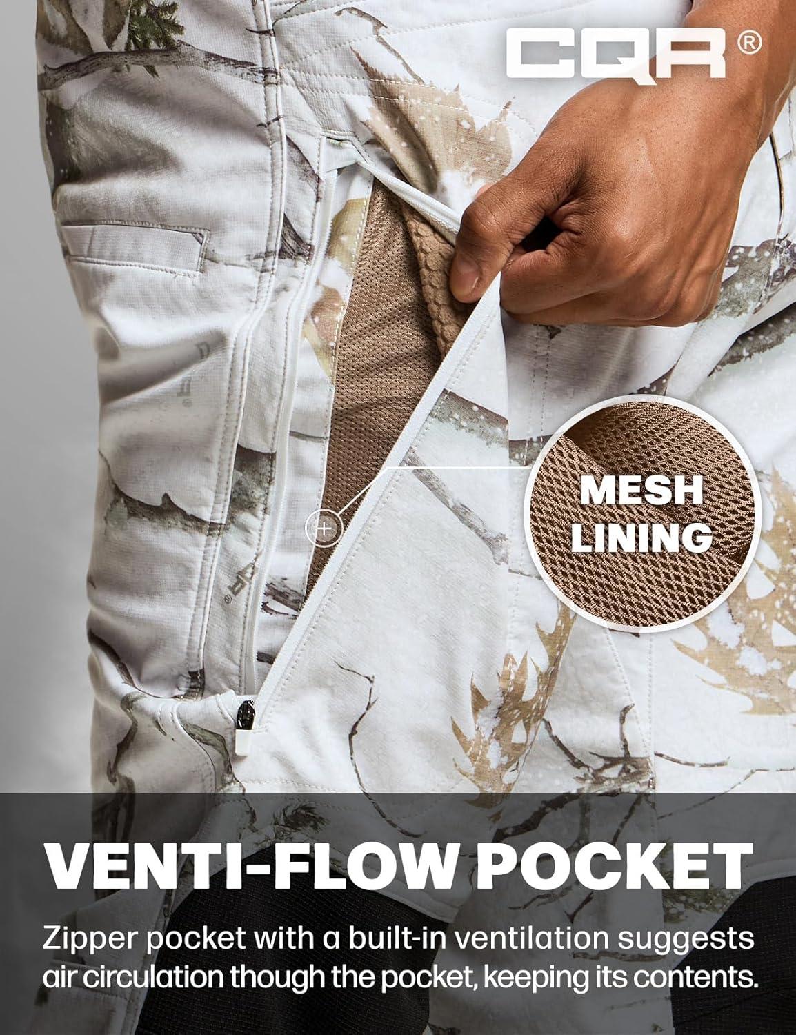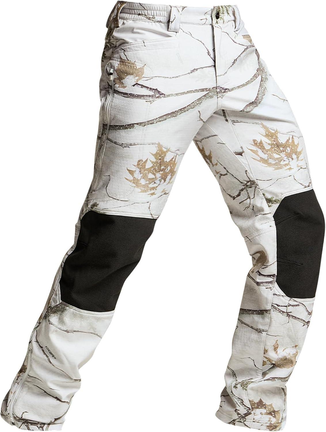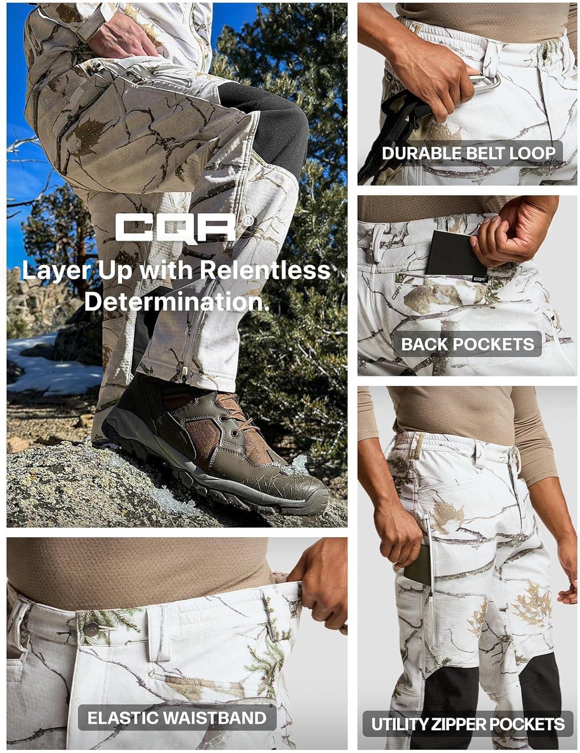 CQR Men’s Softshell Fleece Lined Winter Hiking Pants, Water Resistant Insulated Thermal, Outdoor Tactical Warm Snow Ski Pants(Expedition Winter Hunting Camo)