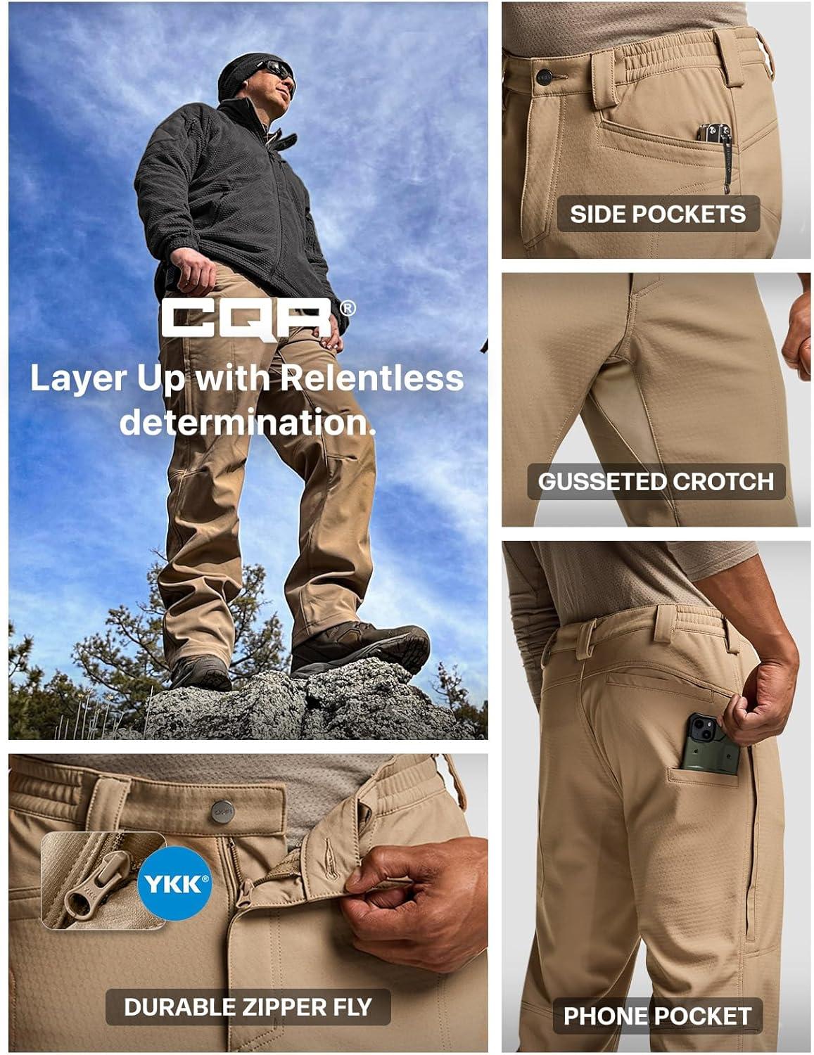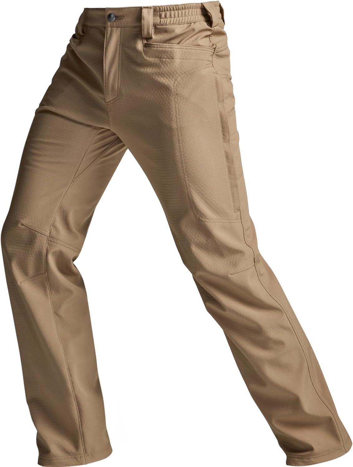 CQR Men’s Softshell Fleece Lined Winter Hiking Pants, Water Resistant Insulated Thermal, Outdoor Tactical Warm Snow Ski Pants(Recon Coyote)