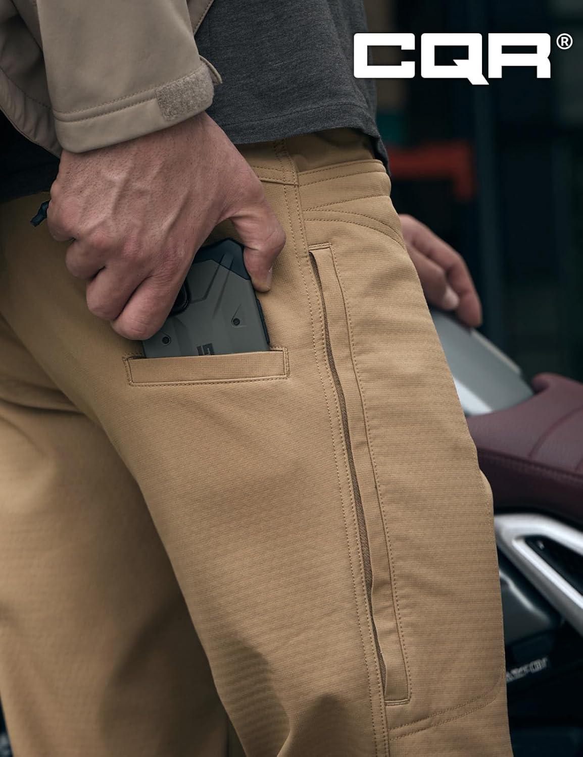 imageCQR Mens Softshell Fleece Lined Winter Hiking Pants Water Resistant Insulated Thermal Outdoor Tactical Warm Snow Ski PantsRecon Coyote
