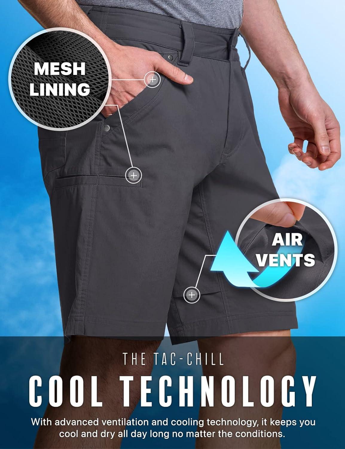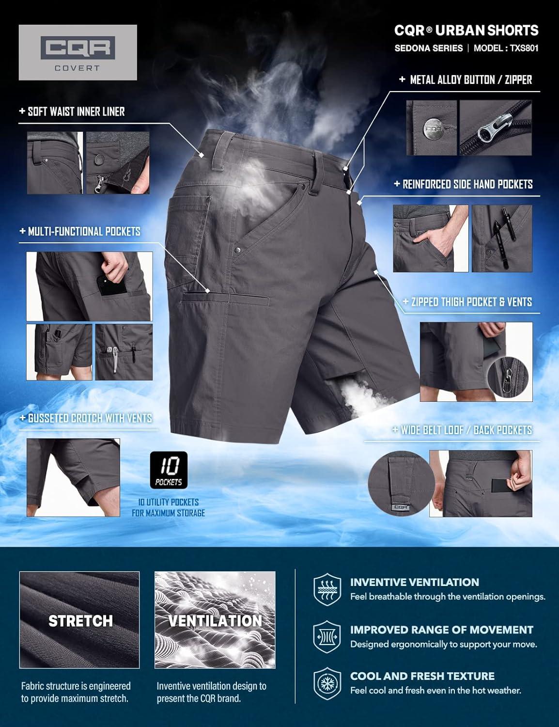 CQR Men's Stretch Utility Shorts, Lightweight Quick Dry Casual Shorts, Hiking Golf Cargo Shorts with Zipper Pockets(Sedona Shorts Charcoal)