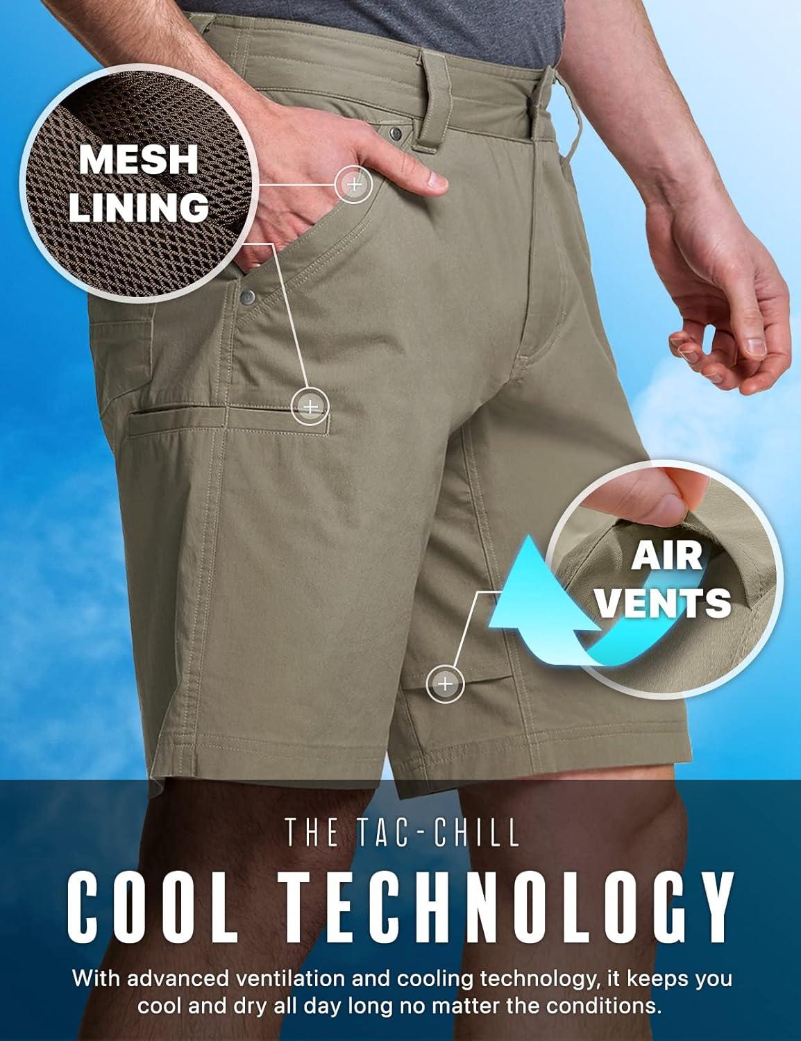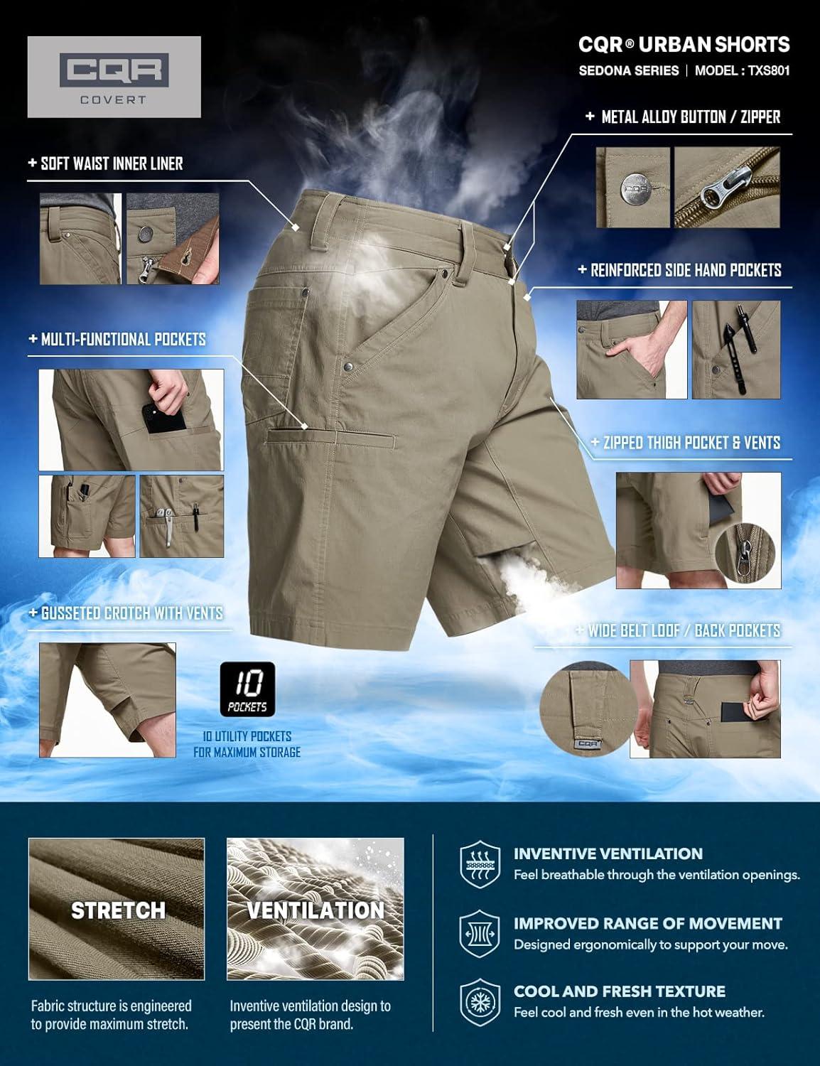 CQR Men's Stretch Utility Shorts, Lightweight Quick Dry Casual Shorts, Hiking Golf Cargo Shorts with Zipper Pockets(Sedona Shorts Tan)