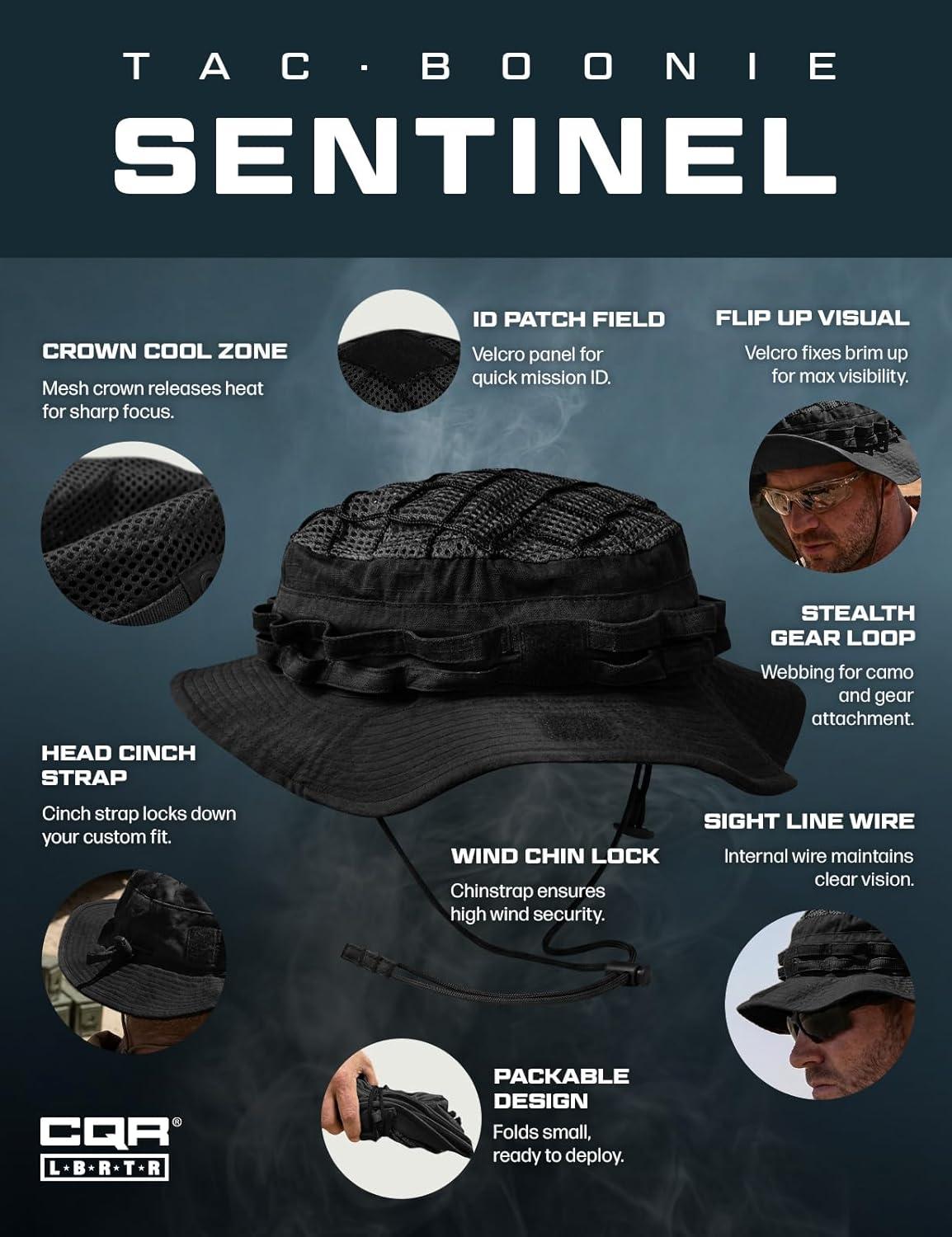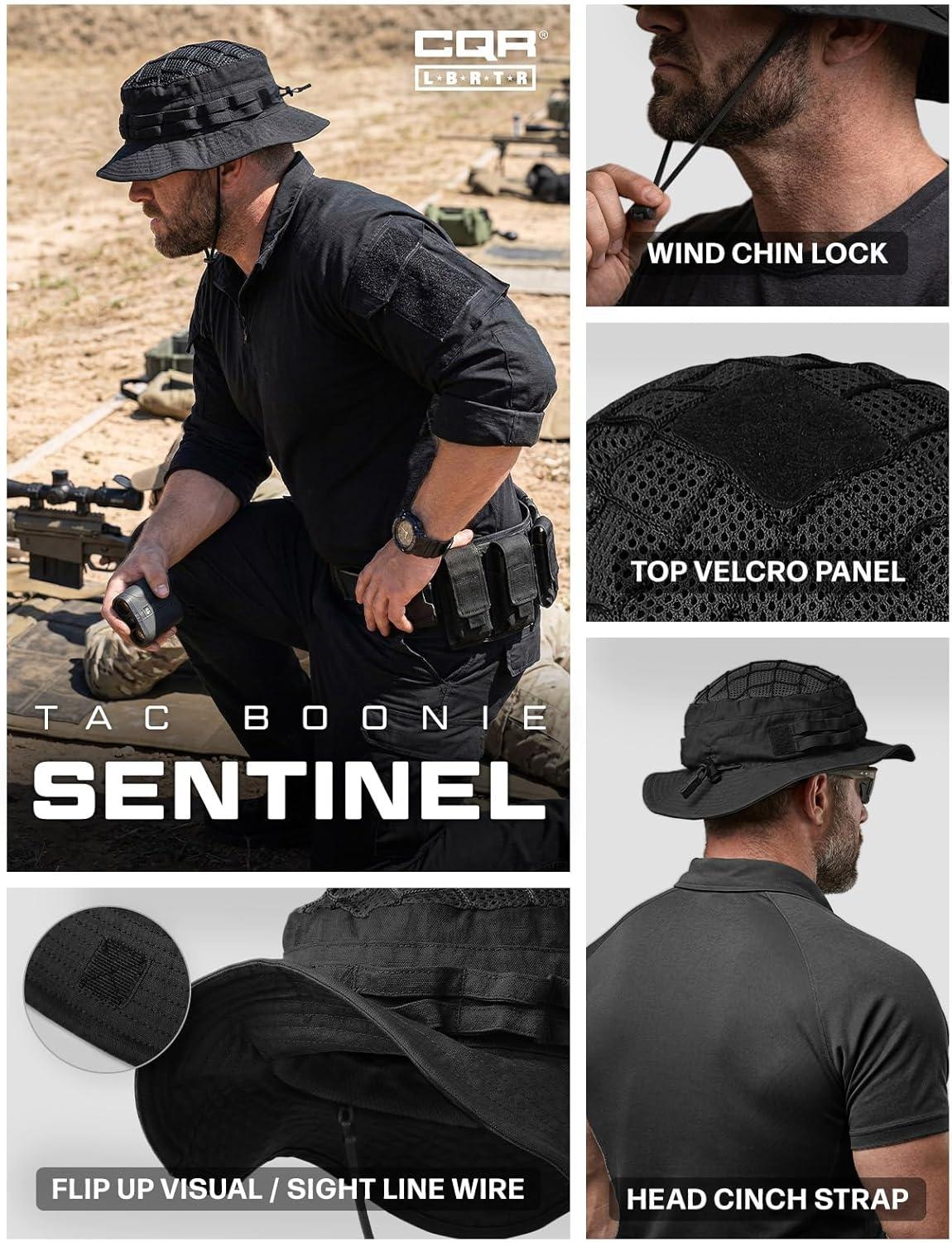 CQR Men's Tactical Boonie Hat, Breathable Packable Sun Hat for Hunting, Hiking, Fishing, Shooting, and Outdoor Activities(Sentinel Black)