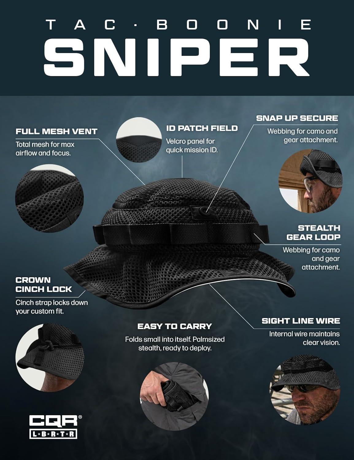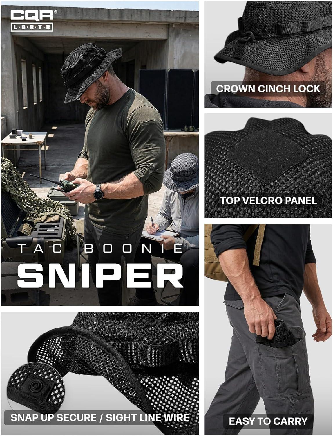 CQR Men's Tactical Boonie Hat, Breathable Packable Sun Hat for Hunting, Hiking, Fishing, Shooting, and Outdoor Activities(Sniper Black)