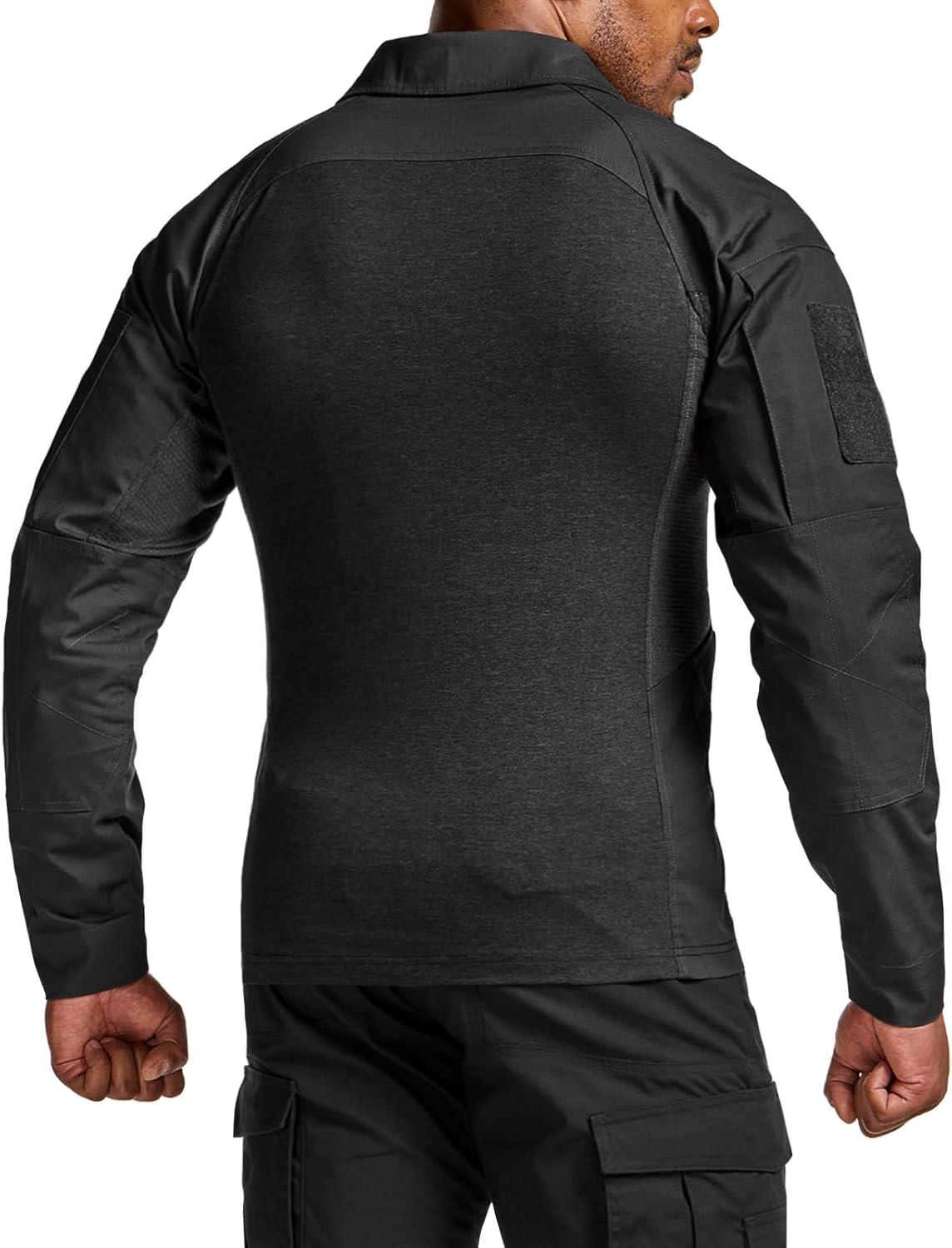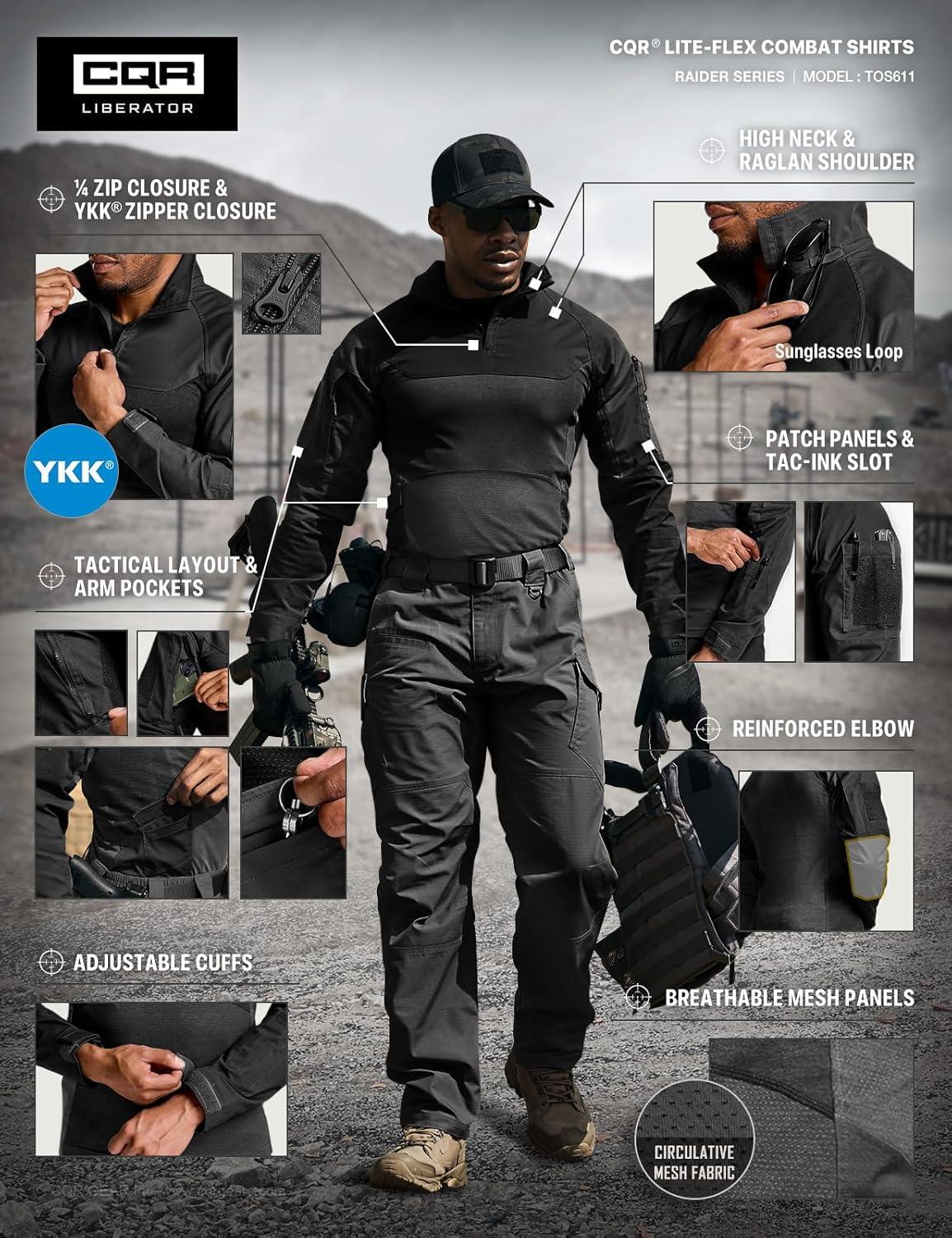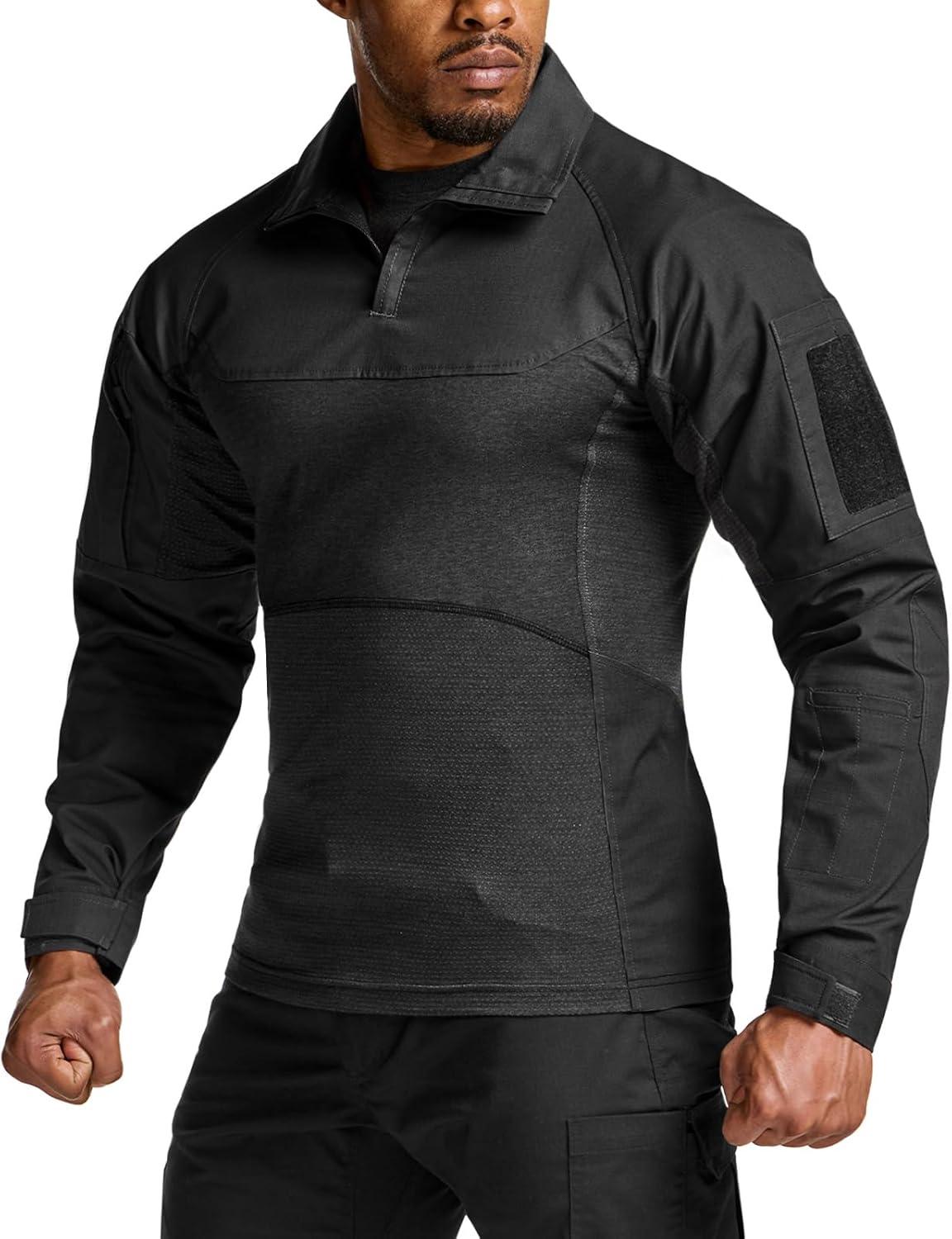 imageCQR Mens Tactical Combat Shirt 14 Zip Long Sleeve Breathable Military BDU Training Top for Shooting Hunting Range UseRaider Pro Black