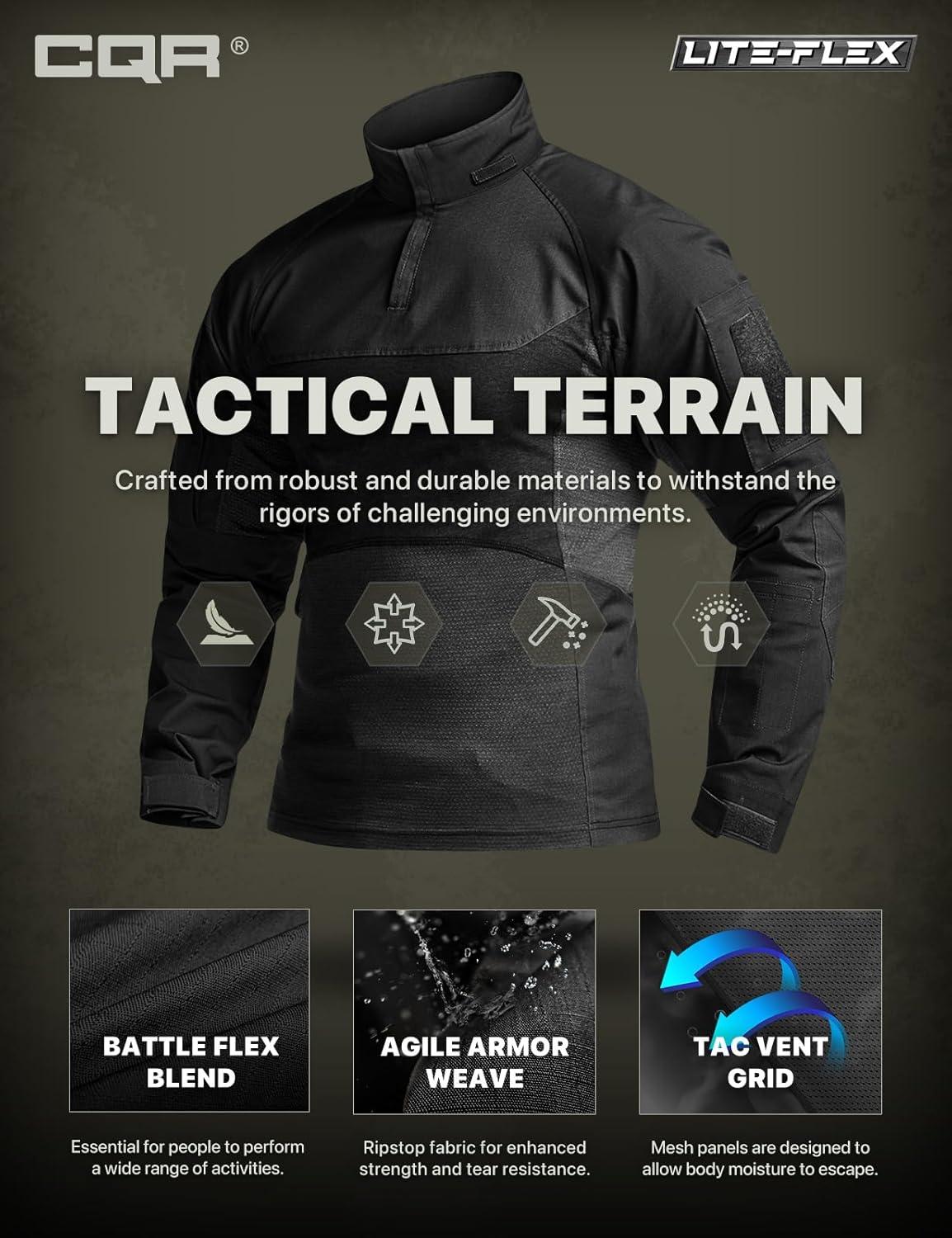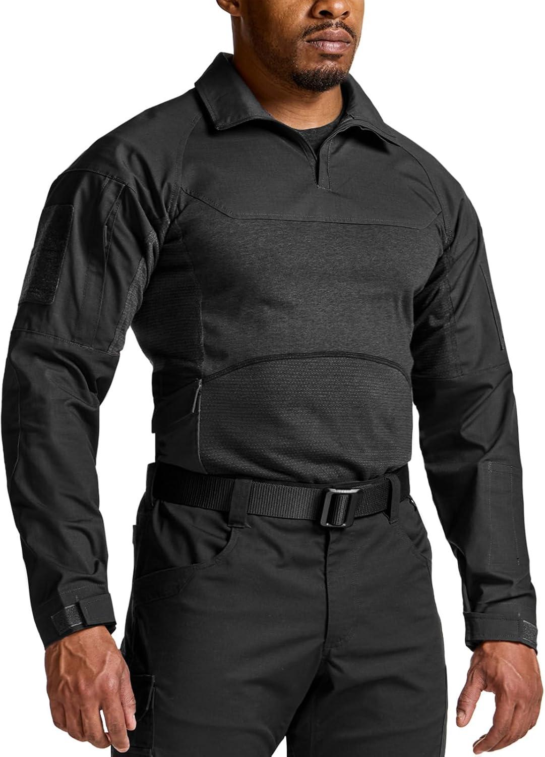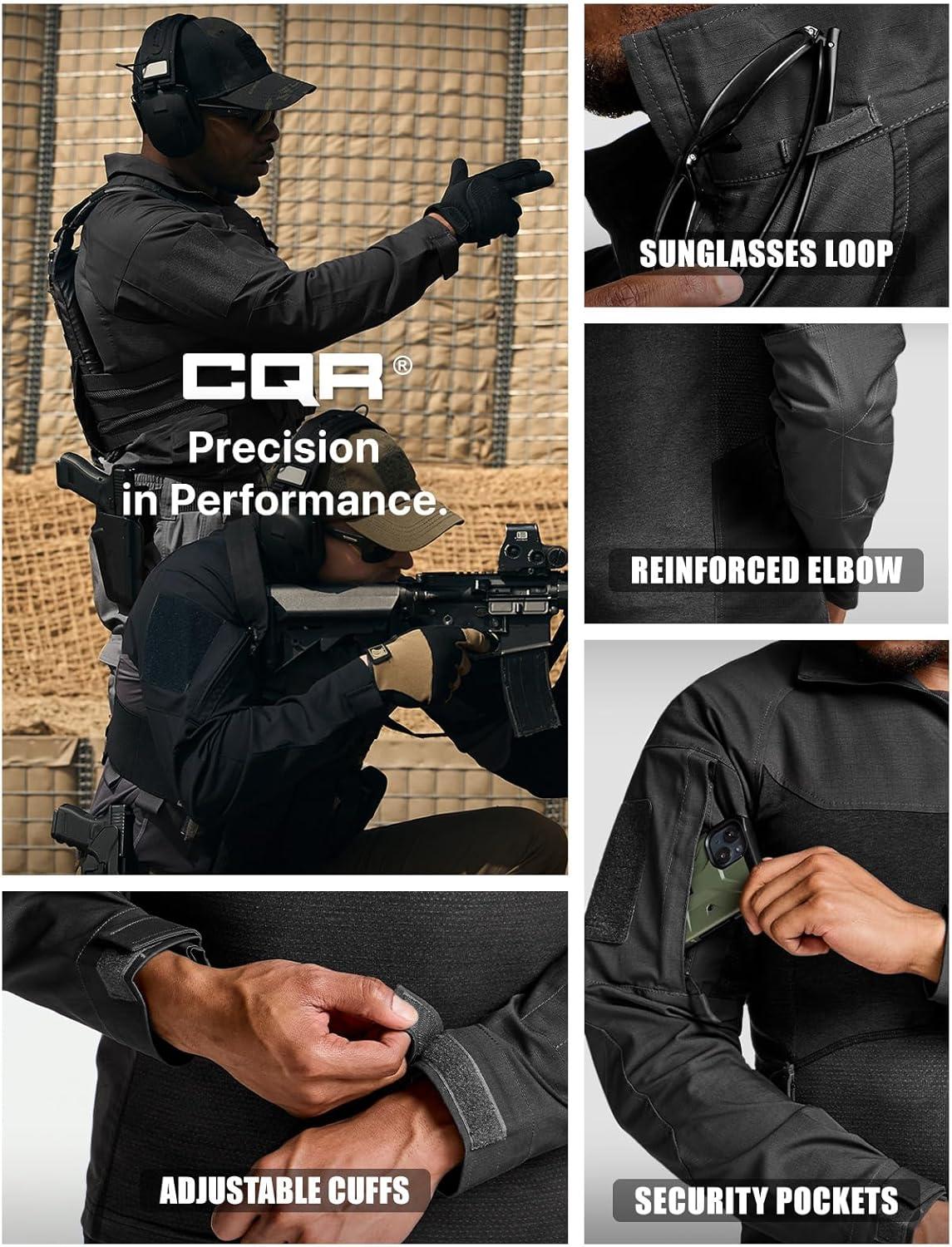imageCQR Mens Tactical Combat Shirt 14 Zip Long Sleeve Breathable Military BDU Training Top for Shooting Hunting Range UseRaider Pro Black