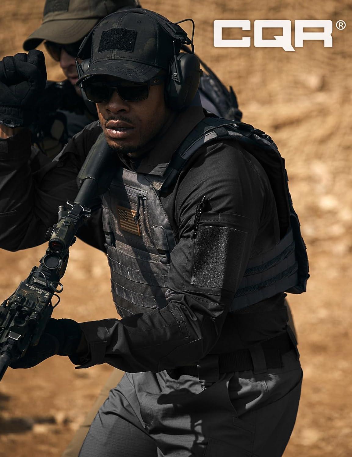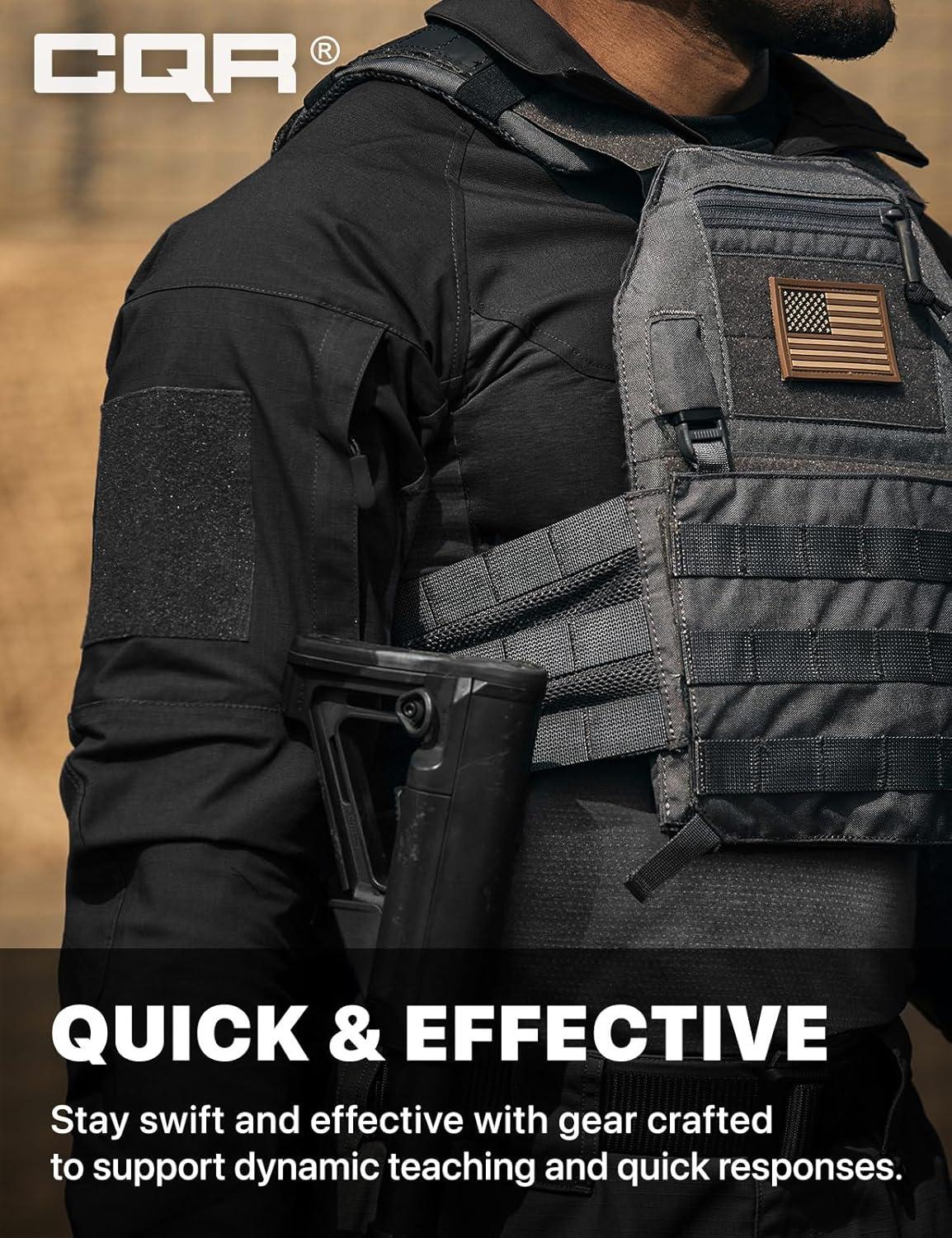 CQR Men’s Tactical Combat Shirt, 1/4 Zip Long Sleeve Breathable Military BDU Training Top for Shooting, Hunting, Range Use(Raider Pro Black)