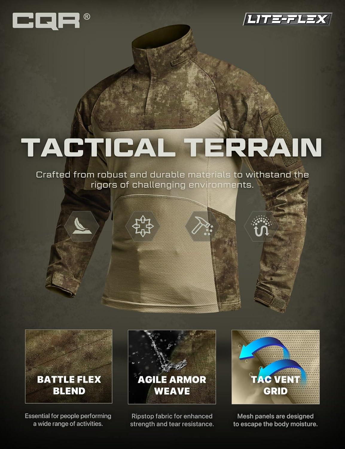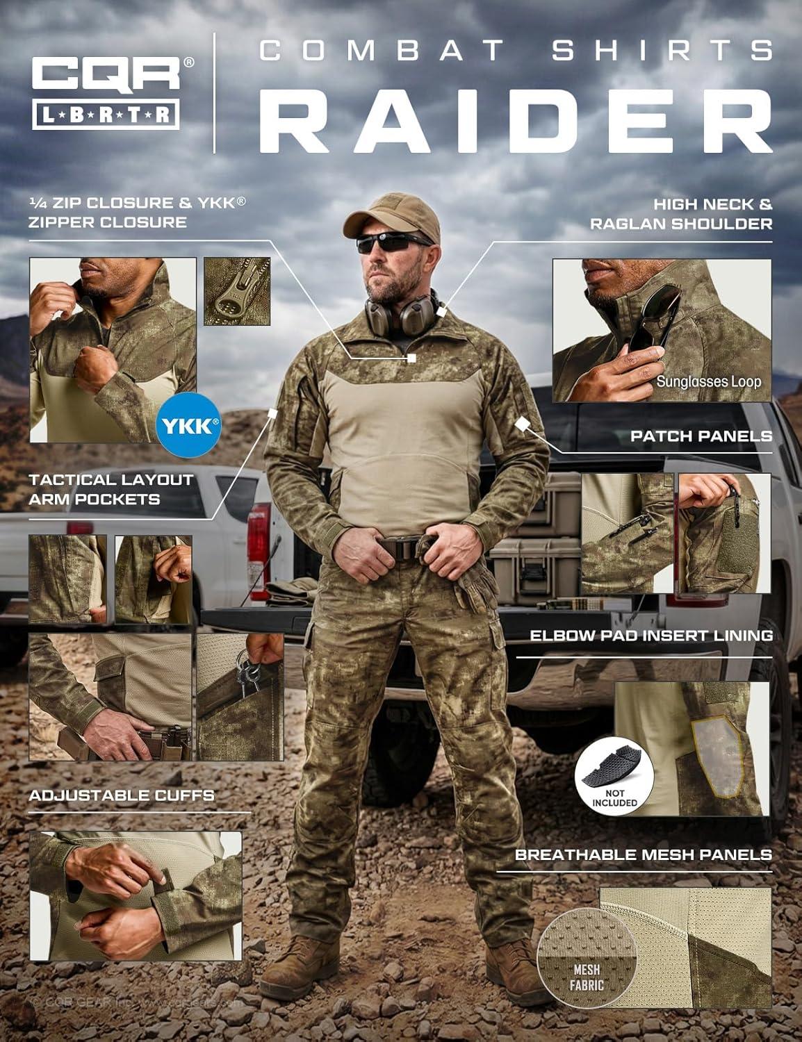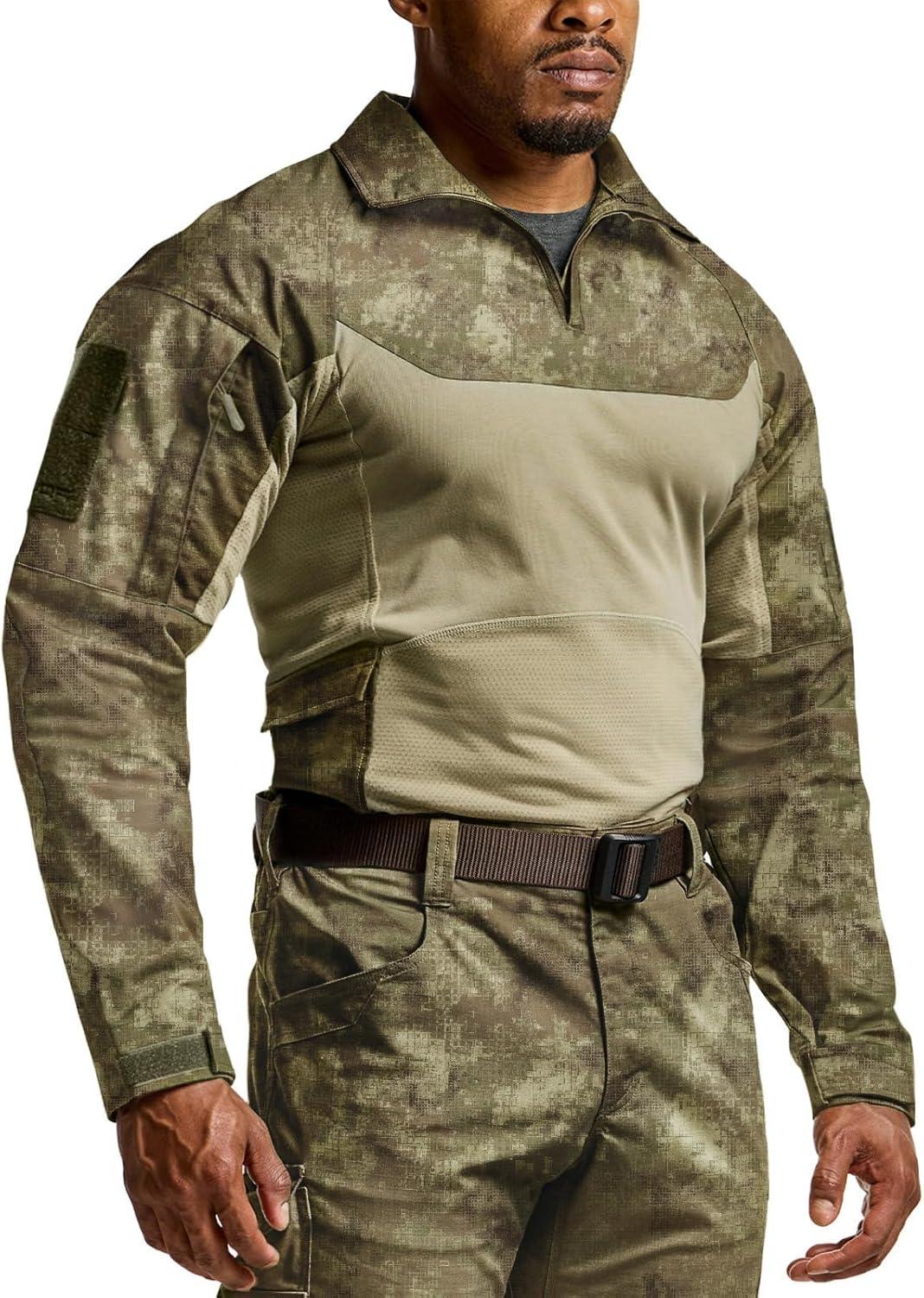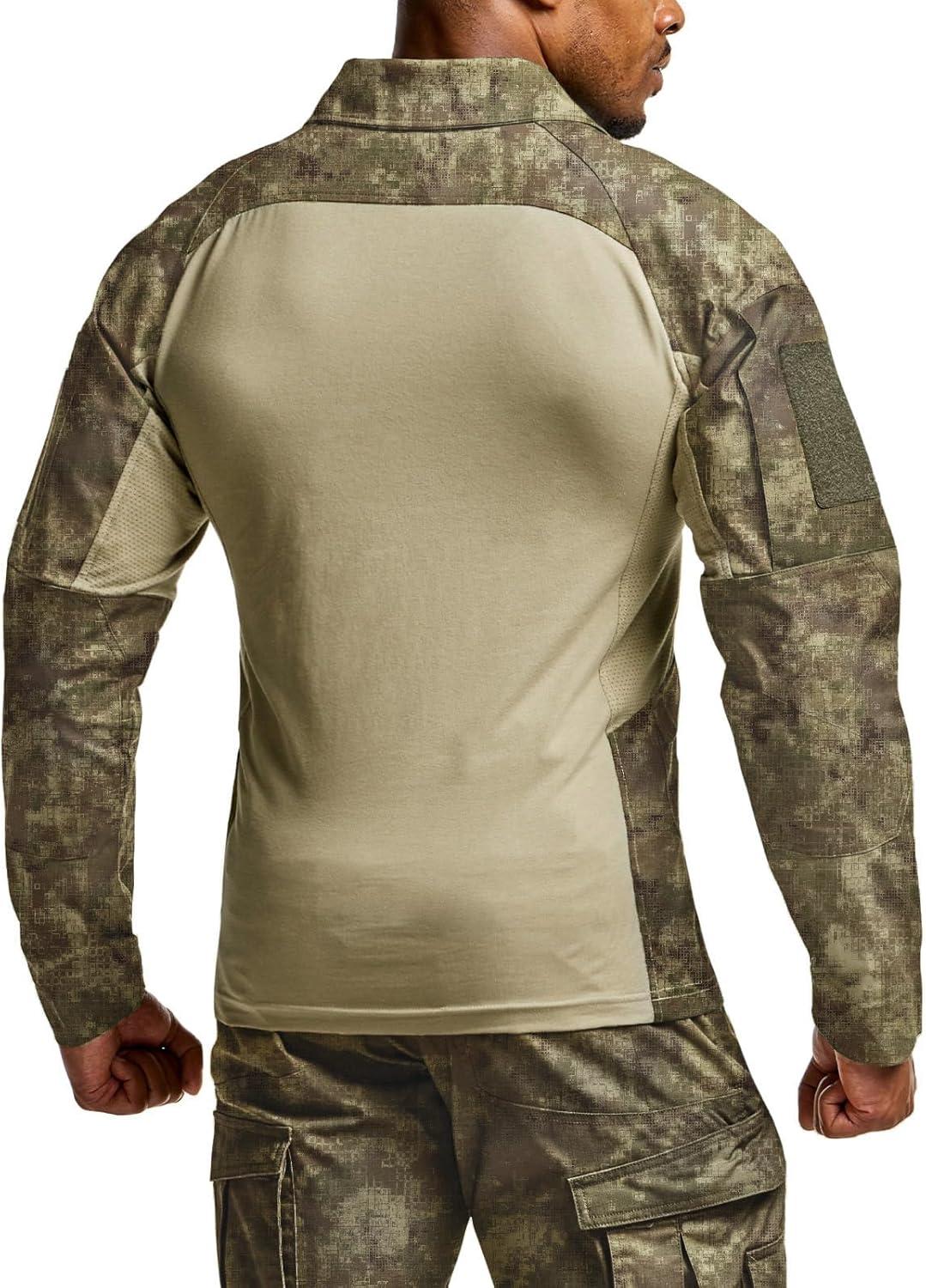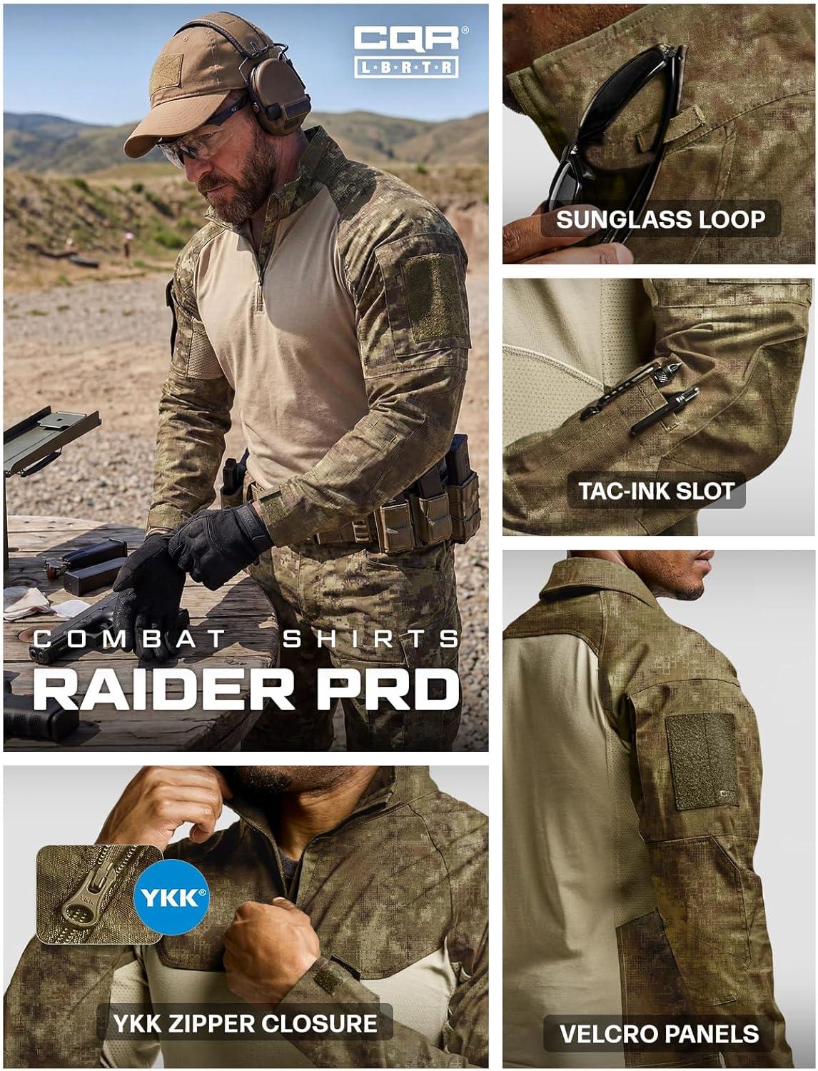 CQR Men’s Tactical Combat Shirt, 1/4 Zip Long Sleeve Breathable Military BDU Training Top for Shooting, Hunting, Range Use(Raider Pro Fractal Camo)