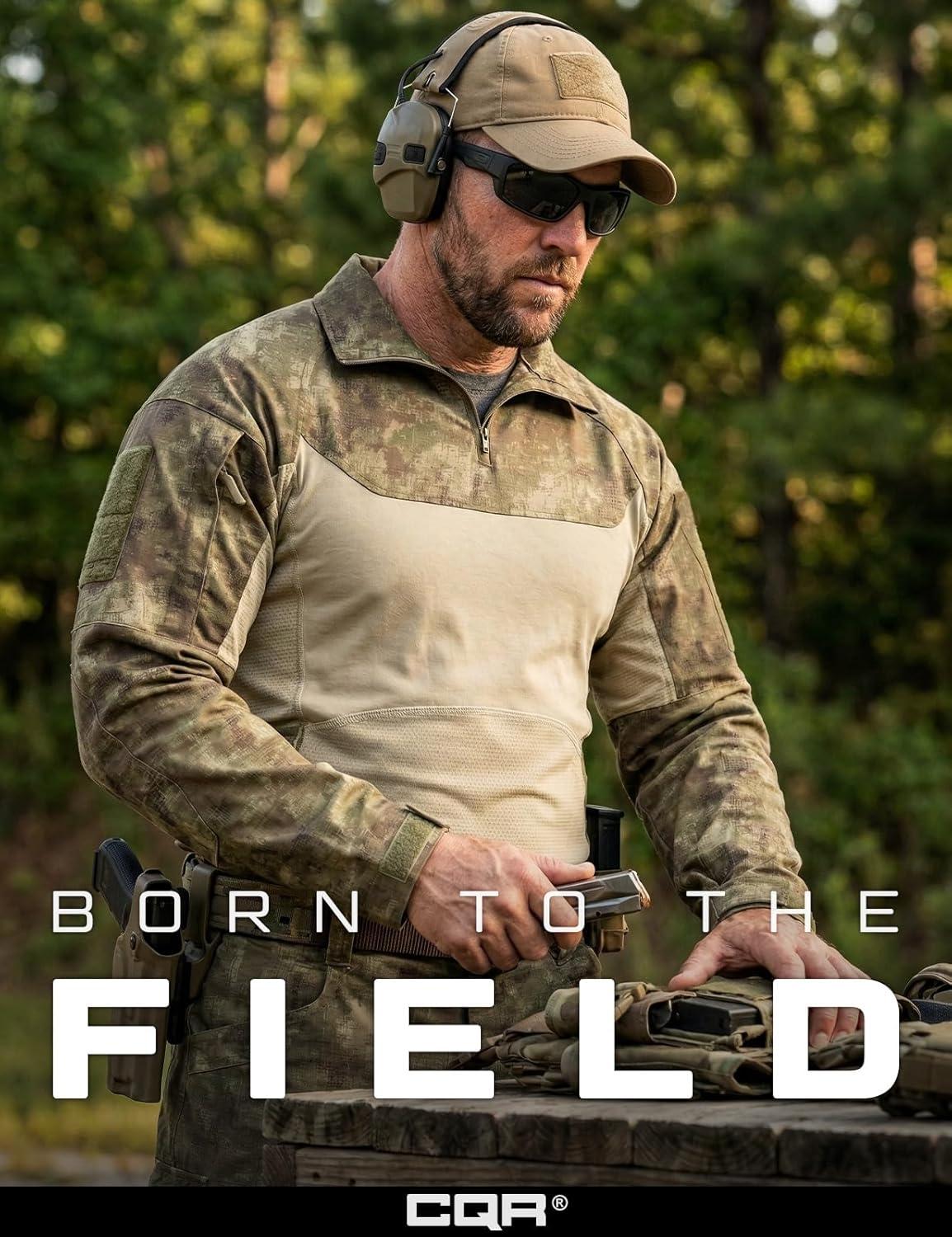 CQR Men’s Tactical Combat Shirt, 1/4 Zip Long Sleeve Breathable Military BDU Training Top for Shooting, Hunting, Range Use(Raider Pro Cougar)