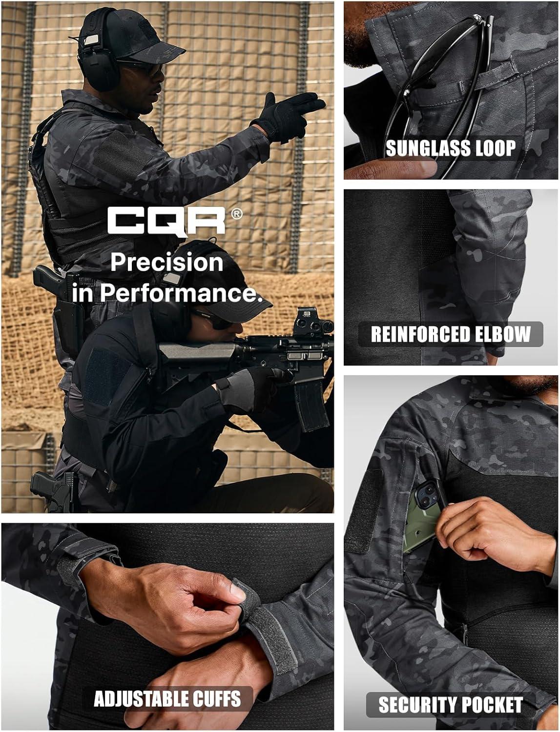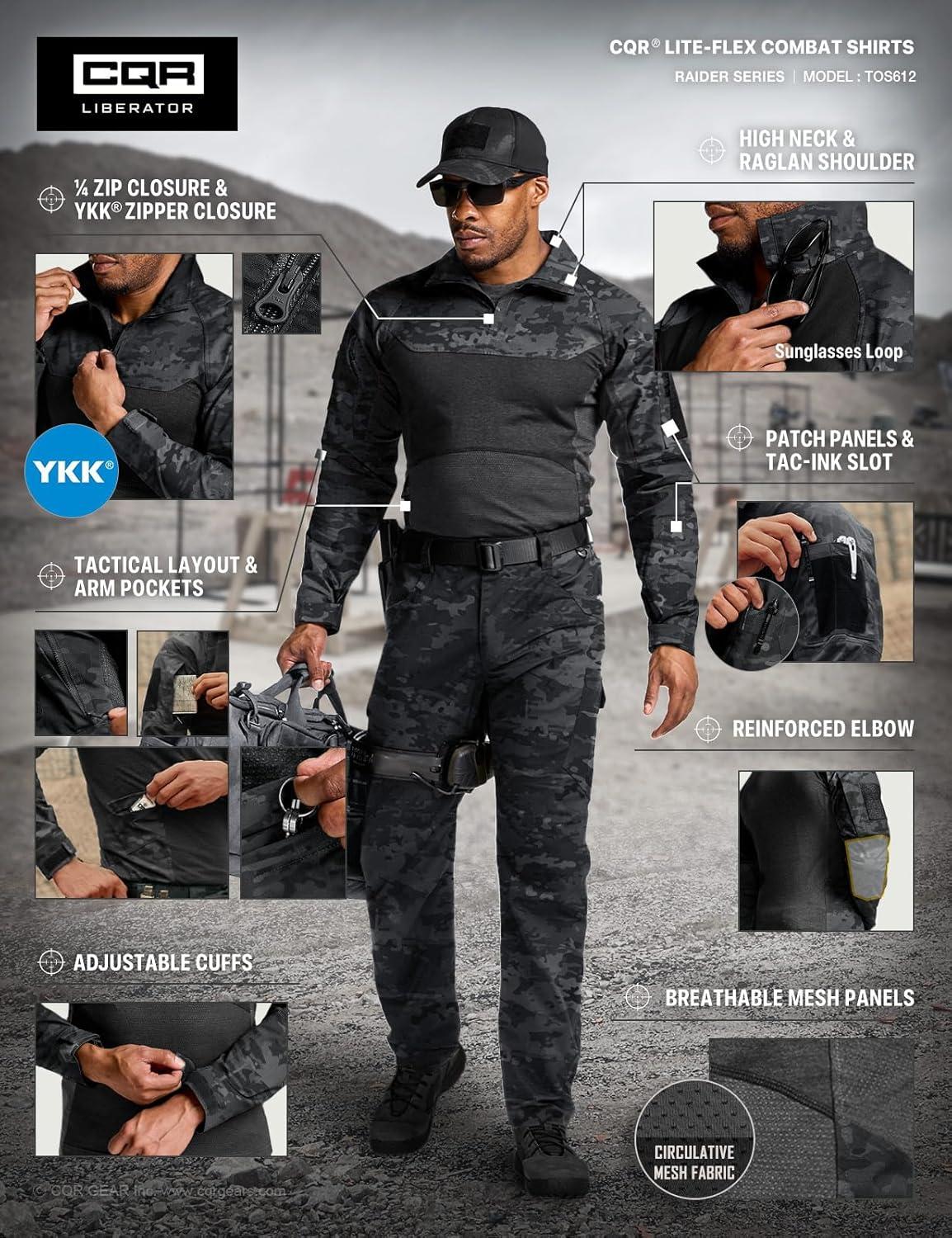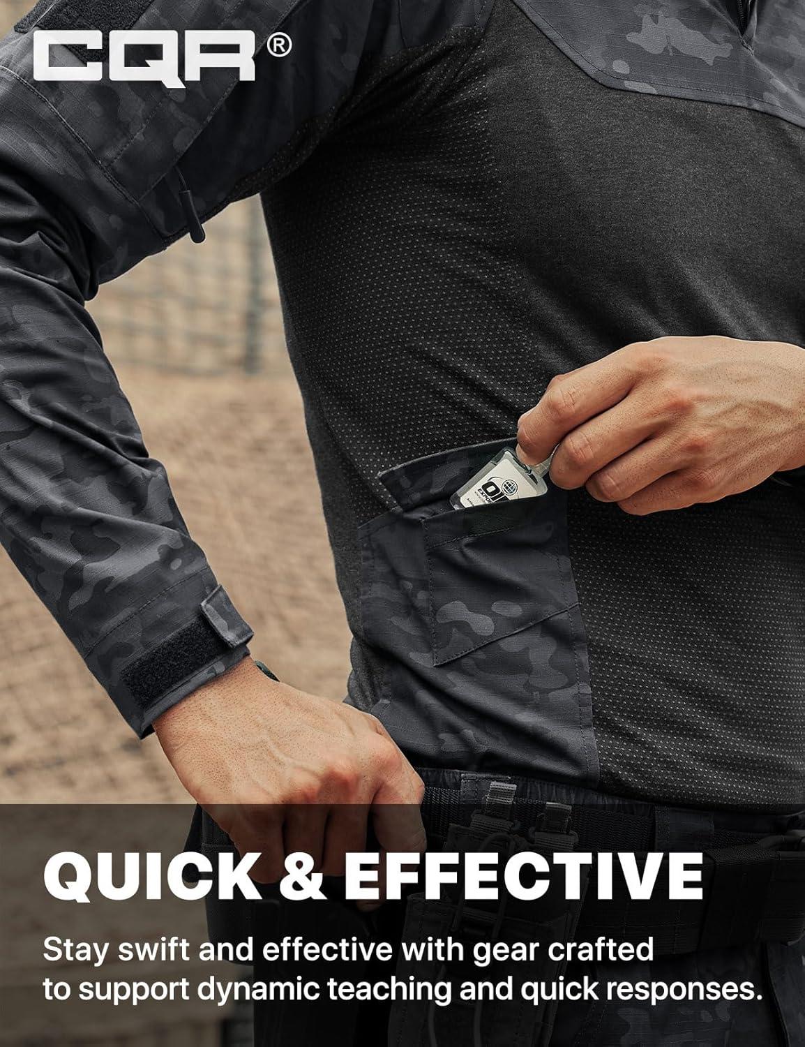 imageCQR Mens Tactical Combat Shirt 14 Zip Long Sleeve Breathable Military BDU Training Top for Shooting Hunting Range UseRaider Pro Utility Camo Black