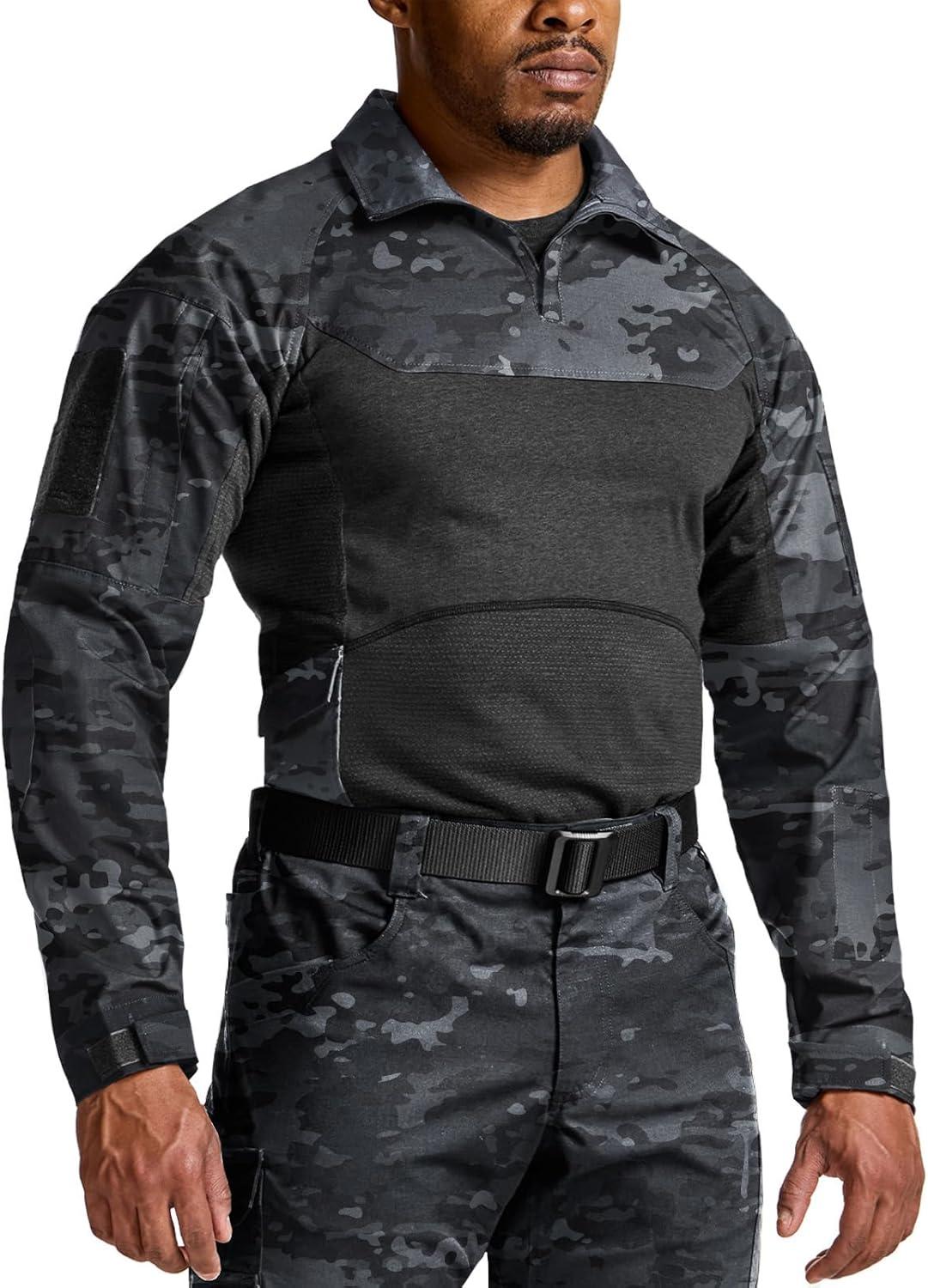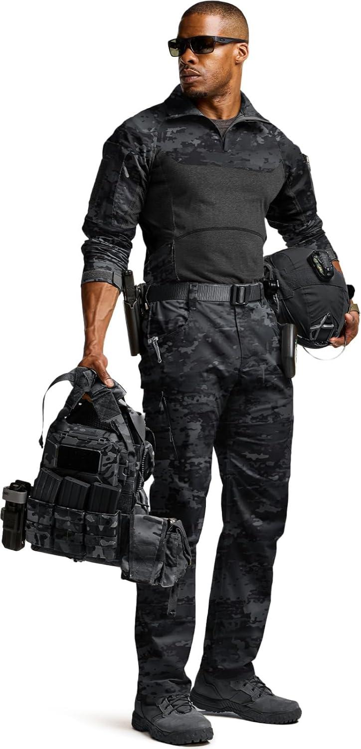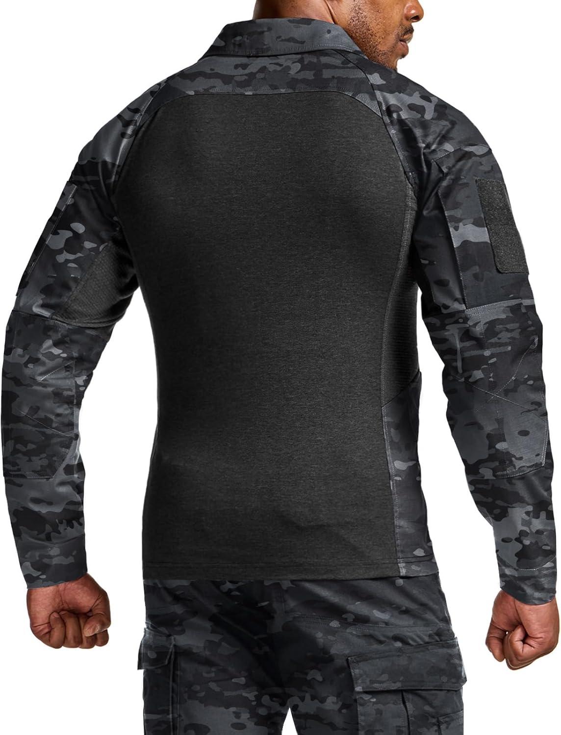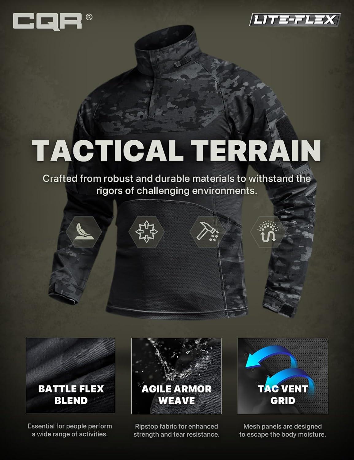 imageCQR Mens Tactical Combat Shirt 14 Zip Long Sleeve Breathable Military BDU Training Top for Shooting Hunting Range UseRaider Pro Utility Camo Black