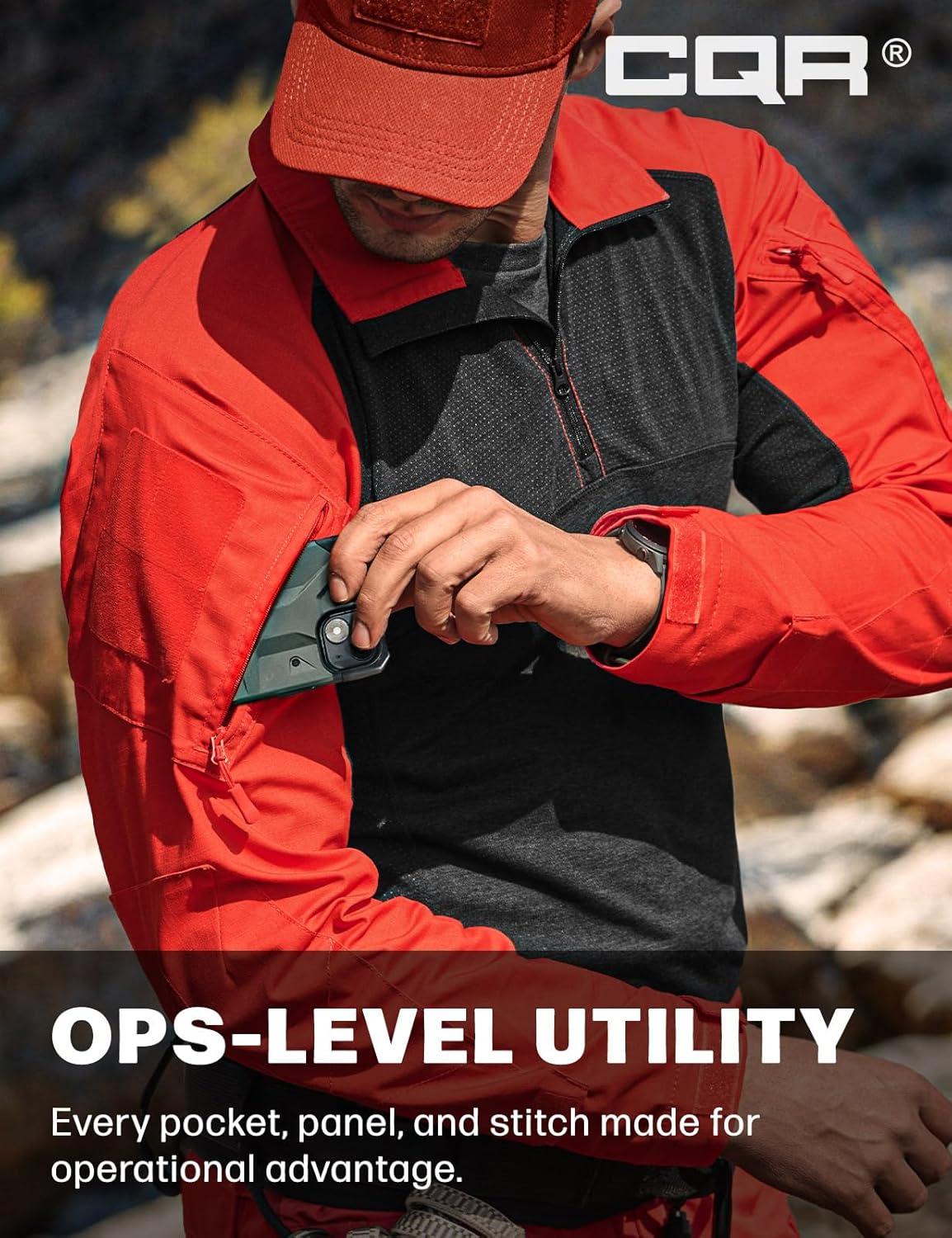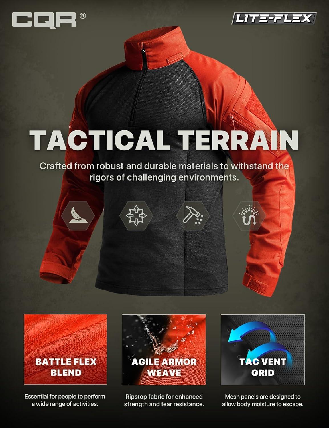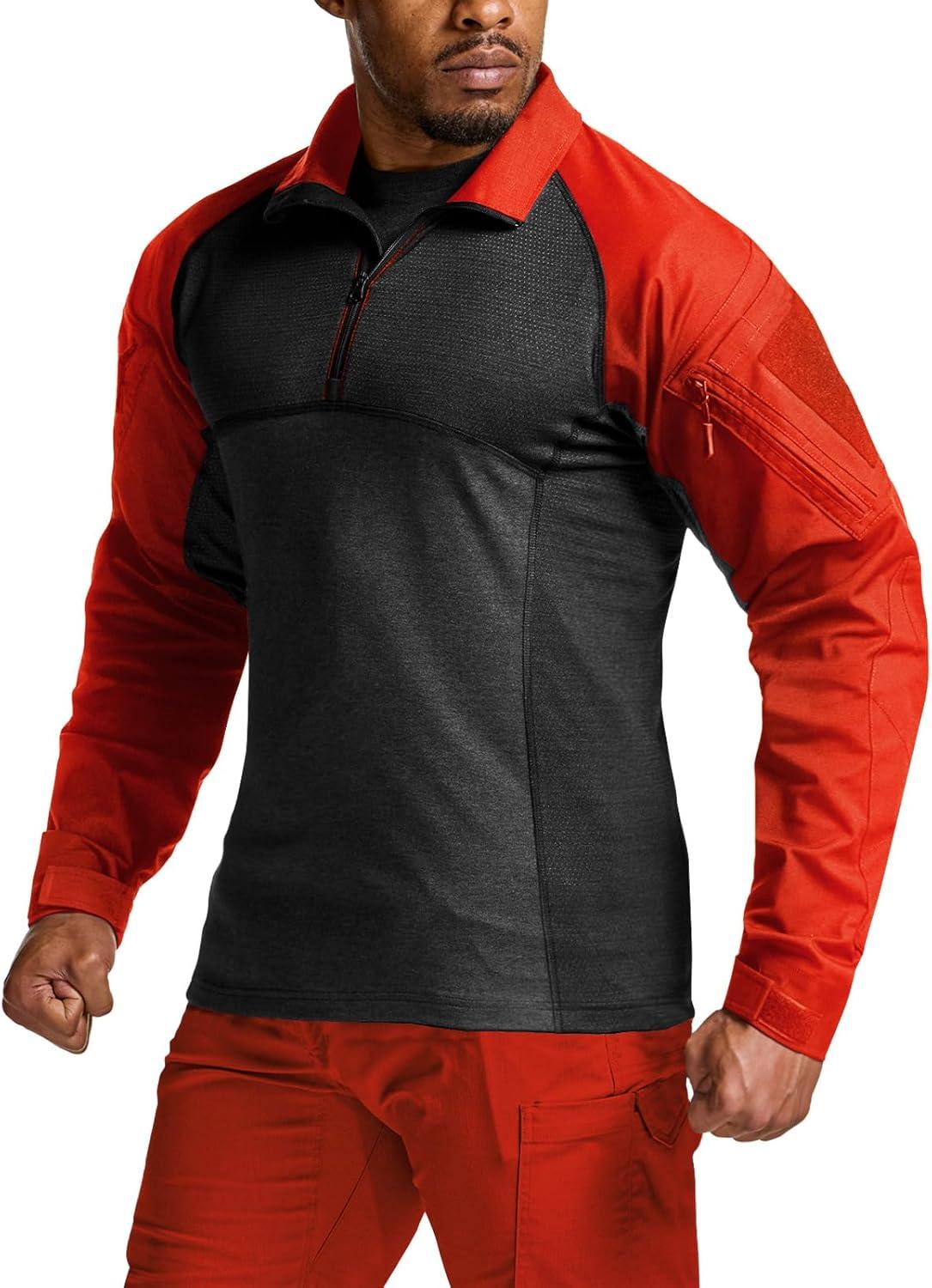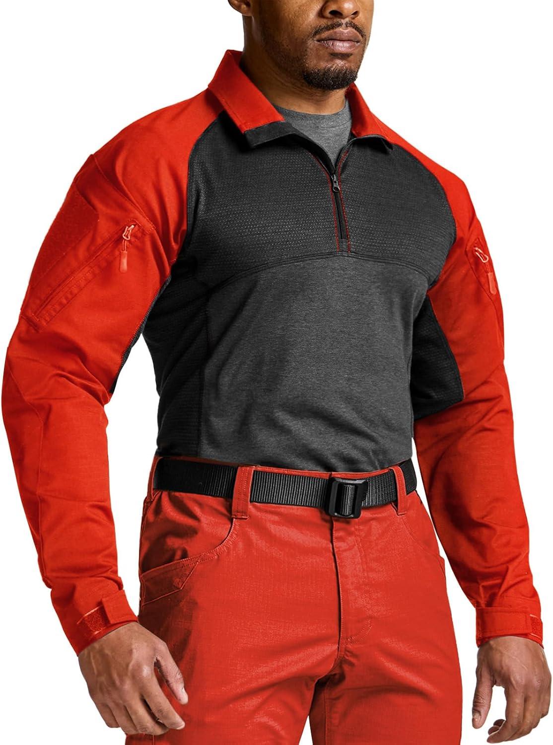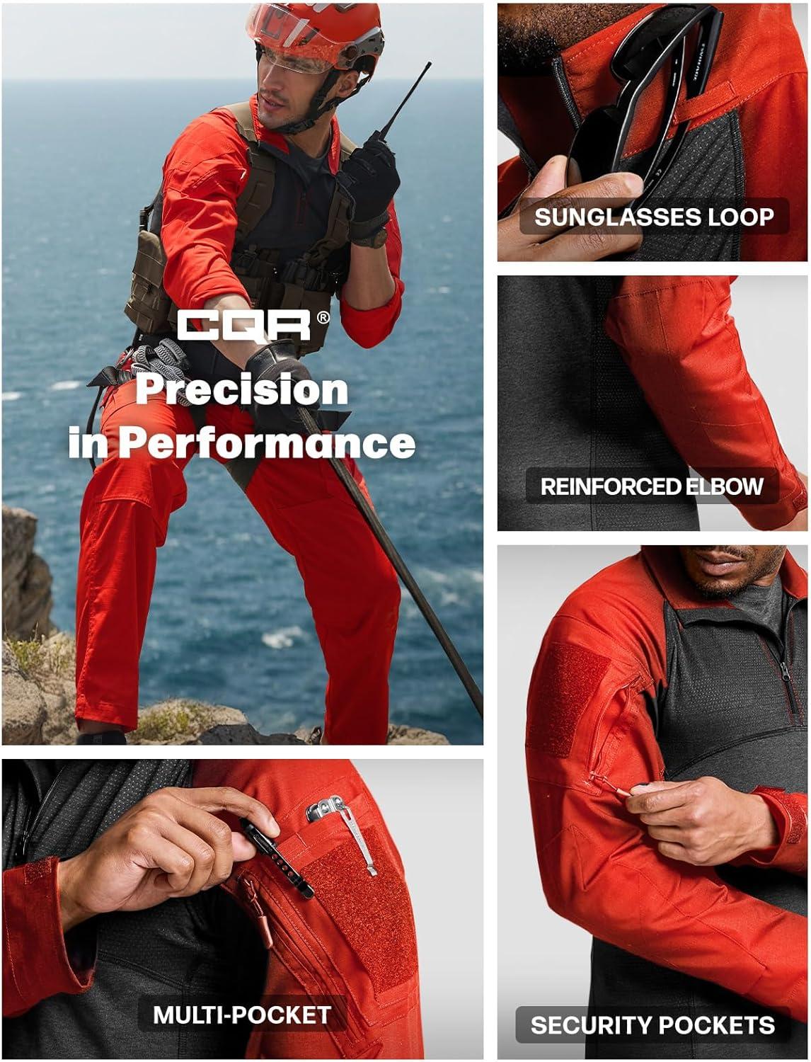 CQR Men’s Tactical Combat Shirt, 1/4 Zip Long Sleeve Breathable Military BDU Training Top for Shooting, Hunting, Range Use(Raider Rescue Orange)