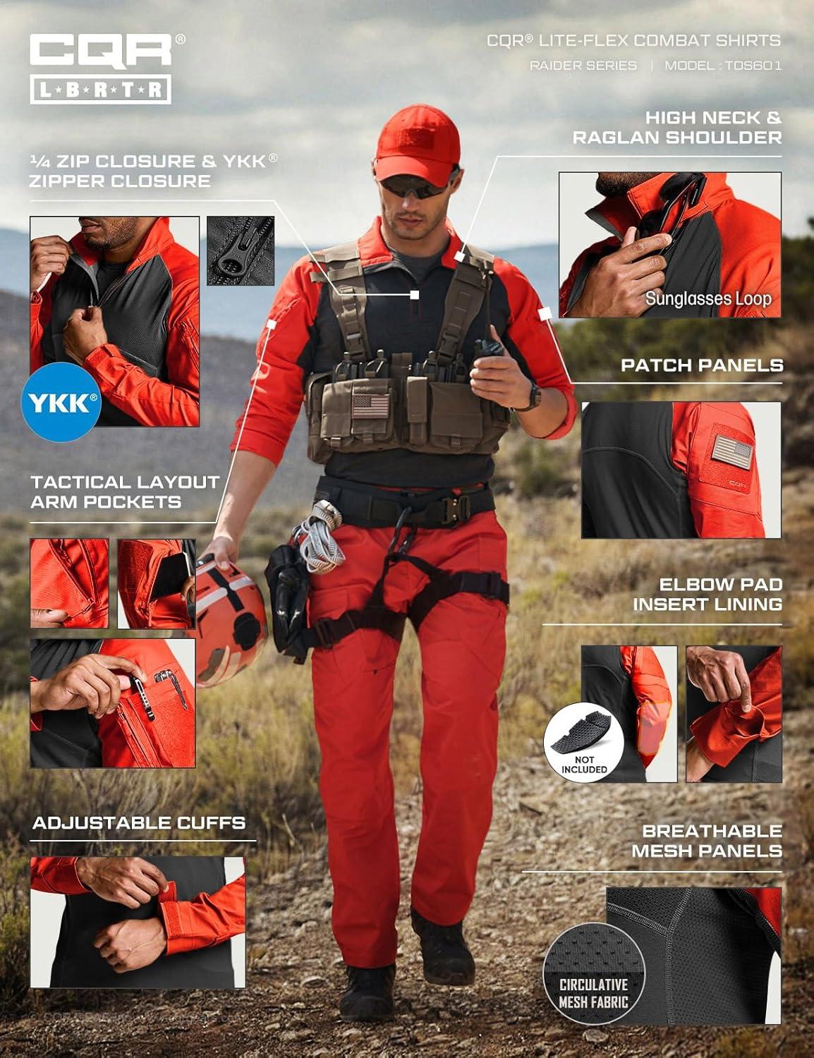 imageCQR Mens Tactical Combat Shirt 14 Zip Long Sleeve Breathable Military BDU Training Top for Shooting Hunting Range UseRaider Pro Rescue Orange