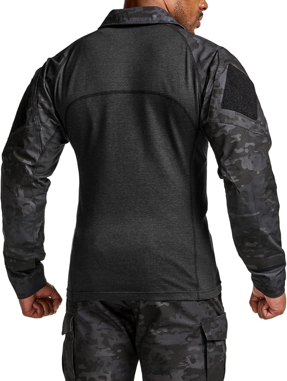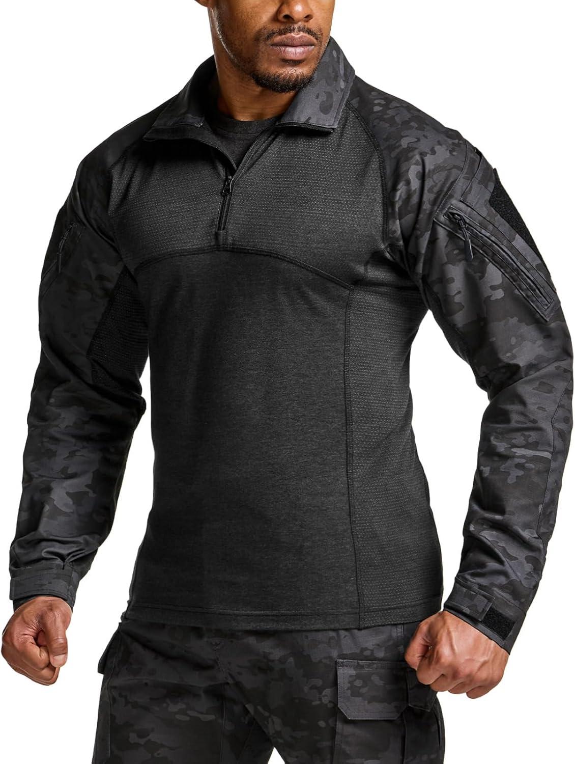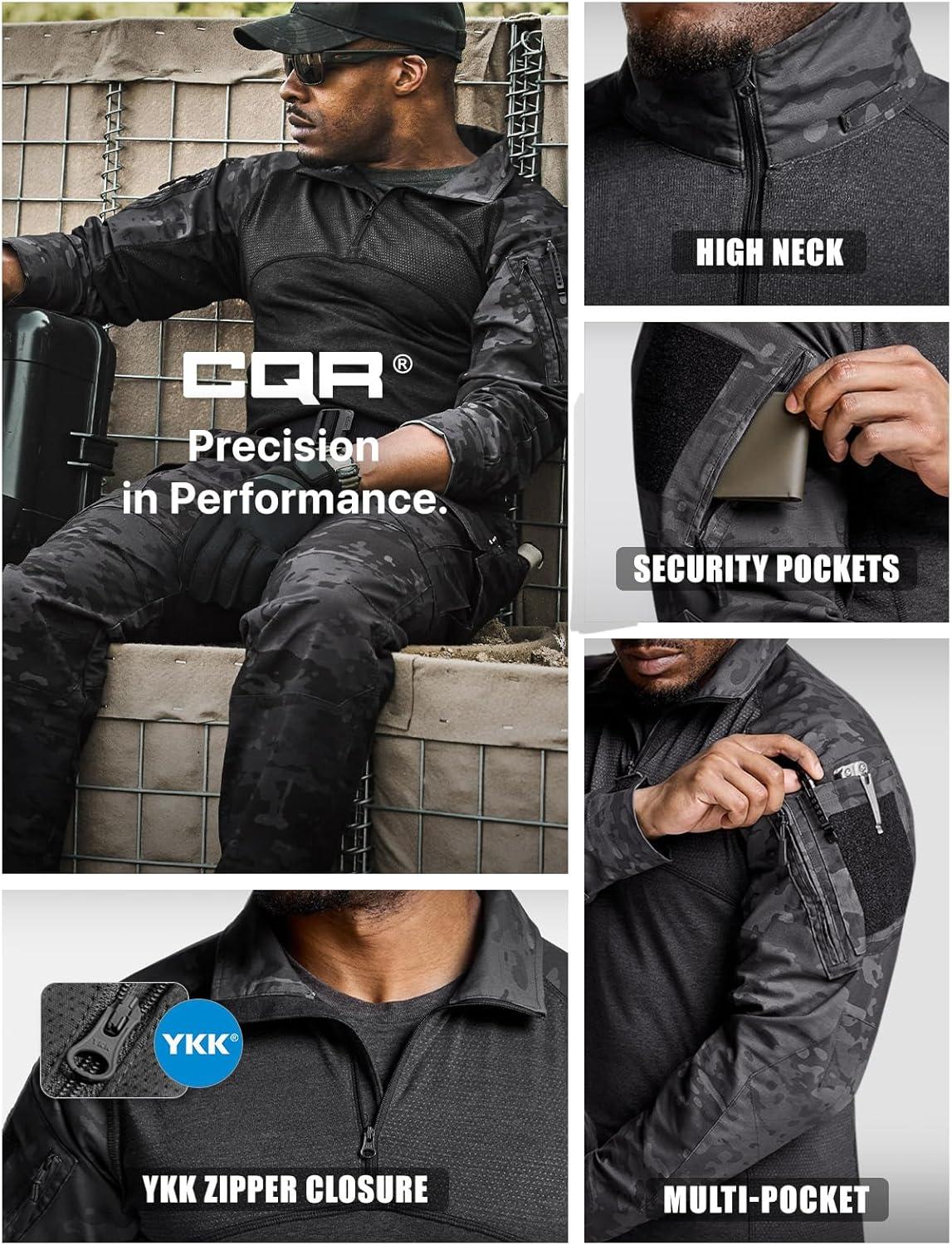 imageCQR Mens Tactical Combat Shirt 14 Zip Long Sleeve Breathable Military BDU Training Top for Shooting Hunting Range UseRaider Utility Camo Black