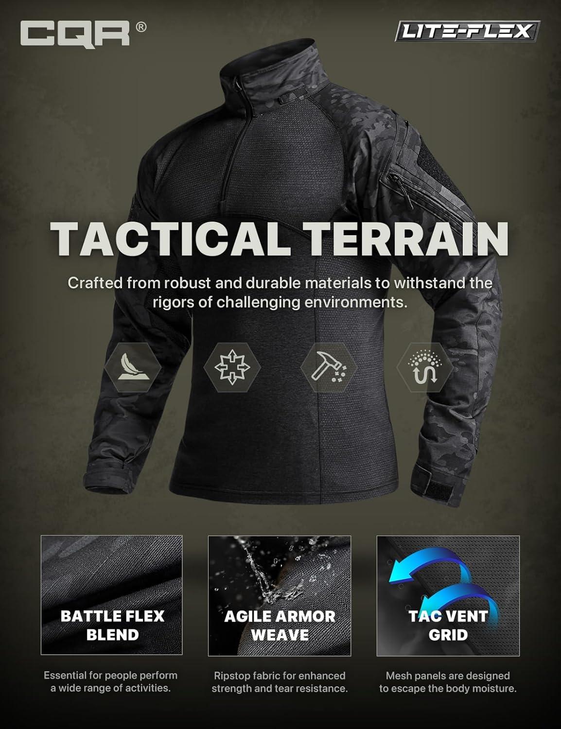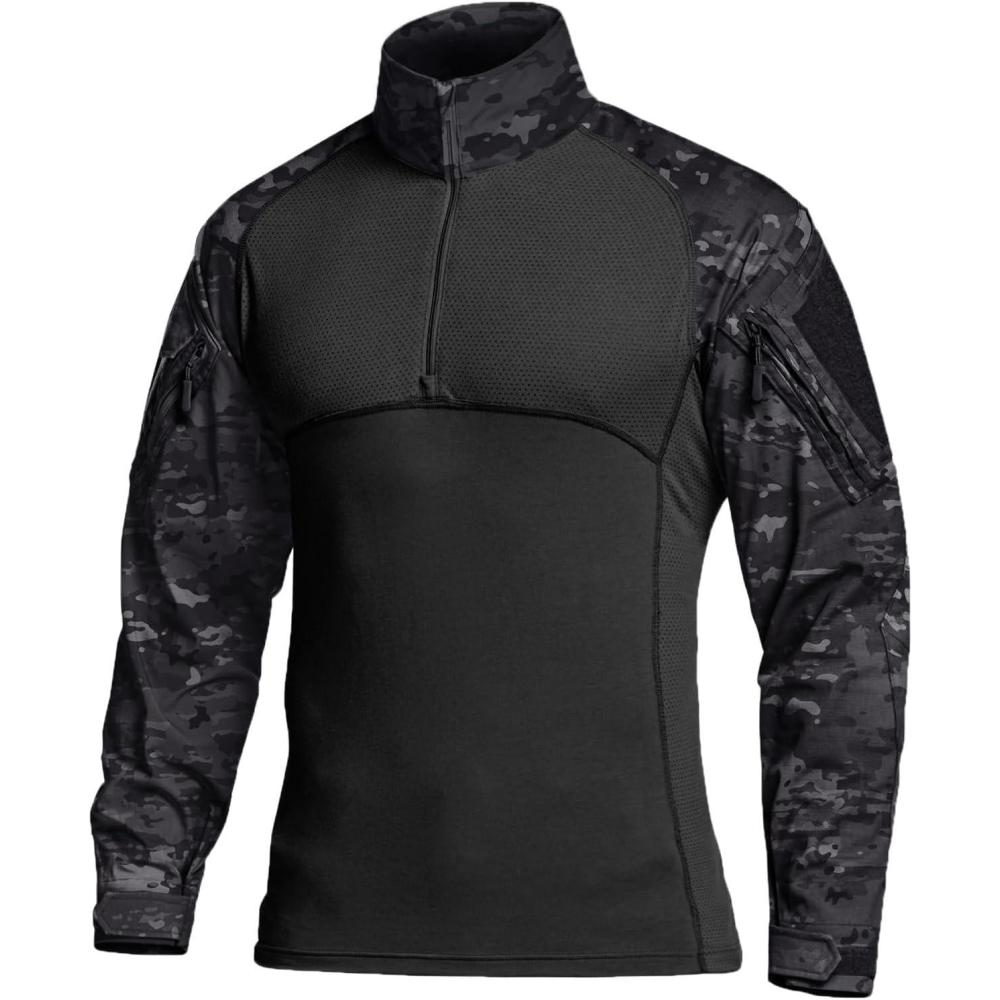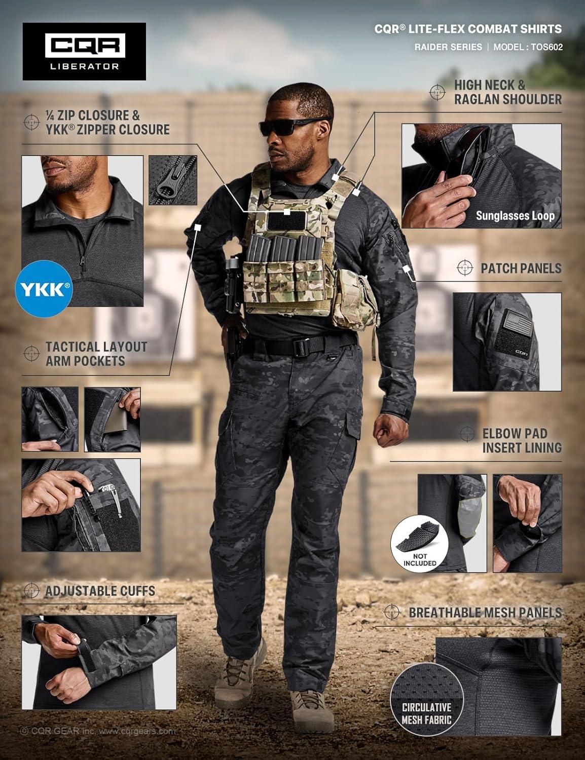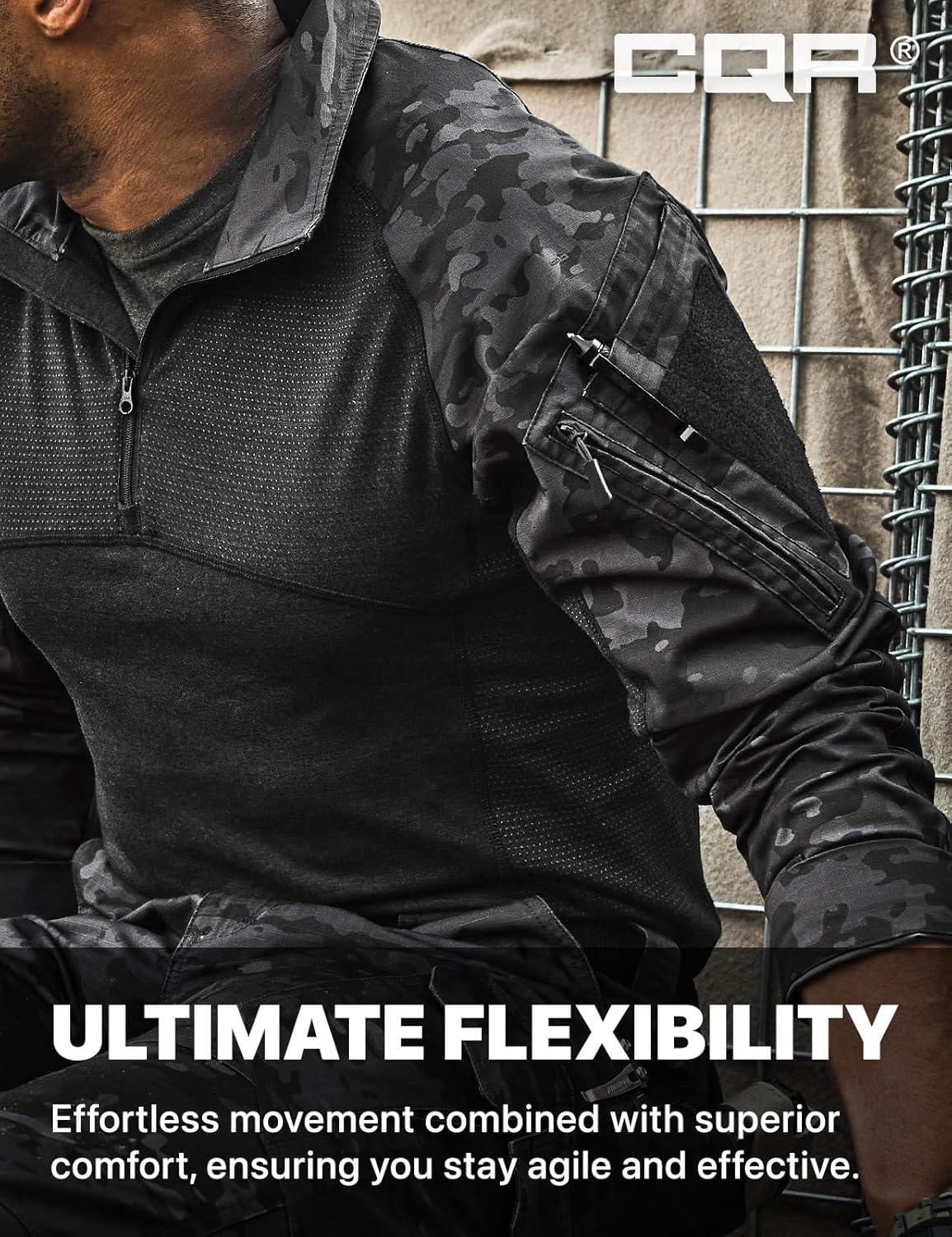 imageCQR Mens Tactical Combat Shirt 14 Zip Long Sleeve Breathable Military BDU Training Top for Shooting Hunting Range UseRaider Utility Camo Black