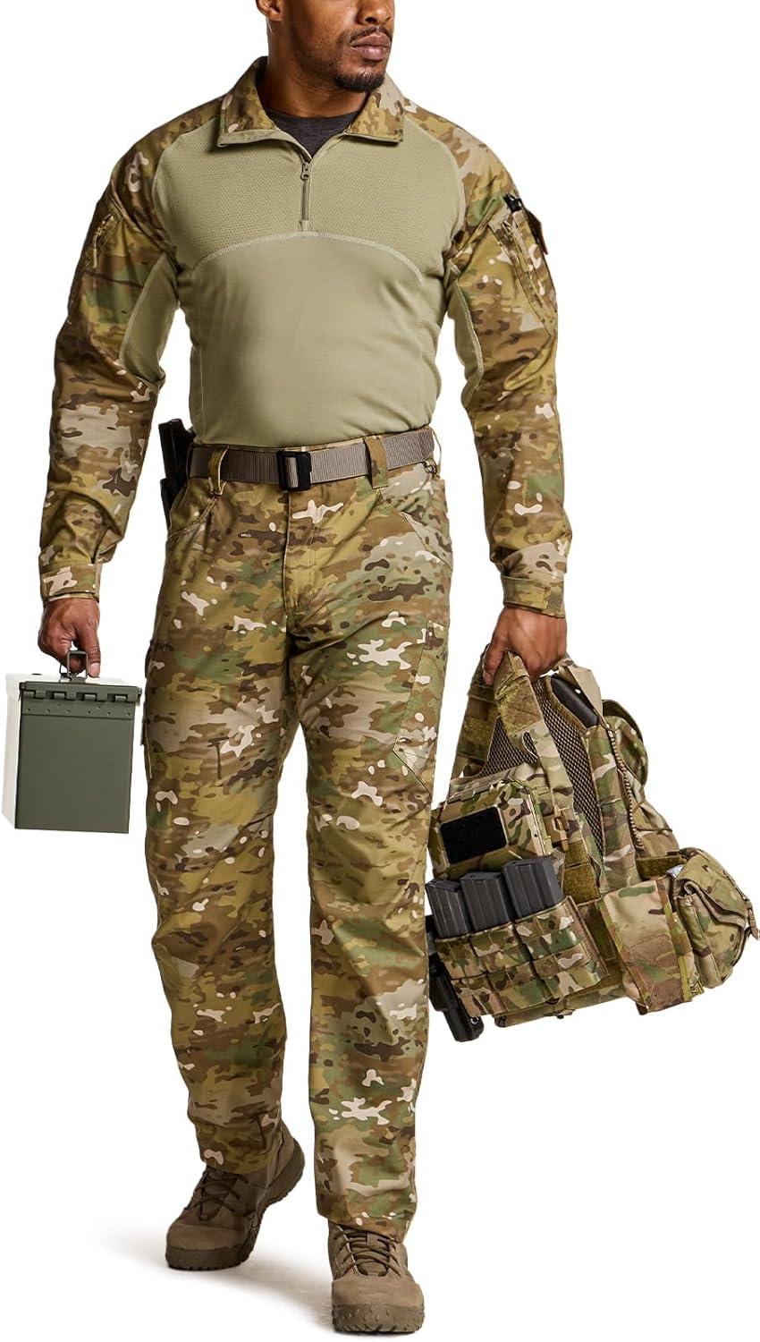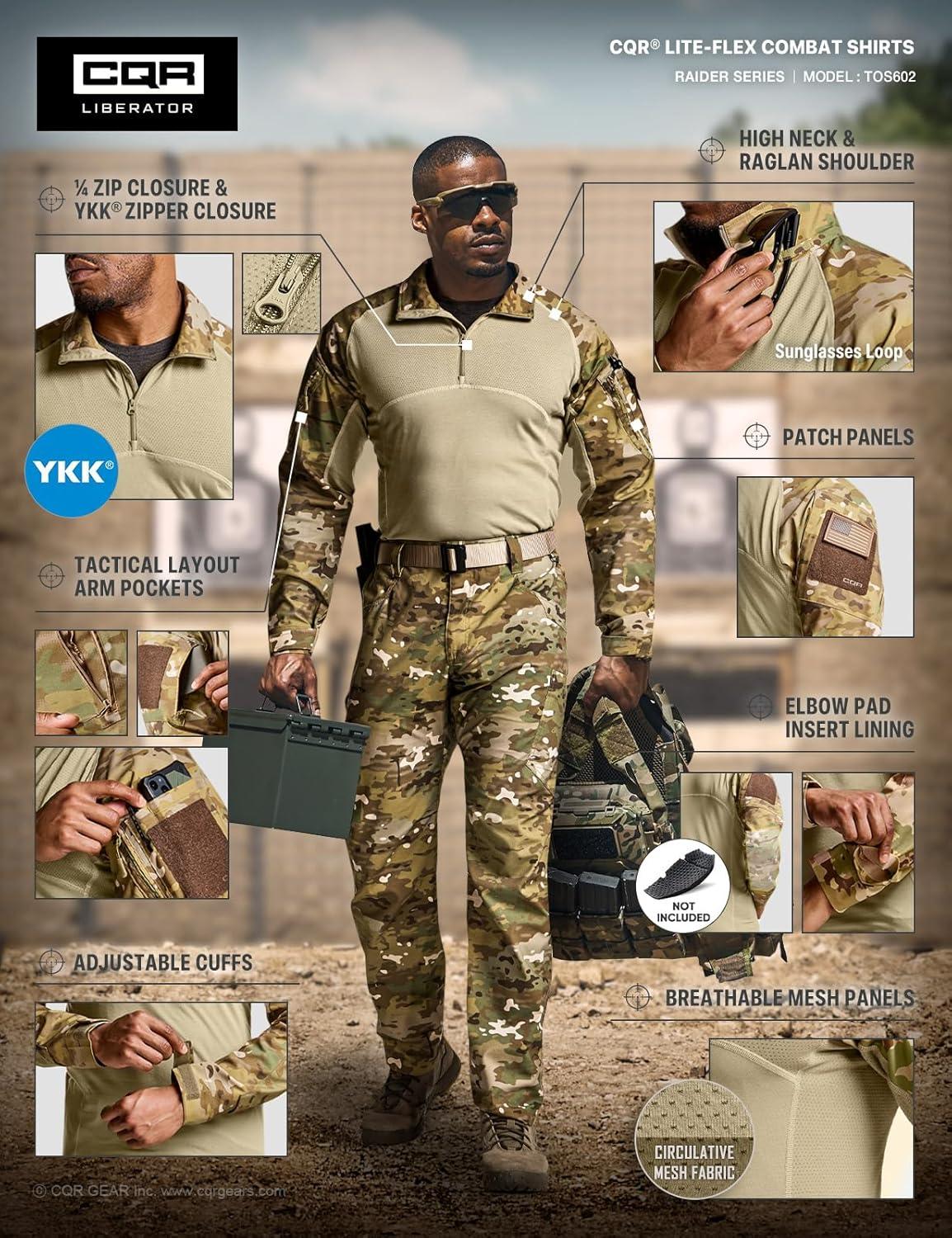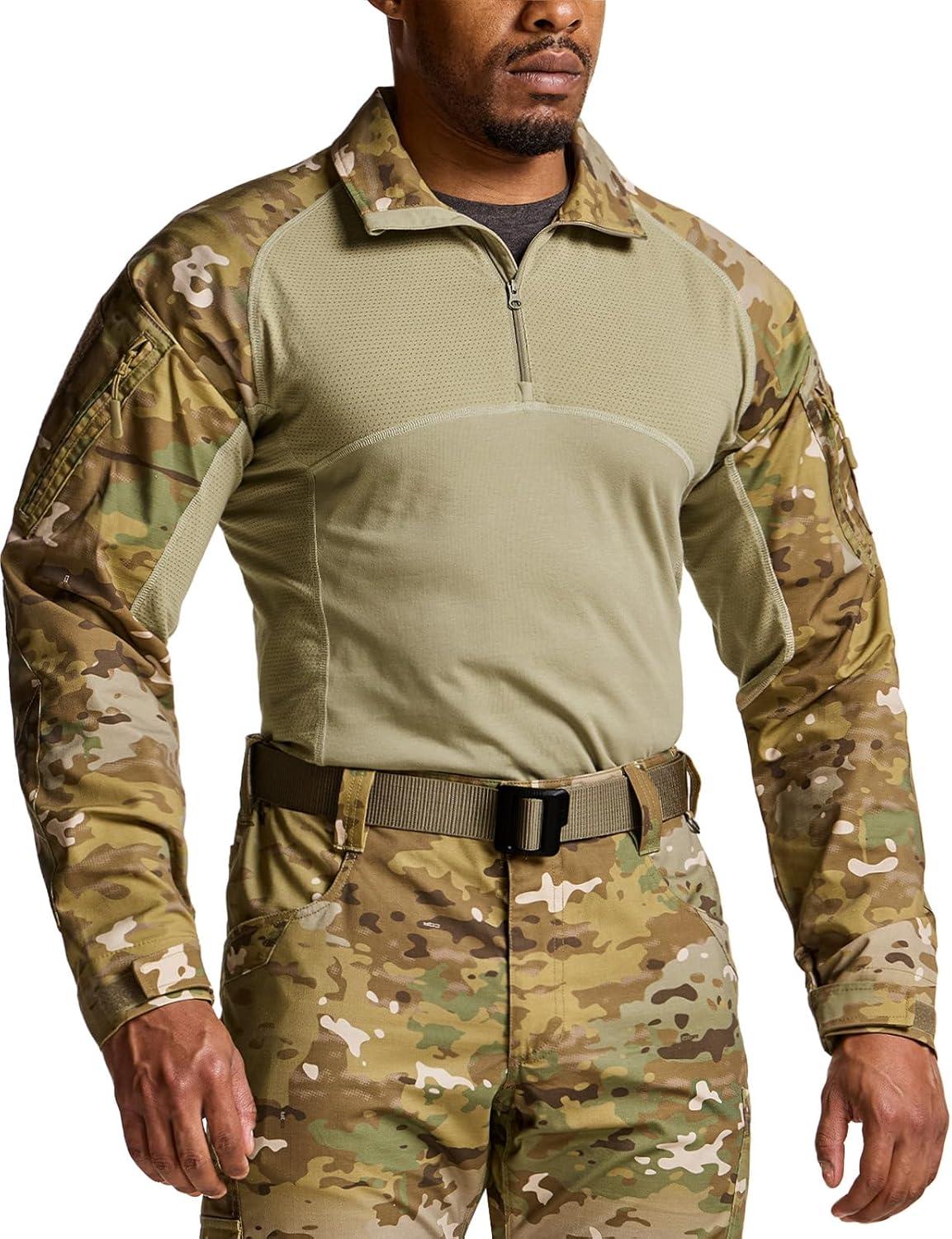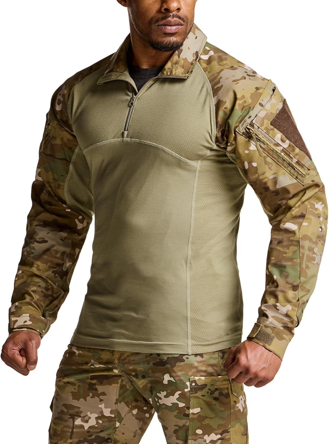 imageCQR Mens Tactical Combat Shirt 14 Zip Long Sleeve Breathable Military BDU Training Top for Shooting Hunting Range UseRaider Utility Camo