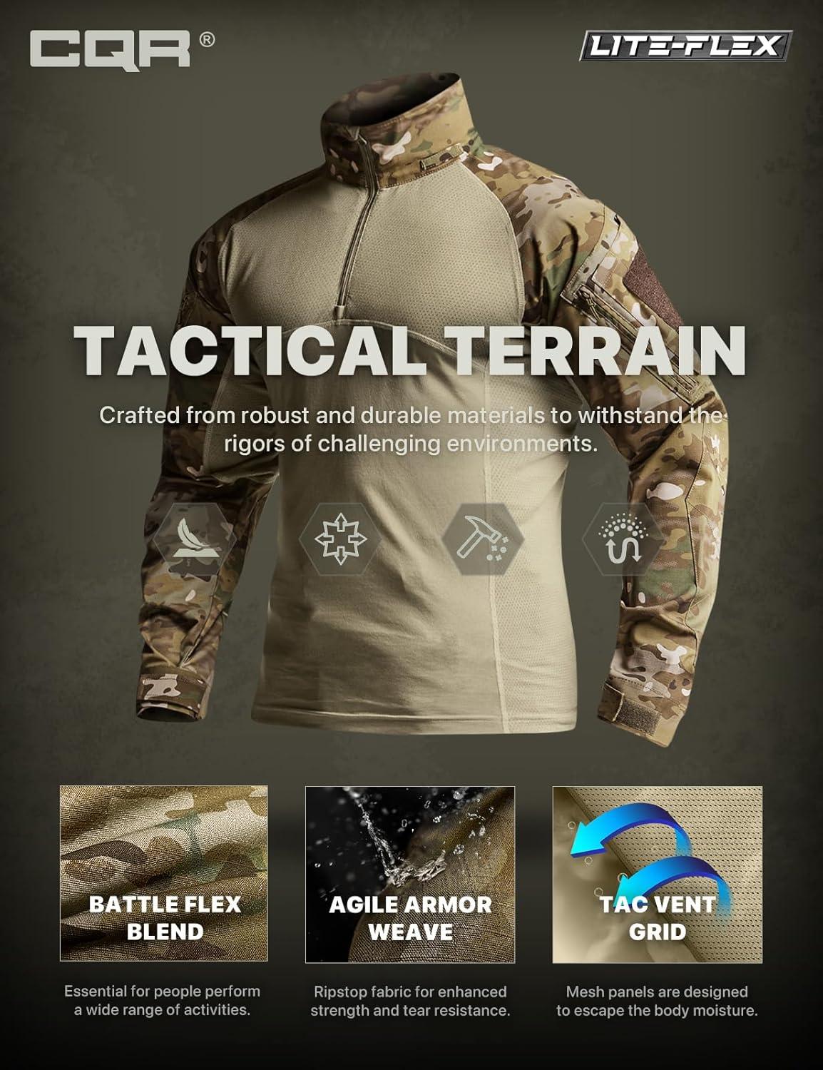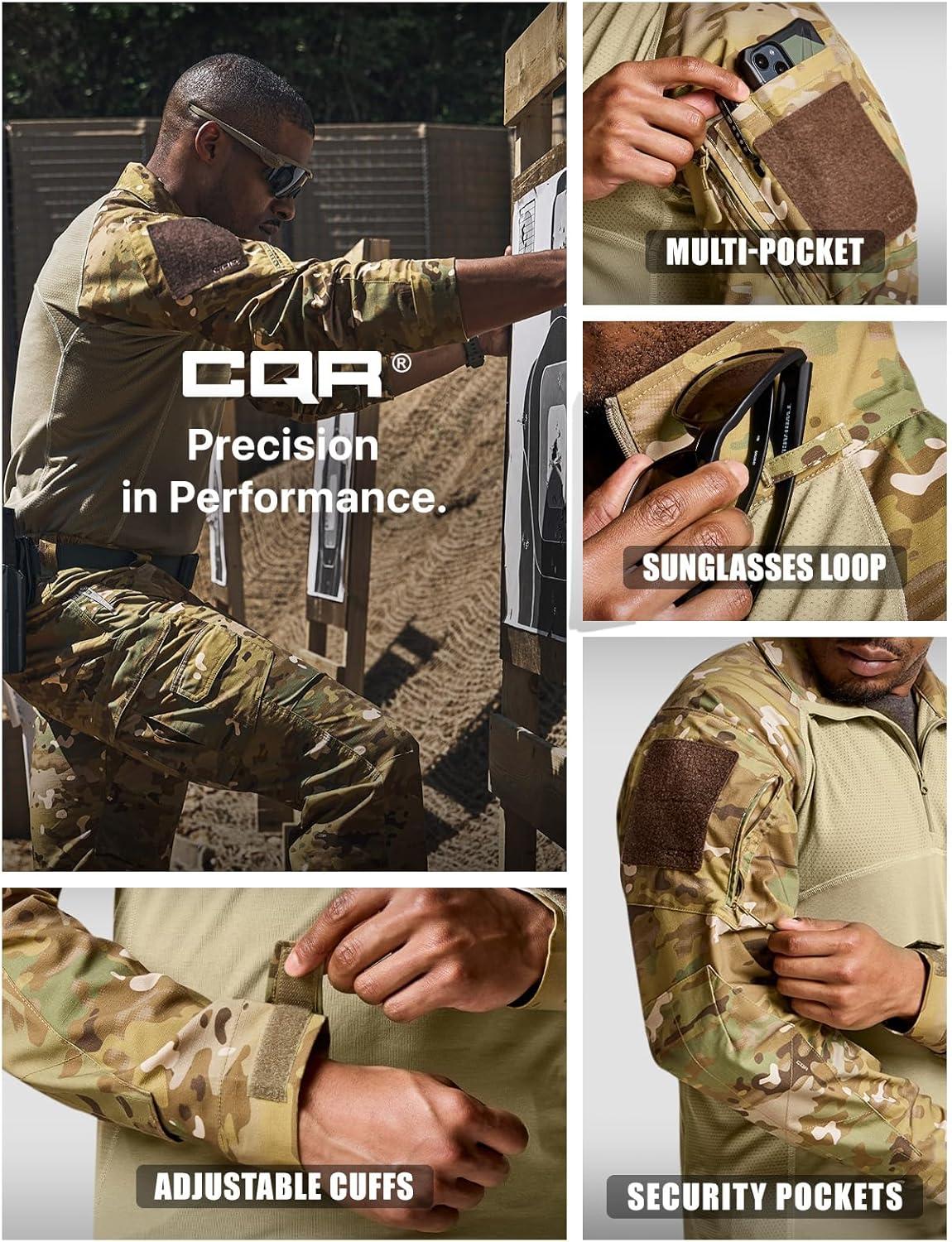CQR Men's Tactical Combat Shirt, 1/4 Zip Long Sleeve Breathable Military BDU Training Top for Shooting, Hunting, Range Use(Raider Utility Camo)