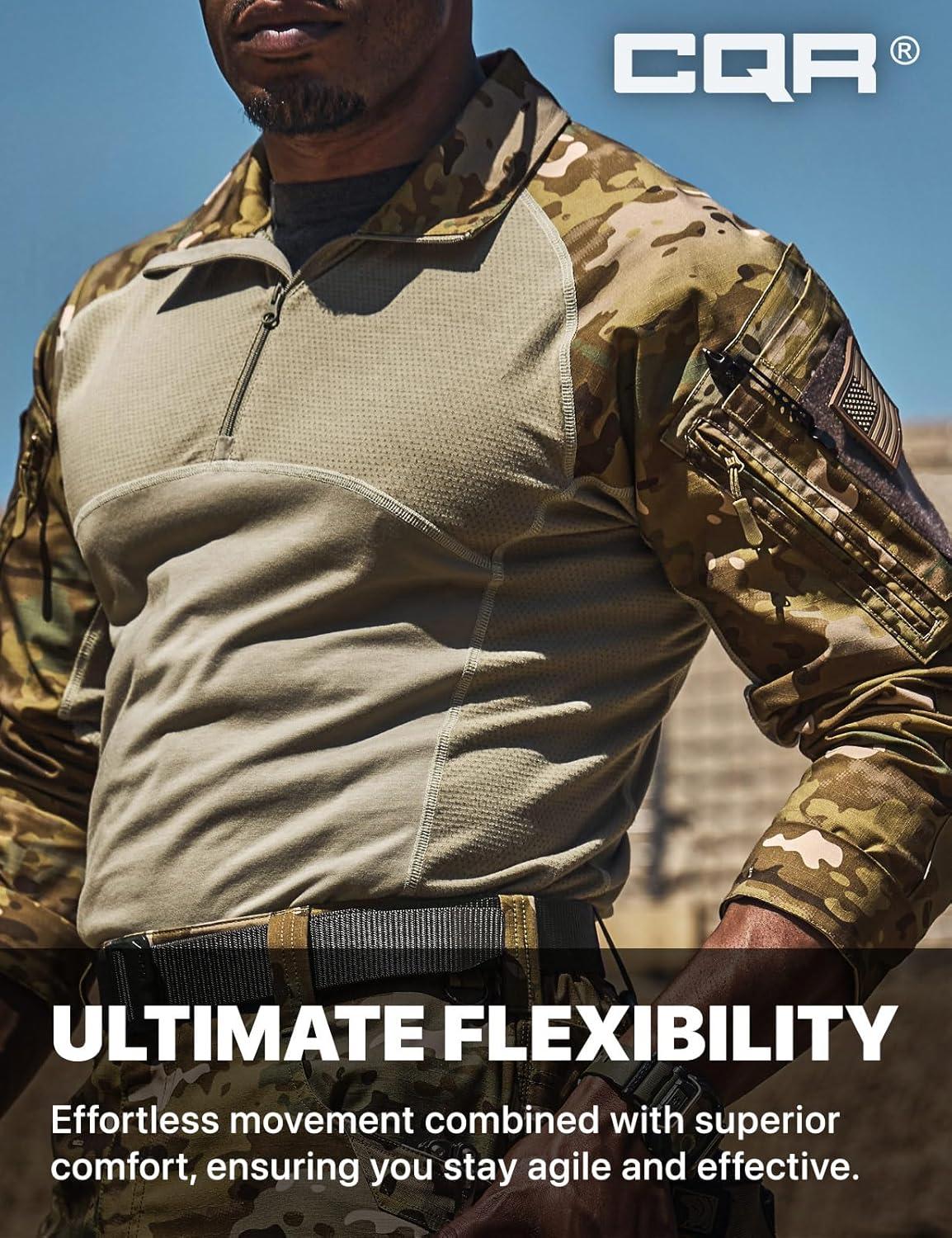 CQR Men’s Tactical Combat Shirt, 1/4 Zip Long Sleeve Breathable Military BDU Training Top for Shooting, Hunting, Range Use(Raider Utility Camo)