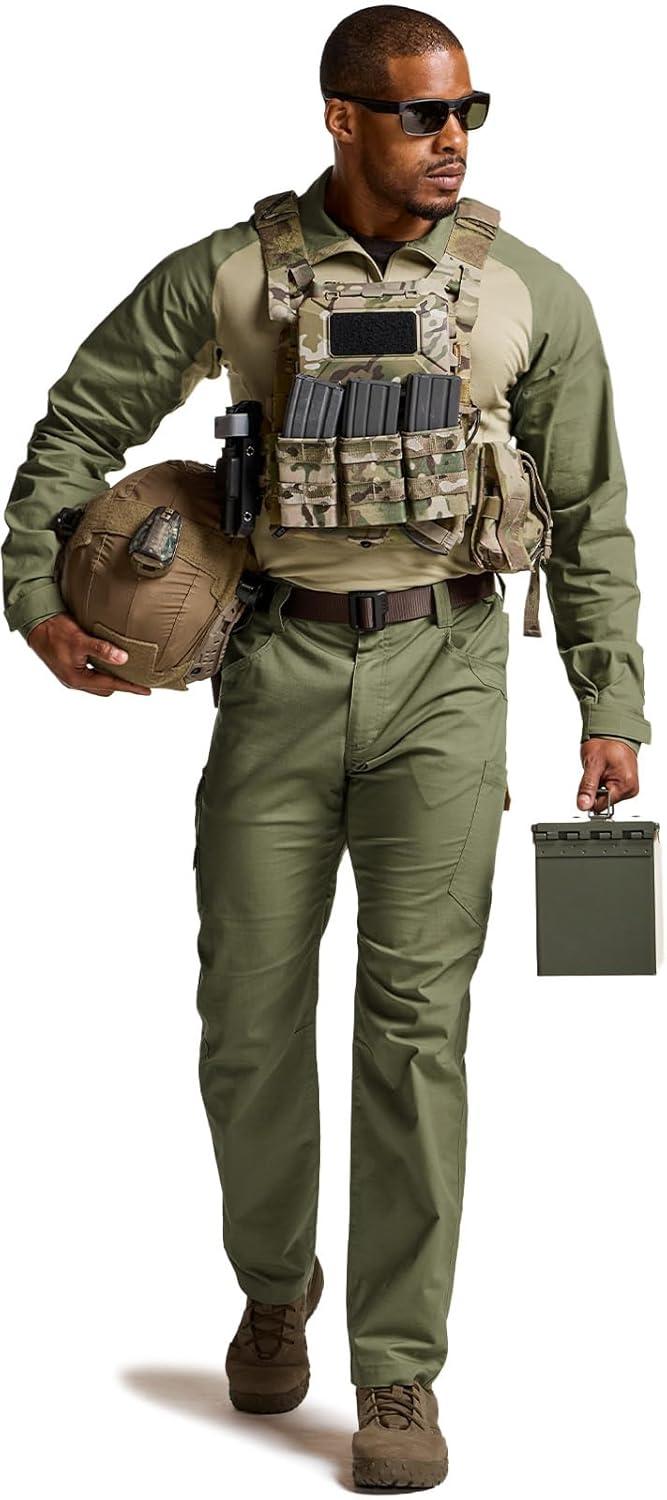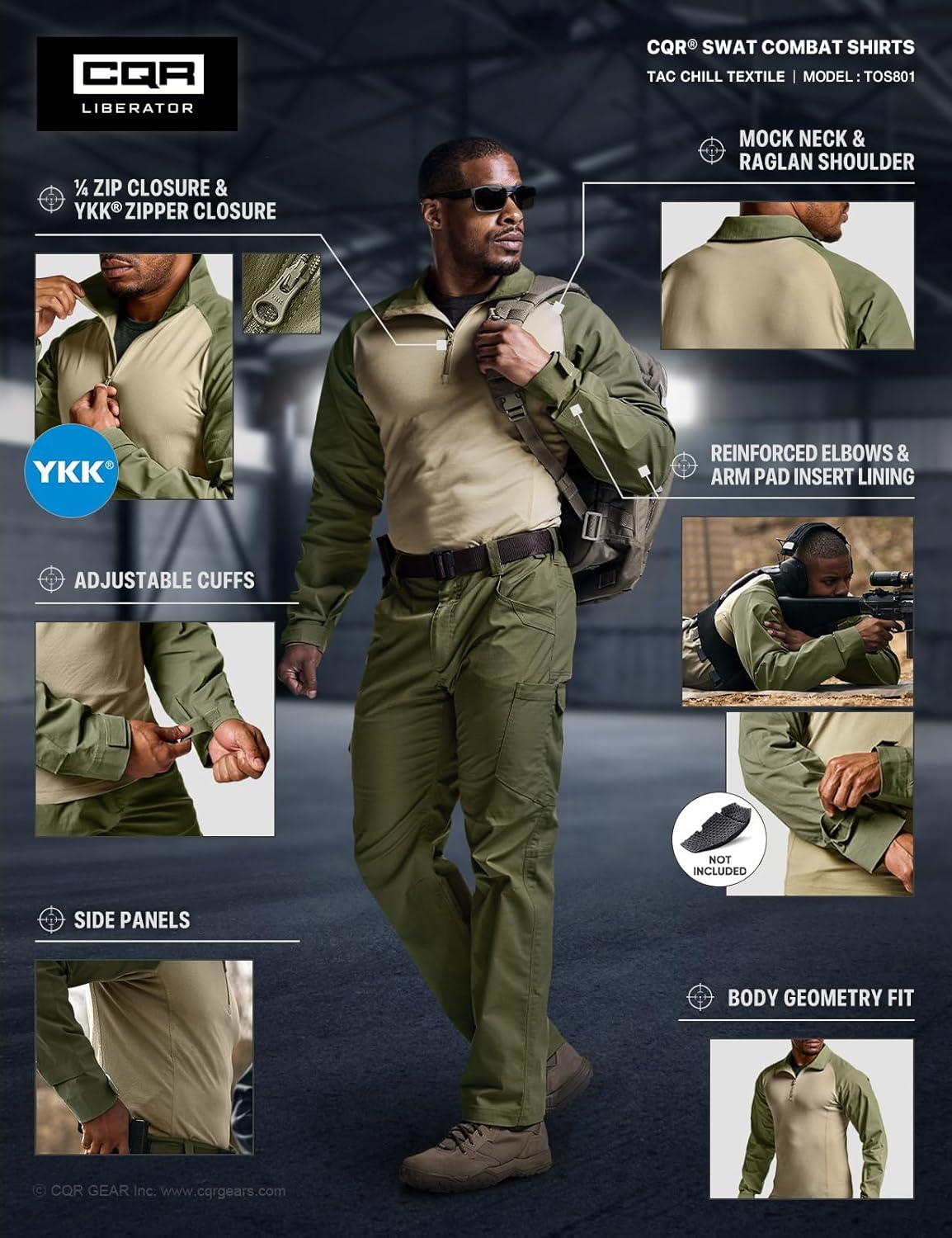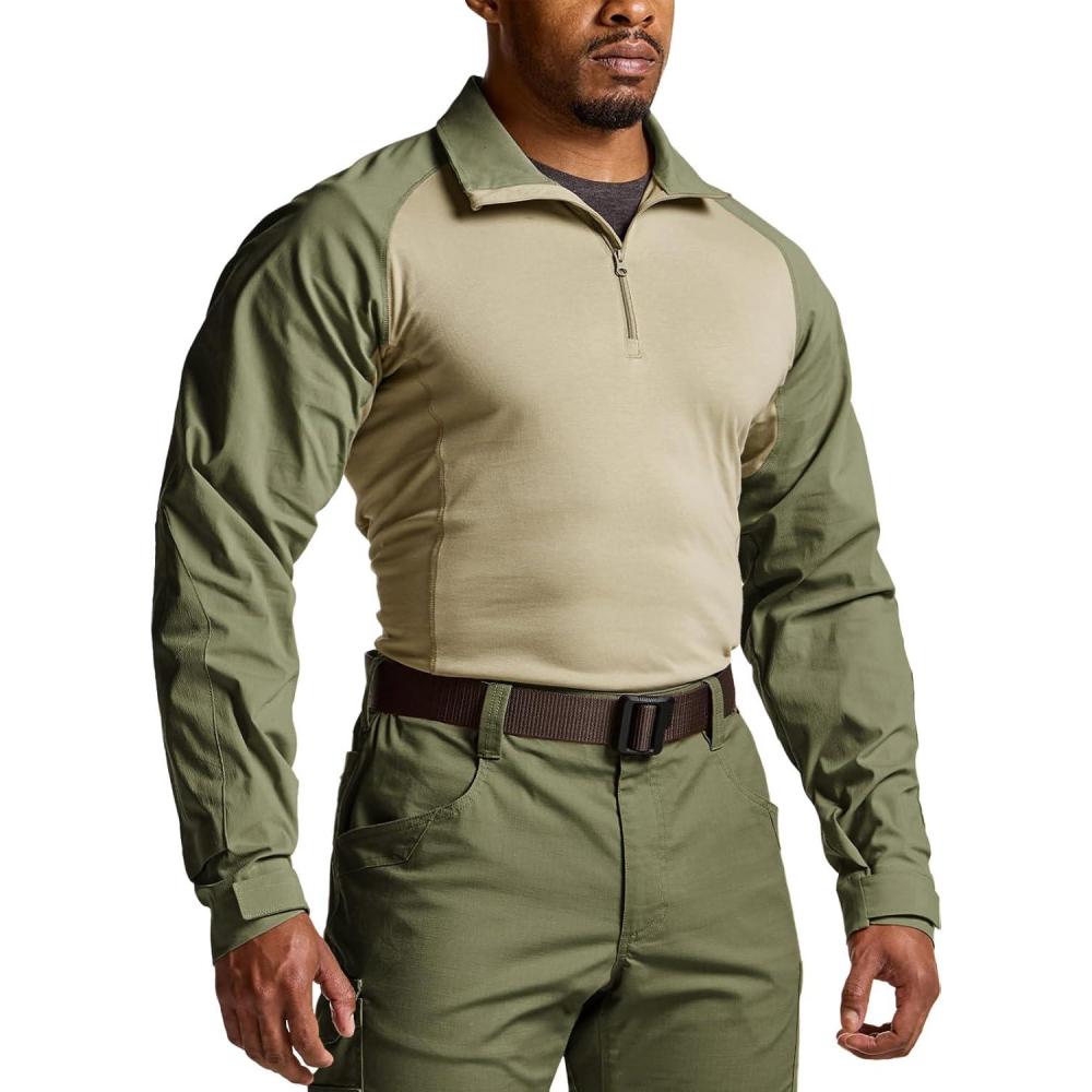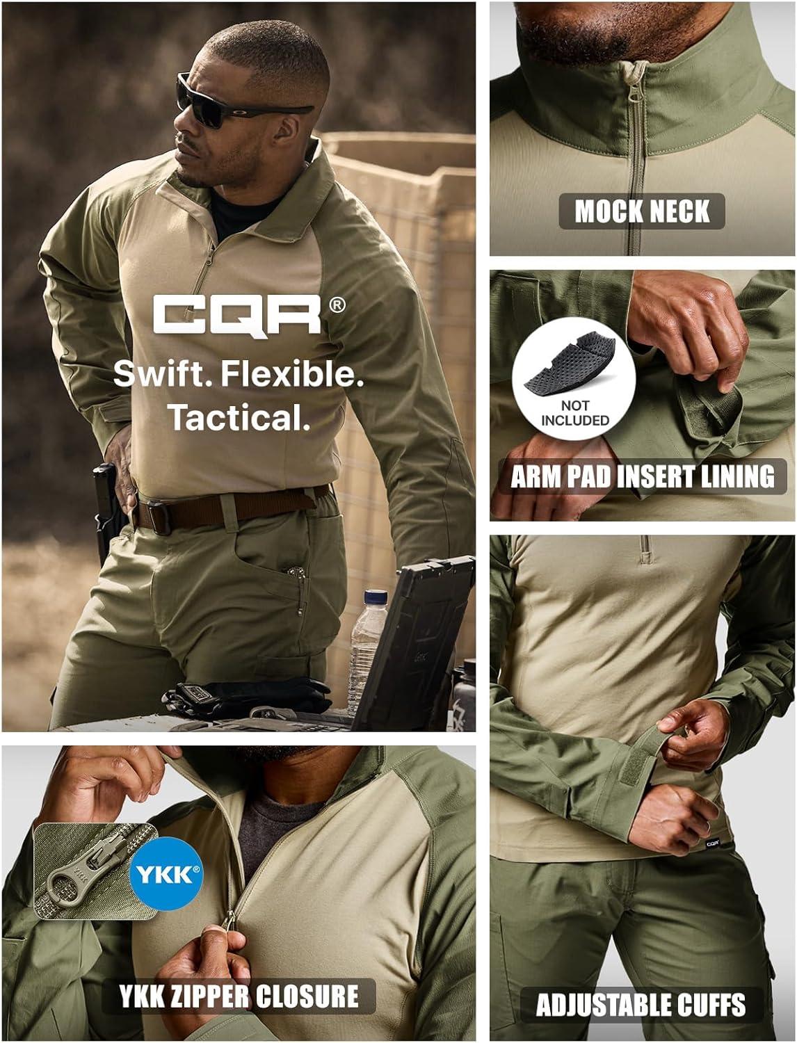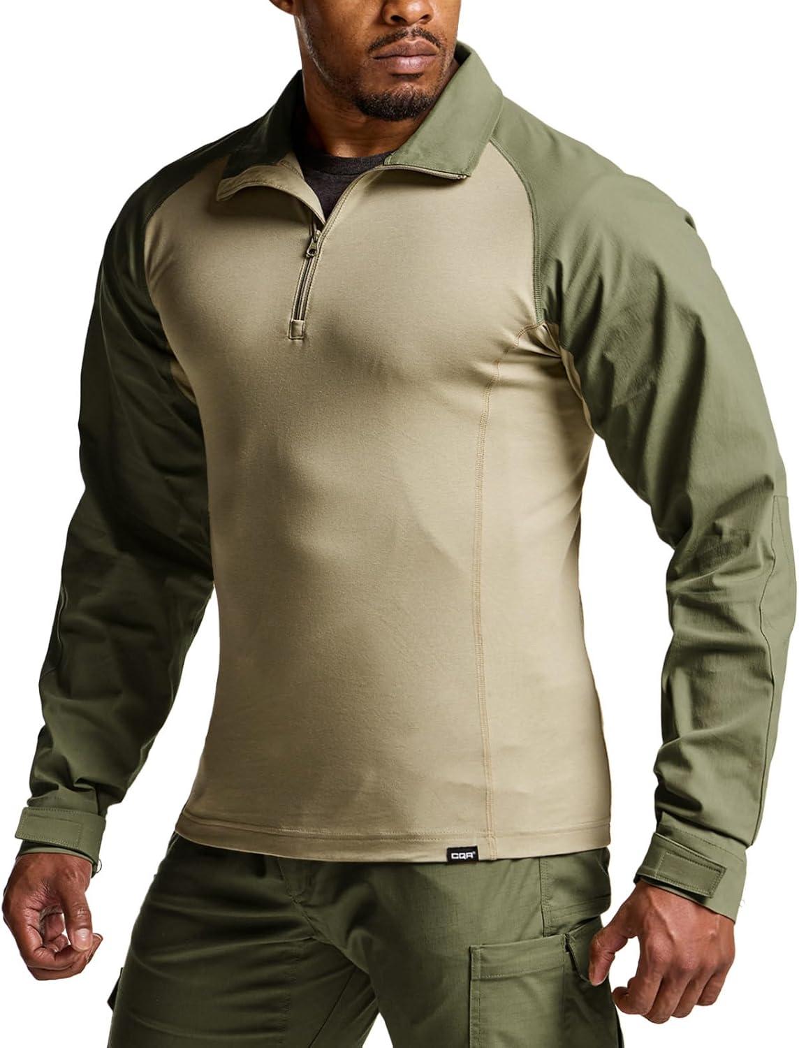 CQR Men’s Tactical Combat Shirt, 1/4 Zip Long Sleeve Breathable Military BDU Training Top for Shooting, Hunting, Range Use(Tac Chill Soil Green)