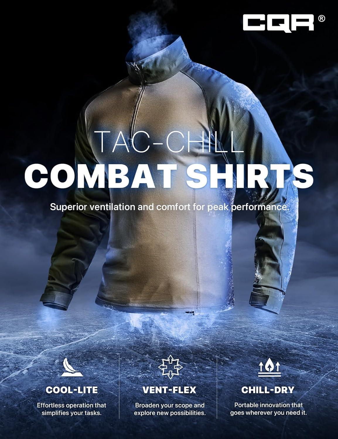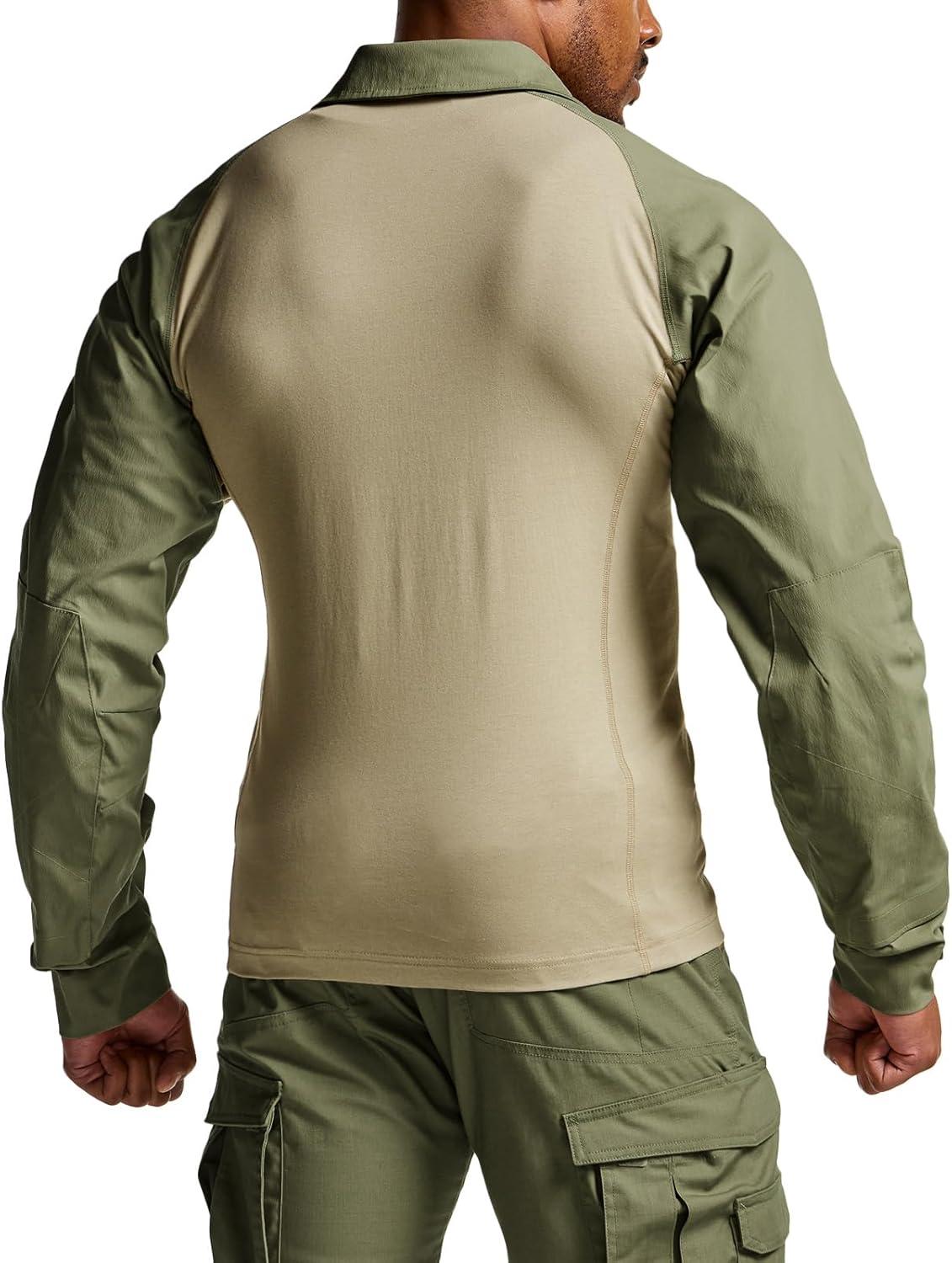 CQR Men's Tactical Combat Shirt, 1/4 Zip Long Sleeve Breathable Military BDU Training Top for Shooting, Hunting, Range Use(Tac Chill Soil Green)