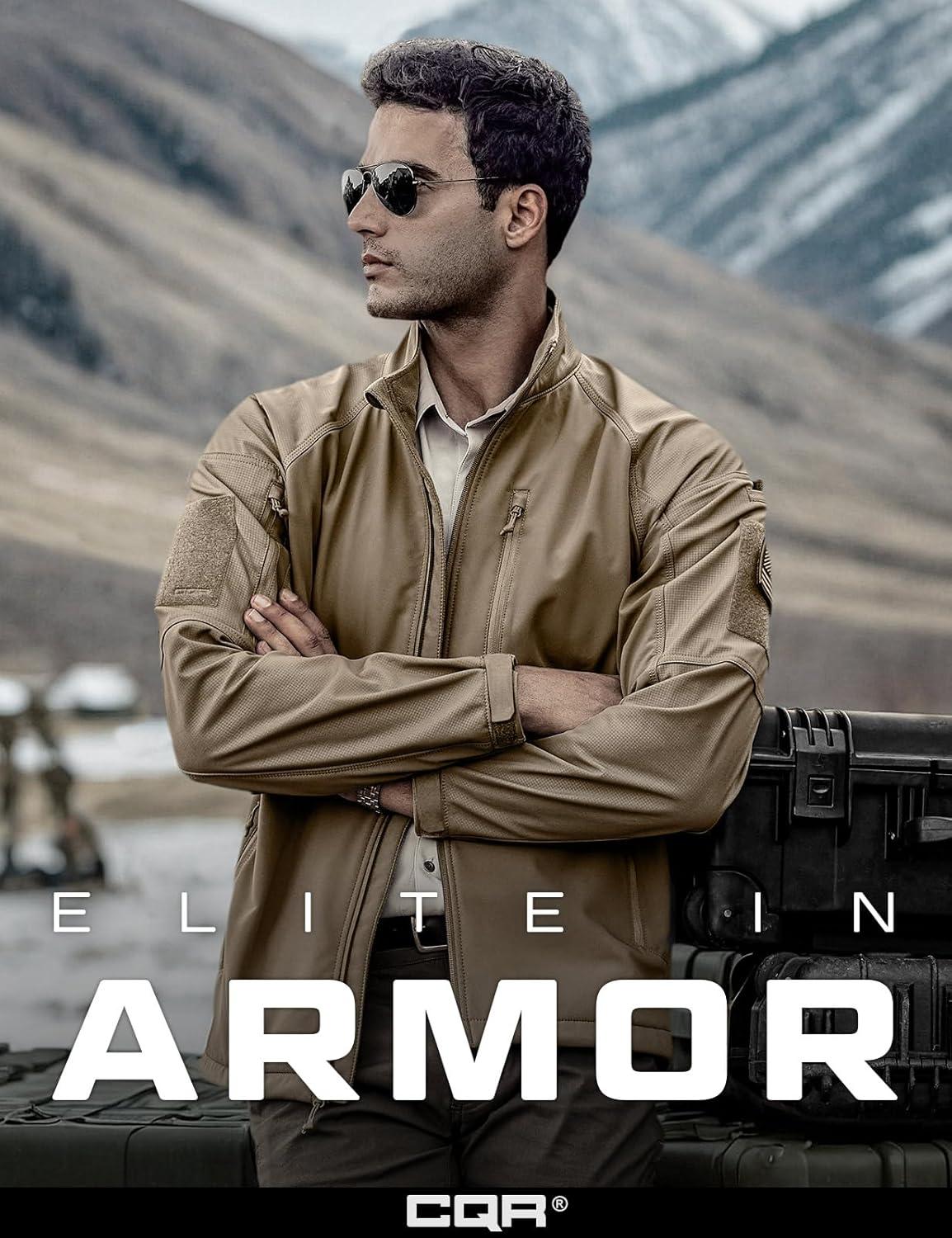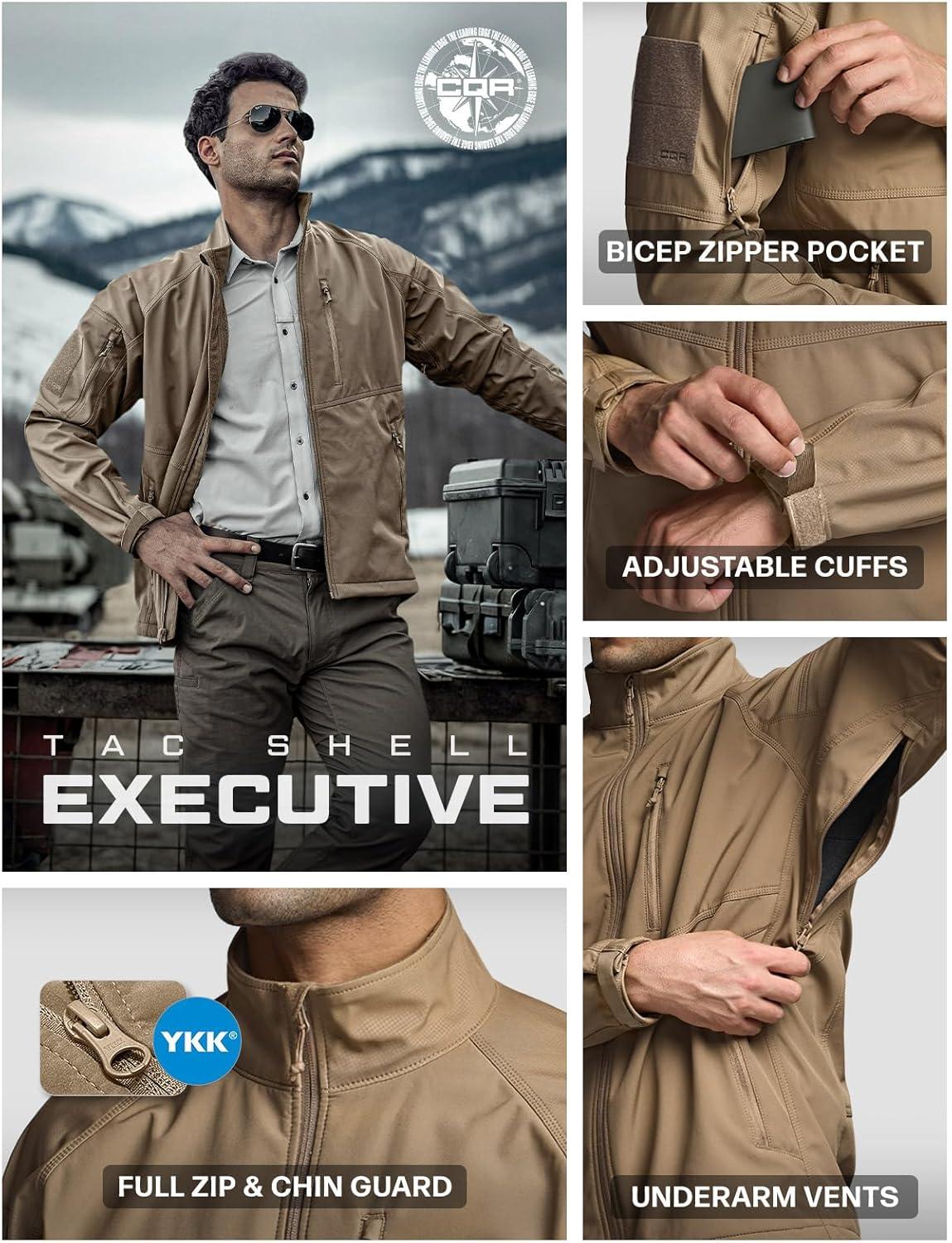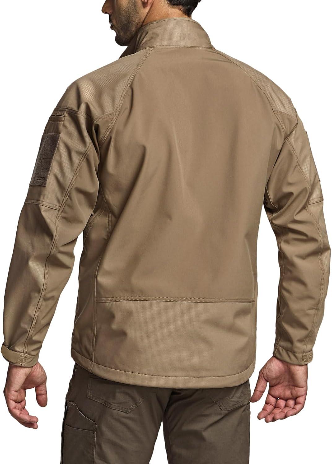 imageCQR Mens Water Resistant Tactical Softshell Jacket Fleece Lined High Neck Full Zip Wind Rain Hiking Hunting Winter OutdoorOperator X Coyote