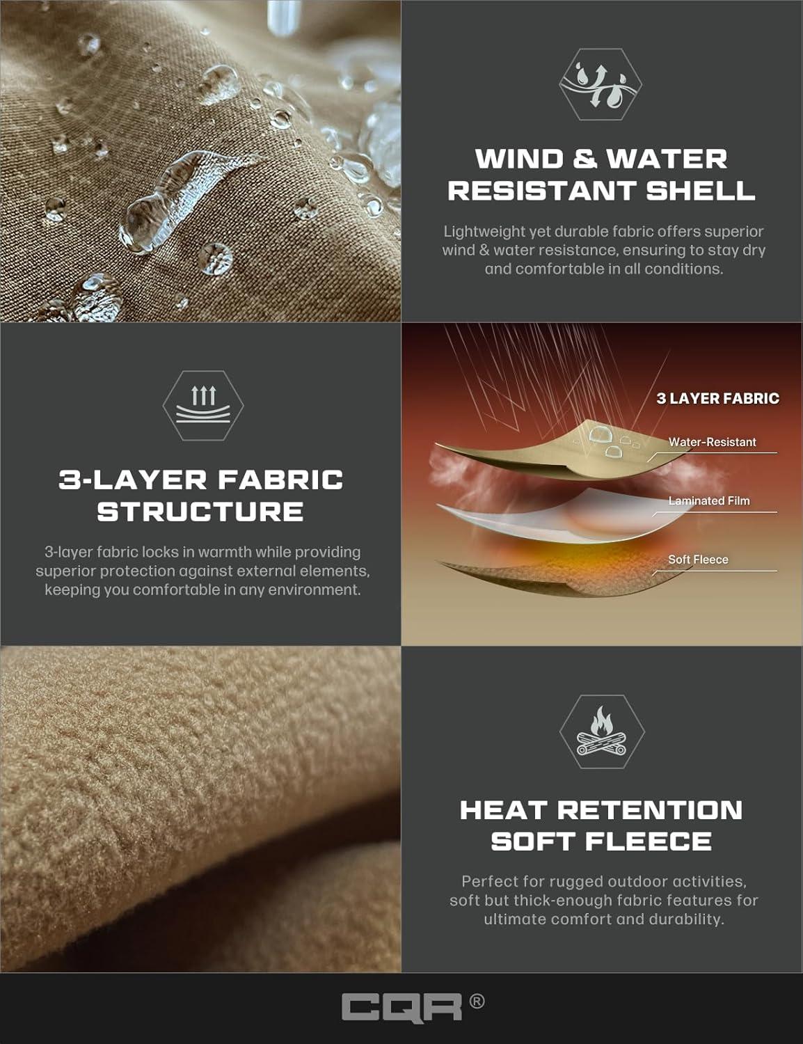 CQR Men's Water Resistant Tactical Softshell Jacket, Fleece Lined High Neck Full Zip, Wind Rain Hiking Hunting Winter Outdoor(Operator X Coyote)