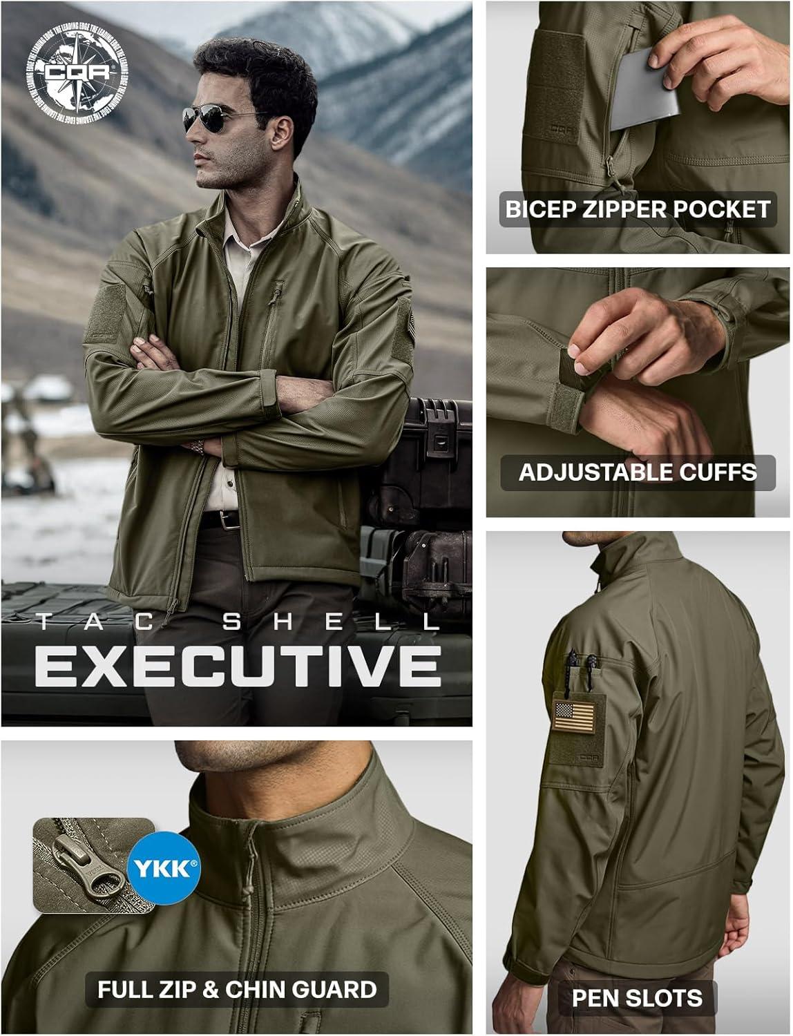 CQR Men's Water Resistant Tactical Softshell Jacket, Fleece Lined High Neck Full Zip, Wind Rain Hiking Hunting Winter Outdoor(Operator X Soil Green)