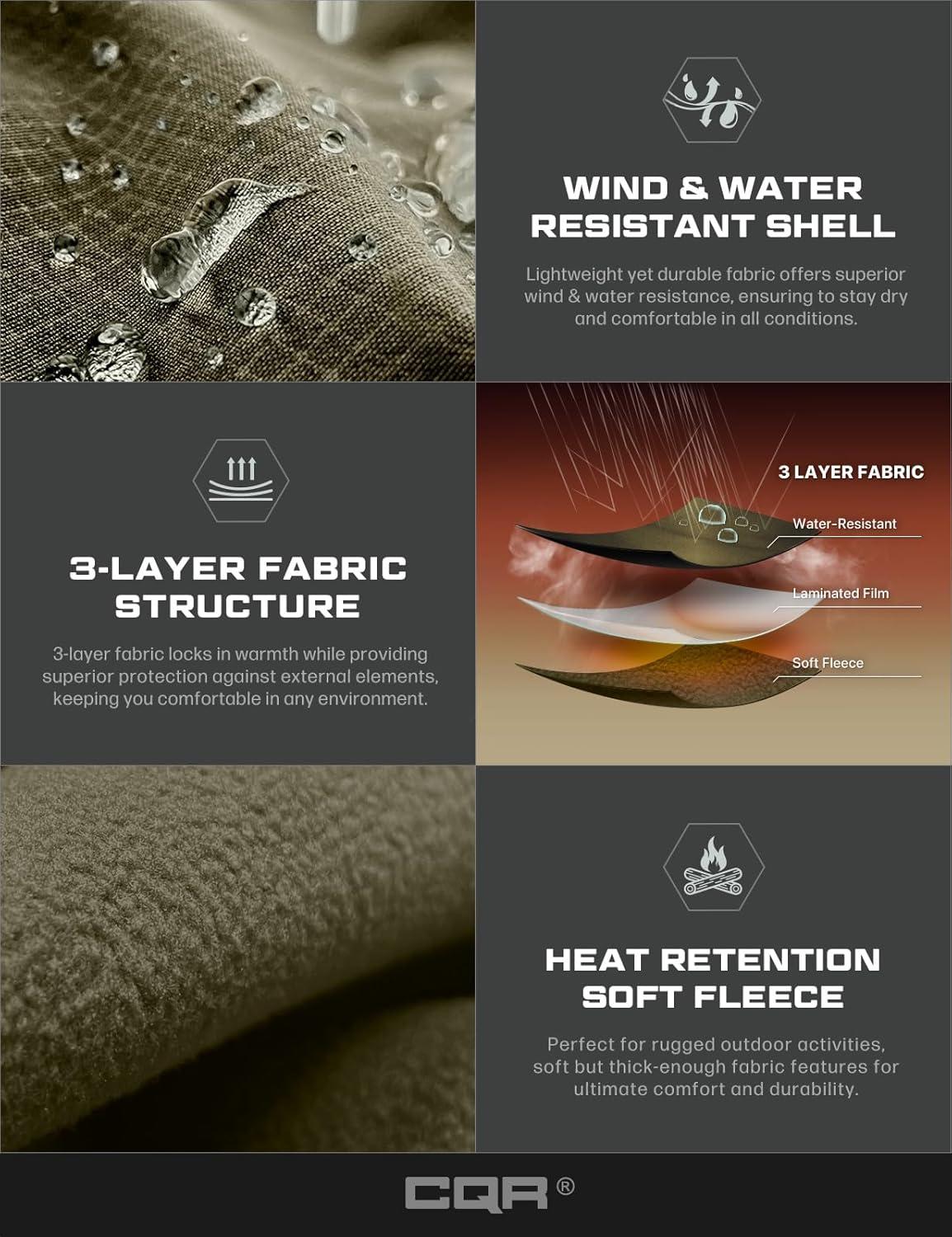 CQR Men’s Water Resistant Tactical Softshell Jacket, Fleece Lined High Neck Full Zip, Wind Rain Hiking Hunting Winter Outdoor(Operator X Soil Green)