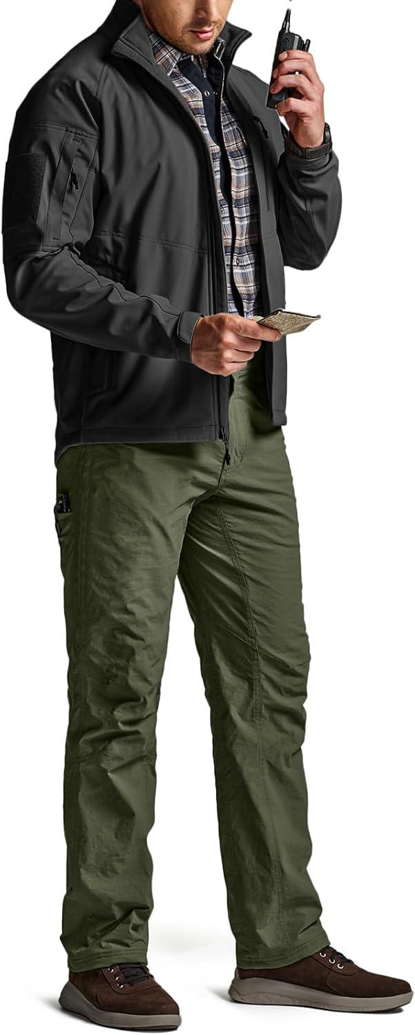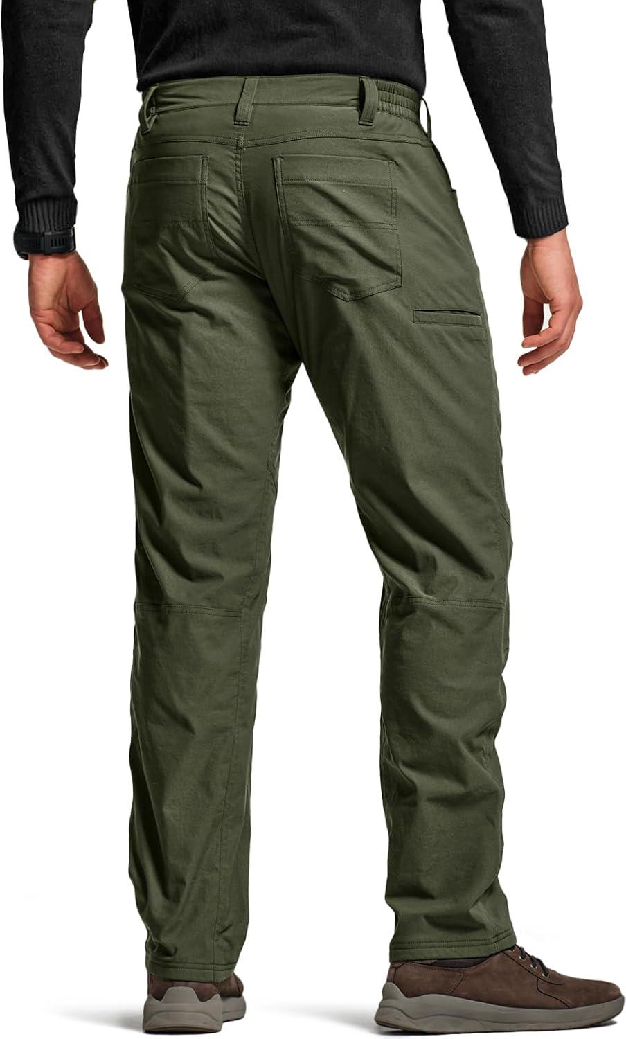 CQR Men’s Winter Fleece Lined Pants, Water-Resistant Outdoor Stretch Work Pants, Windproof Casual Pants with Pockets(Brume Storm Green)