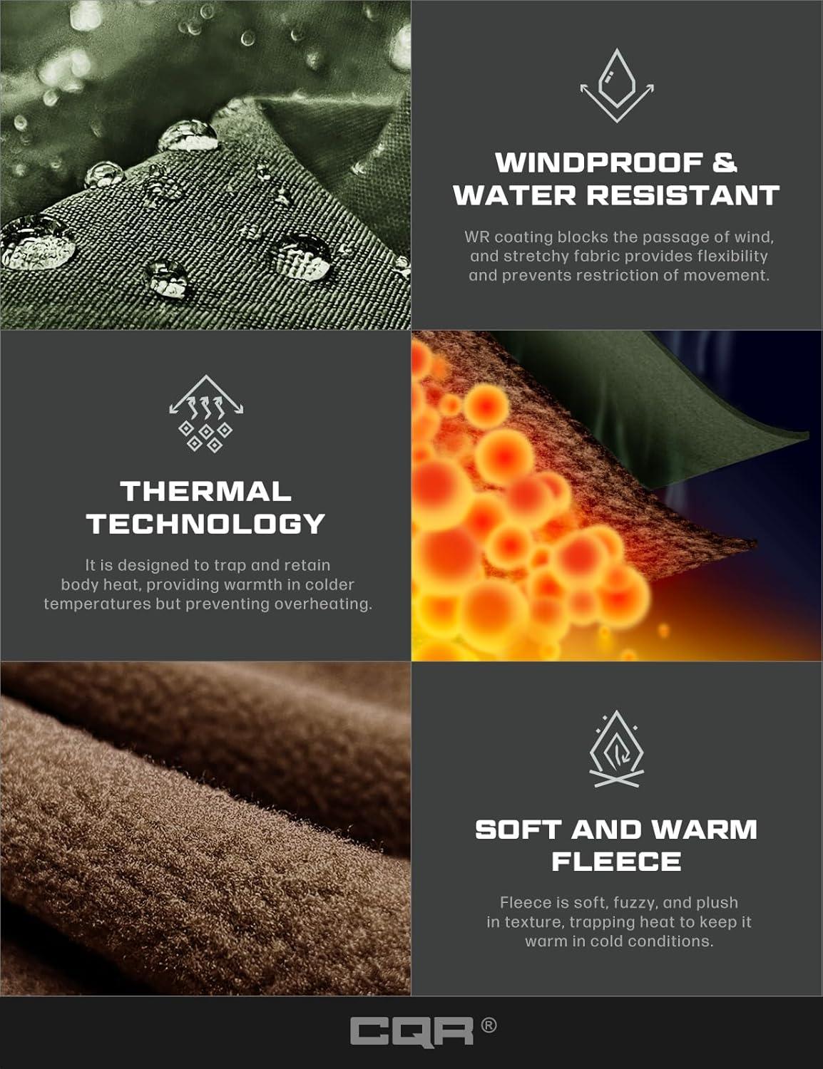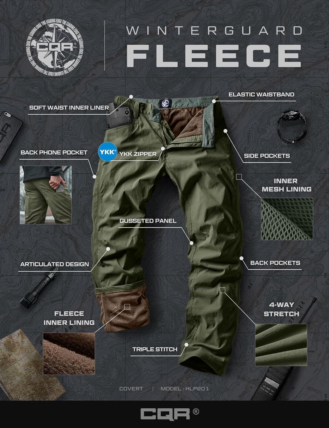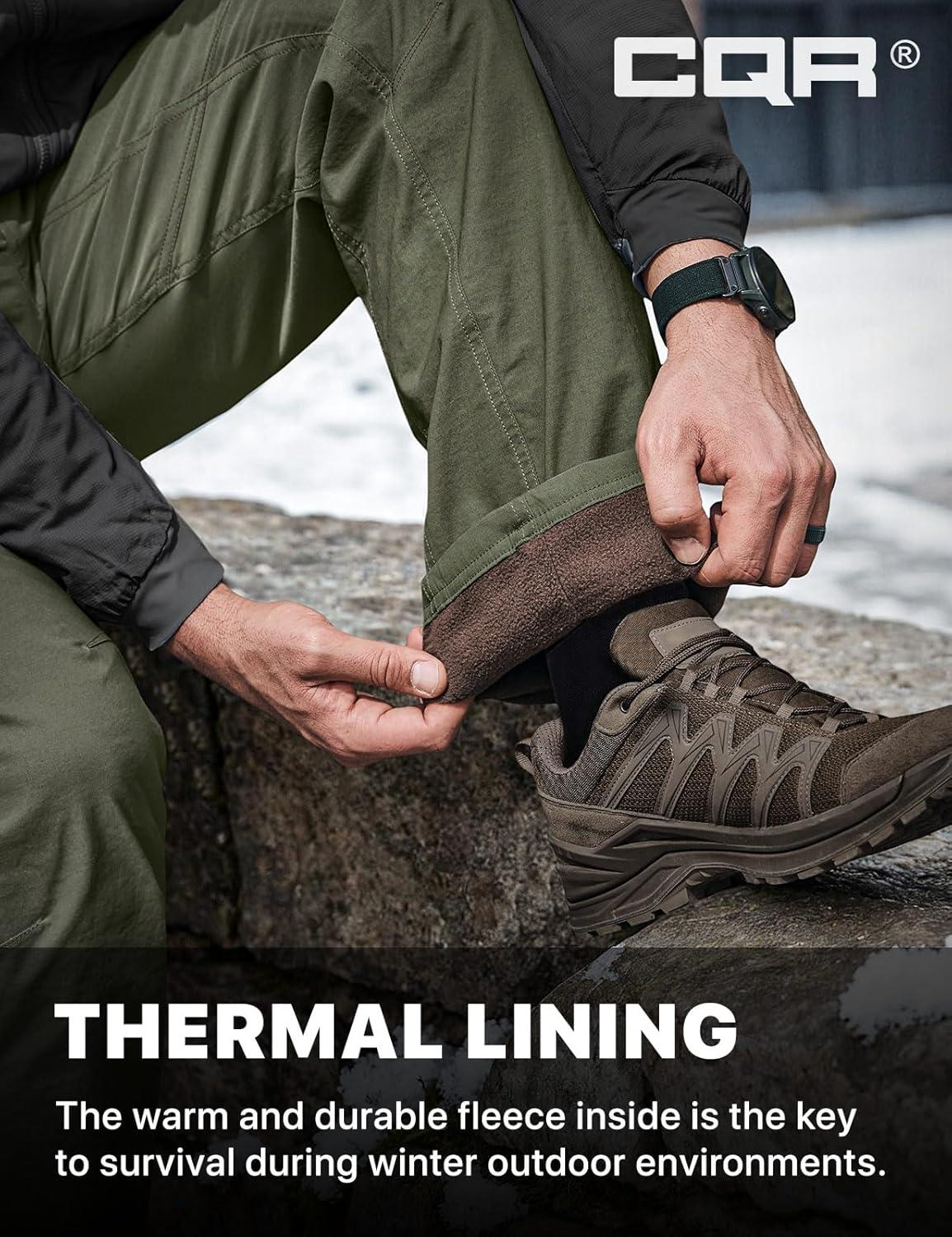 imageCQR Mens Winter Fleece Lined Pants WaterResistant Outdoor Stretch Work Pants Windproof Casual Pants with PocketsBrume Storm Green