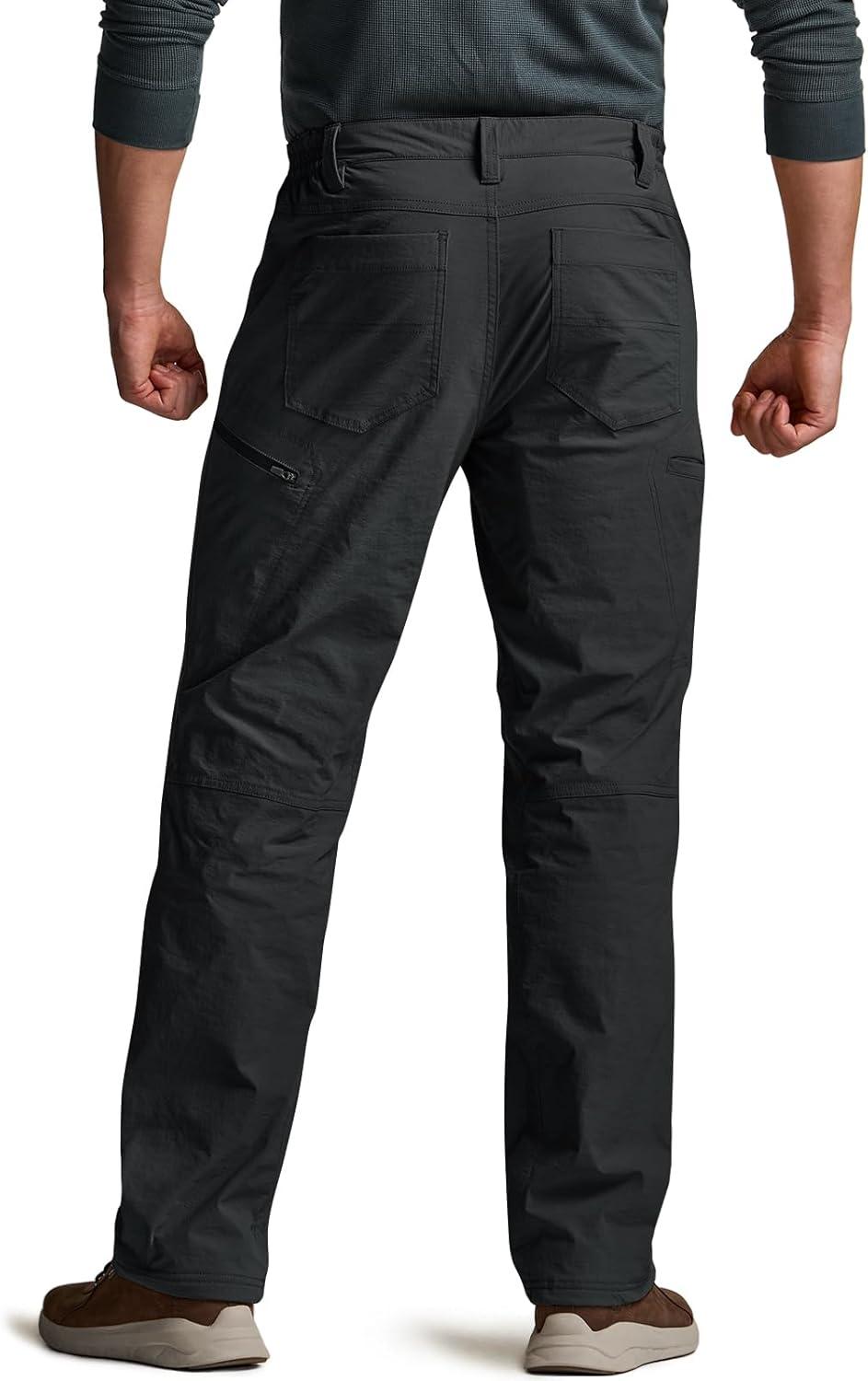CQR Men’s Winter Fleece Lined Pants, Water-Resistant Outdoor Stretch Work Pants, Windproof Casual Pants with Pockets(Nylon Fleece Cargo Black)