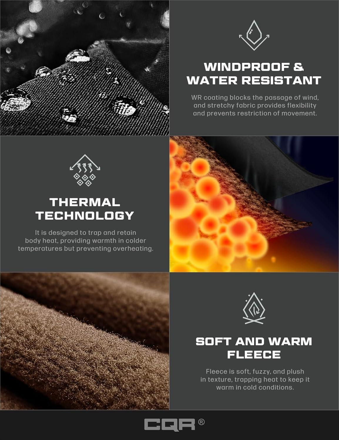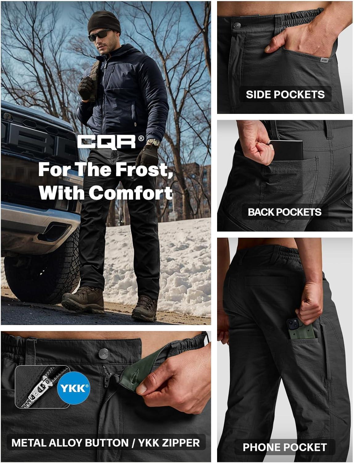 imageCQR Mens Winter Fleece Lined Pants WaterResistant Outdoor Stretch Work Pants Windproof Casual Pants with PocketsNylon Fleece Cargo Black