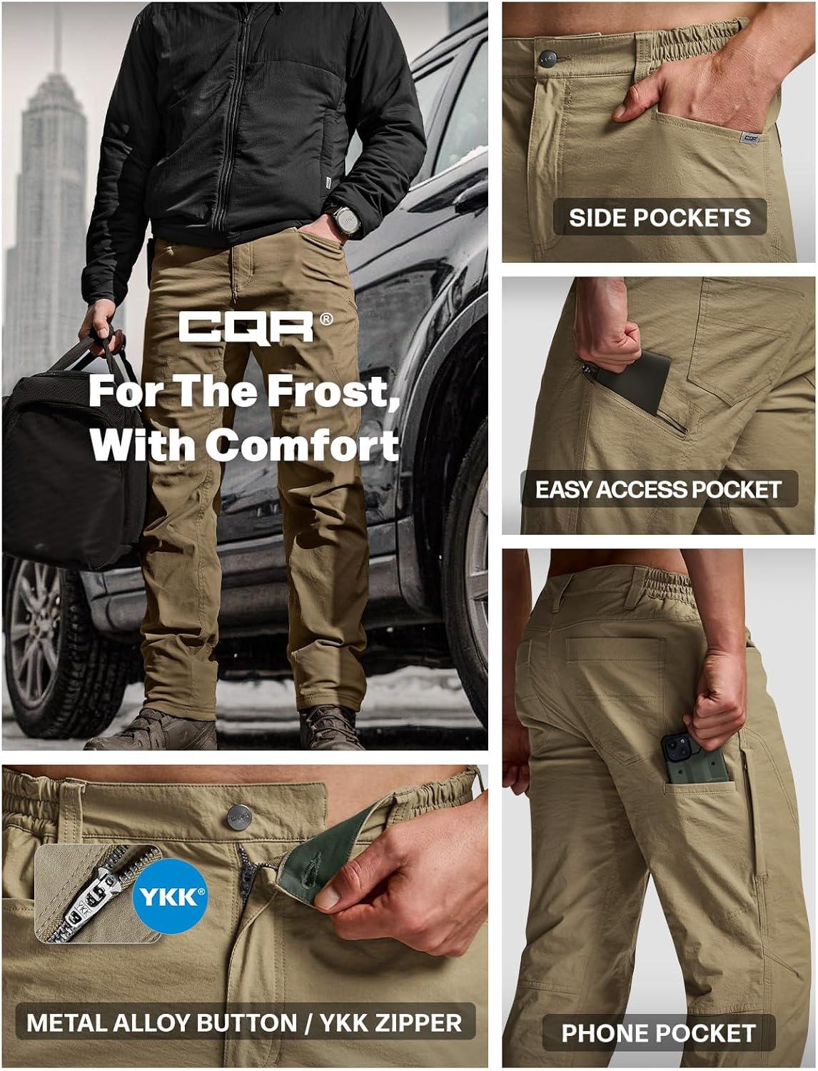 imageCQR Mens Winter Fleece Lined Pants WaterResistant Outdoor Stretch Work Pants Windproof Casual Pants with PocketsNylon Fleece Cargo Pale Khaki