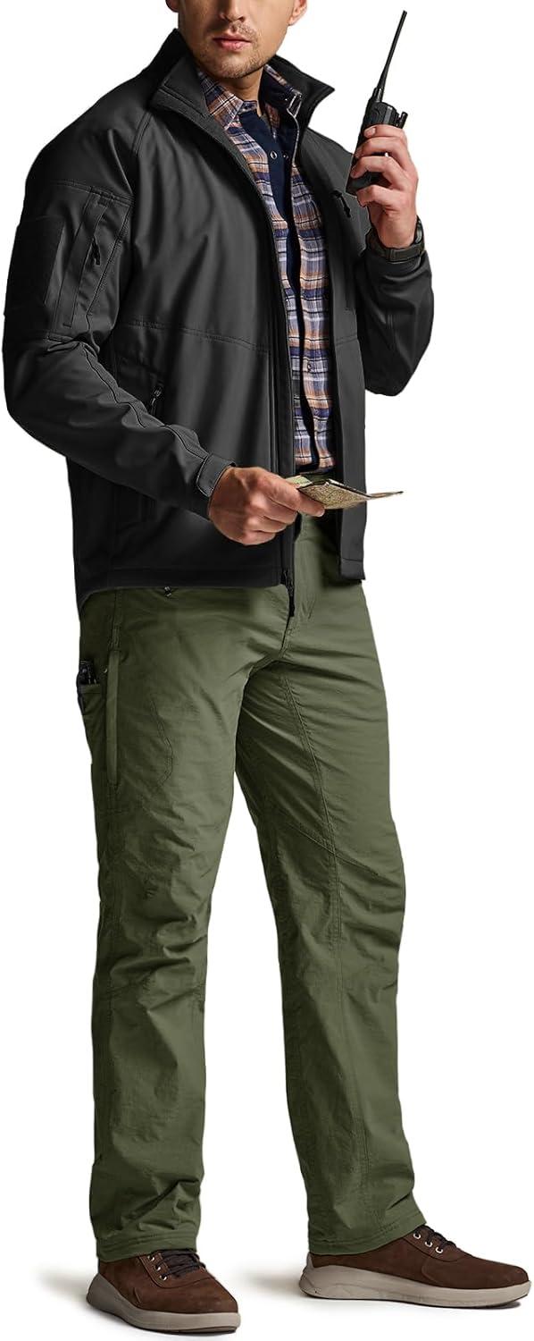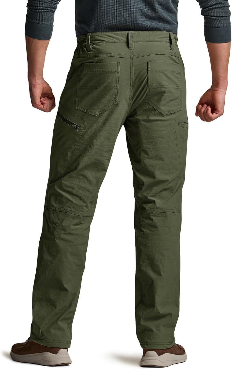 CQR Men’s Winter Fleece Lined Pants, Water-Resistant Outdoor Stretch Work Pants, Windproof Casual Pants with Pockets(Nylon Fleece Cargo Storm Green)