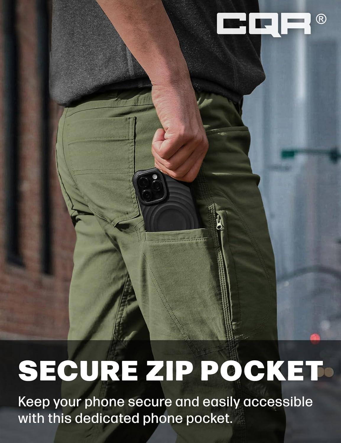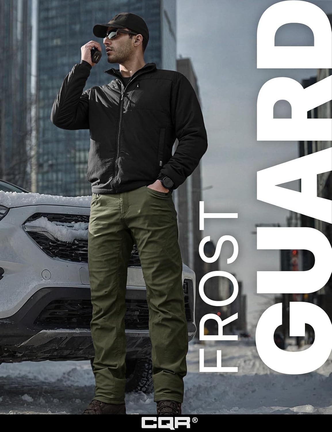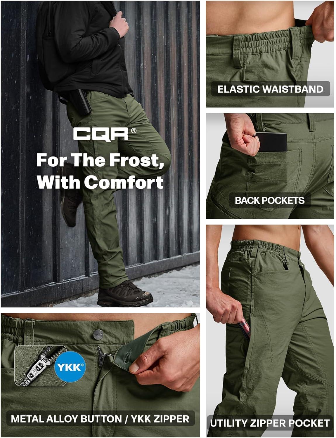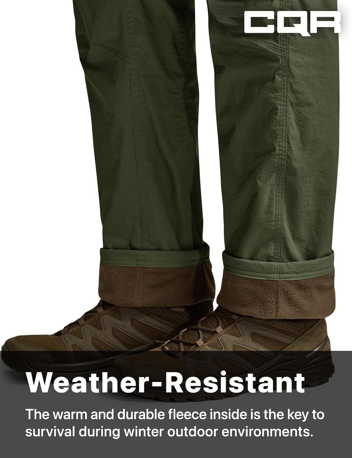 imageCQR Mens Winter Fleece Lined Pants WaterResistant Outdoor Stretch Work Pants Windproof Casual Pants with PocketsNylon Fleece Cargo Storm Green
