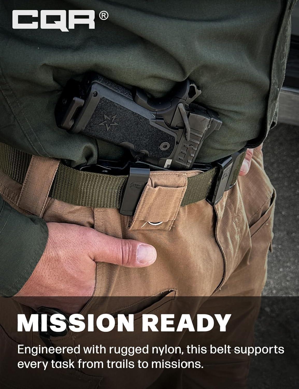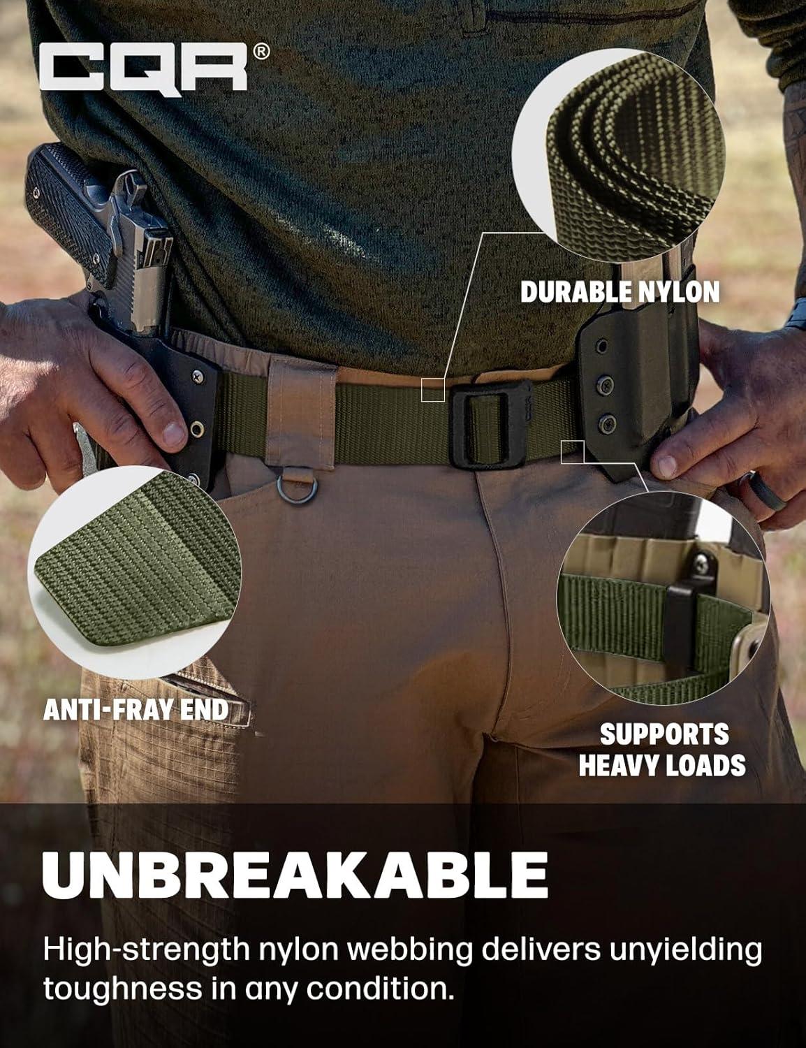 CQR Tactical Belt, Military Style Heavy Duty Belt, Webbing EDC Quick-Release Buckle(Dura Nylon Black)