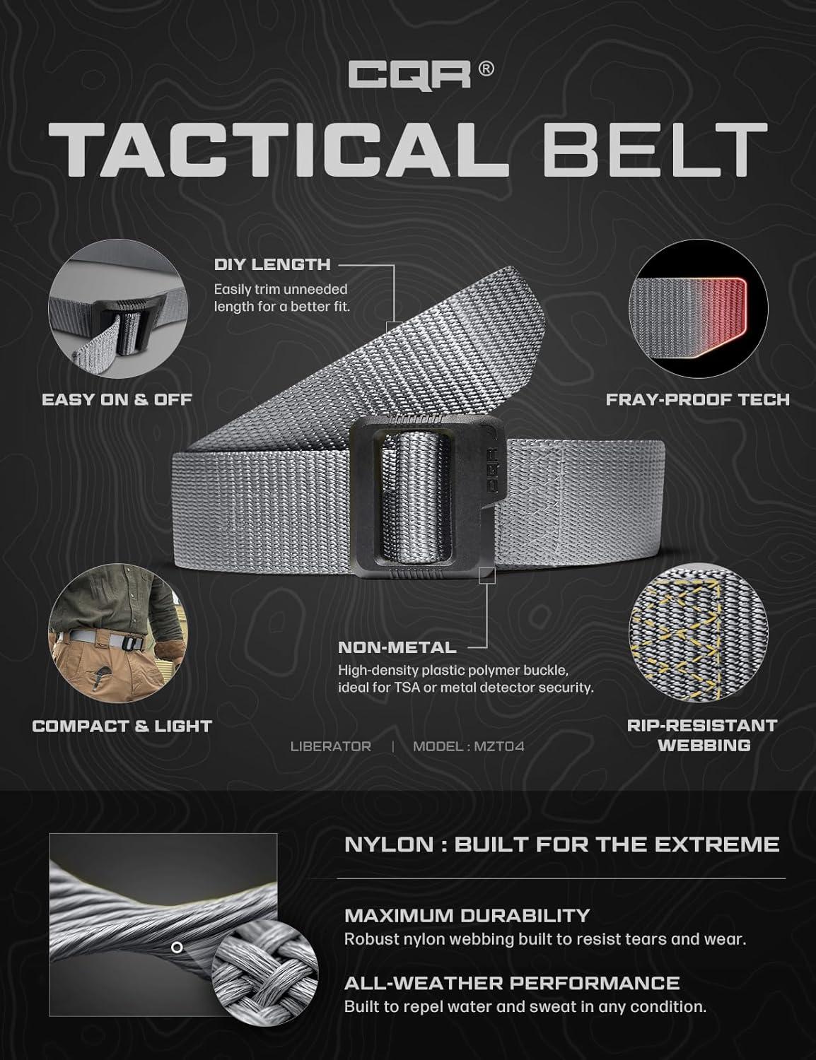 CQR Tactical Belt, Military Style Heavy Duty Belt, Webbing EDC Quick-Release Buckle(Dura Nylon Grey)