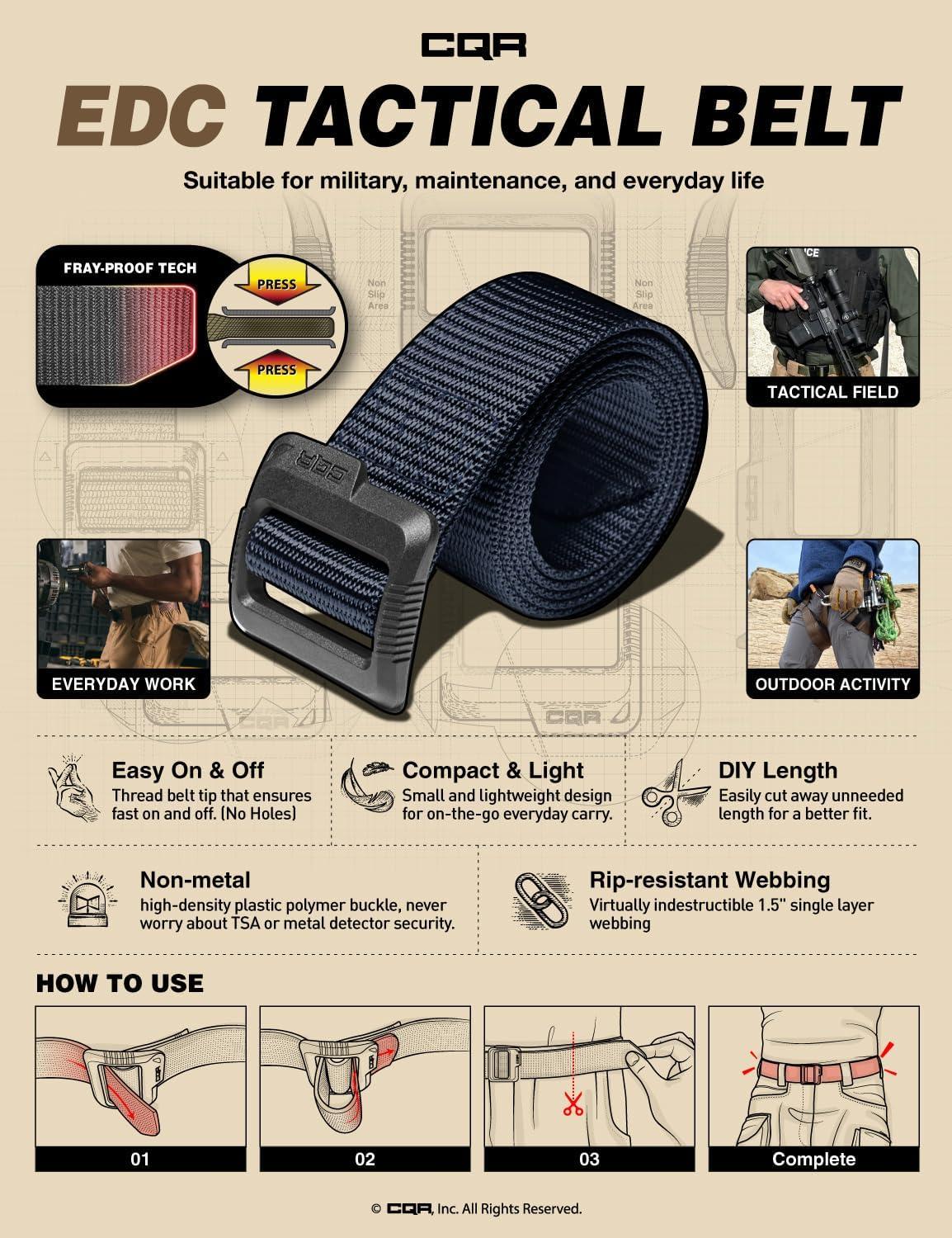 imageCQR Tactical Belt Military Style Heavy Duty Belt Webbing EDC QuickRelease BuckleFlex Poly Police Navy