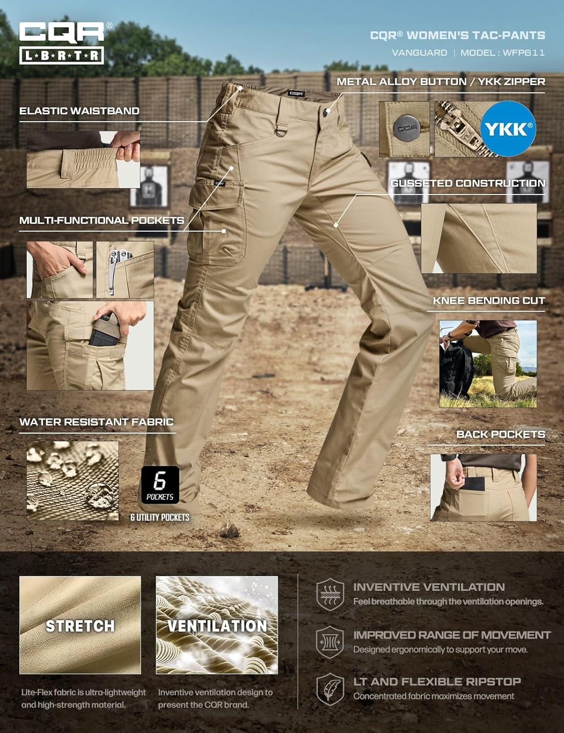 imageCQR Womens Flex Stretch Tactical Pants Water Resistant Ripstop Cargo Work Pants with Pockets for Outdoor amp HikingVanguard Alamo Khaki