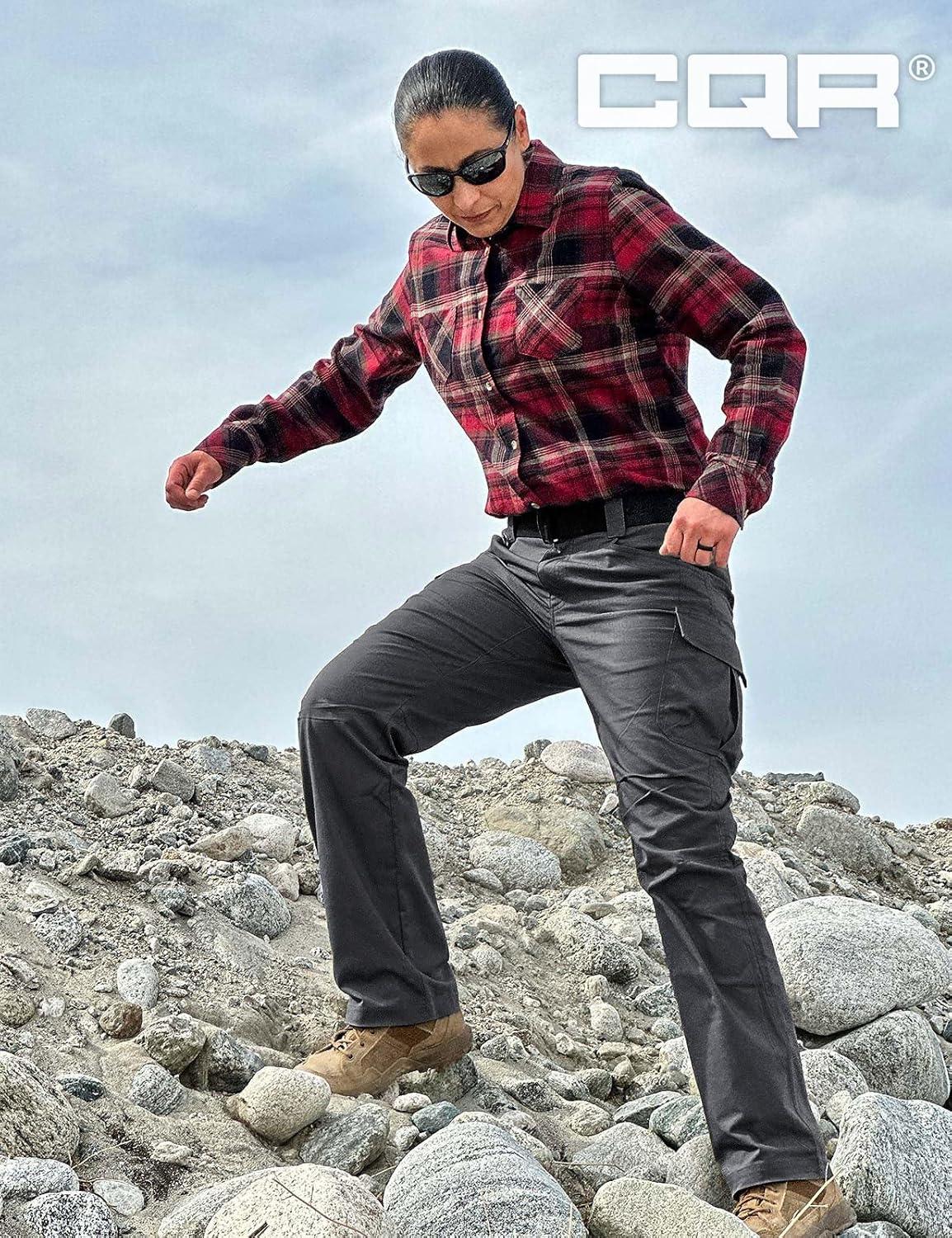 CQR Women's Flex Stretch Tactical Pants, Water Resistant Ripstop Cargo Work Pants with Pockets for Outdoor & Hiking(Vanguard Charcoal)