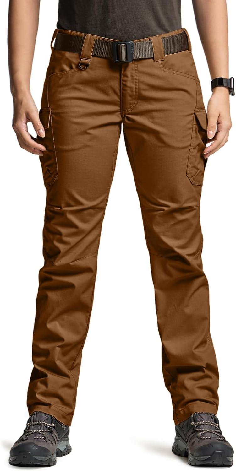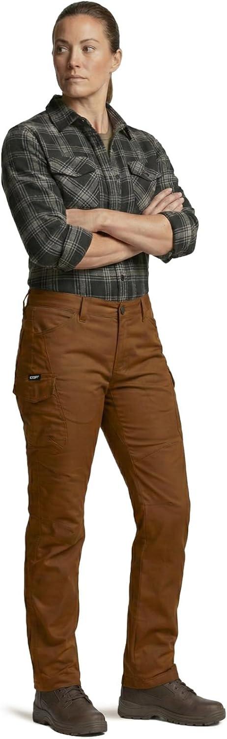 CQR Women’s Flex Stretch Tactical Pants, Water Resistant Ripstop Cargo Work Pants with Pockets for Outdoor & Hiking(Vanguard Copper Brown)