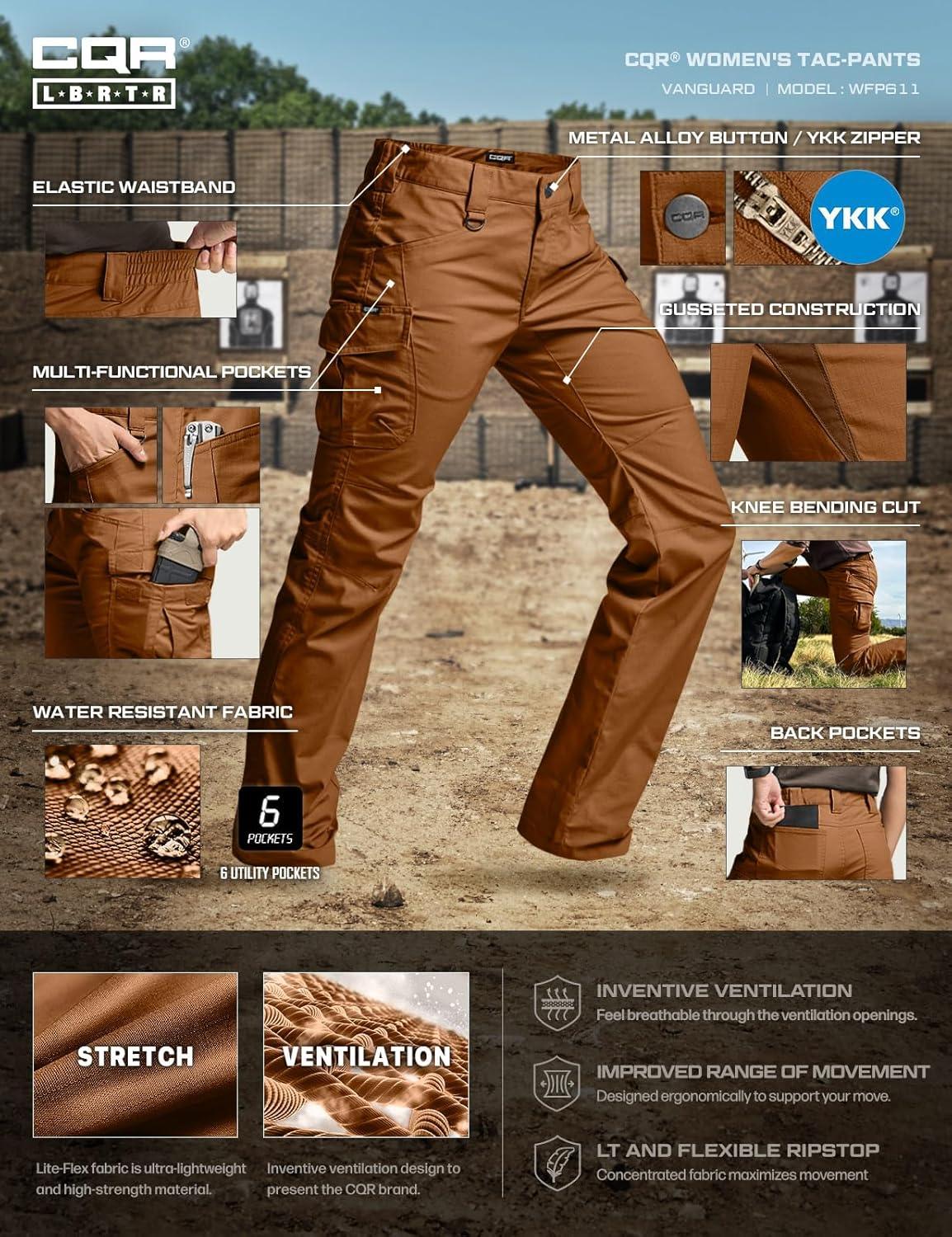 imageCQR Womens Flex Stretch Tactical Pants Water Resistant Ripstop Cargo Work Pants with Pockets for Outdoor amp HikingVanguard Cougar
